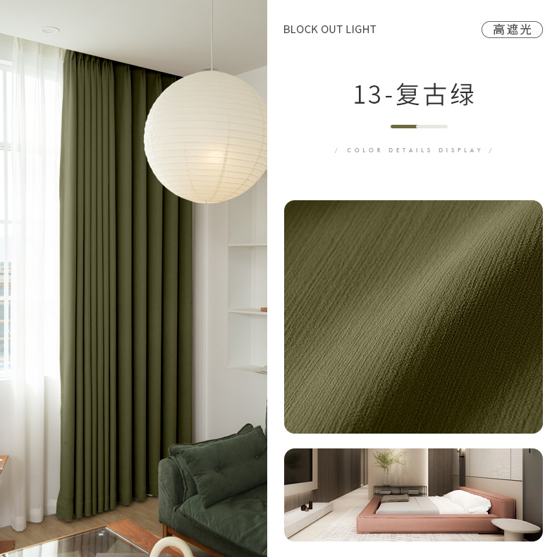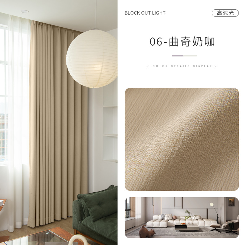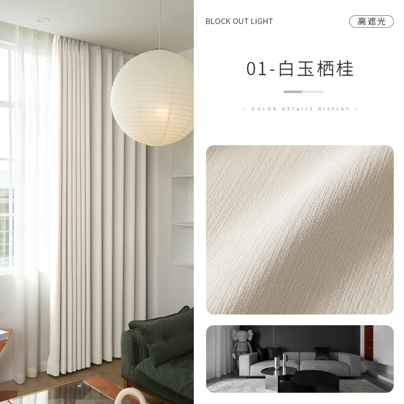 셔닐 두꺼운 크림 벨벳 커튼 프렌치 크림 스타일 침실과 거실을위한 현대적인 간단한 단열 정전 커튼