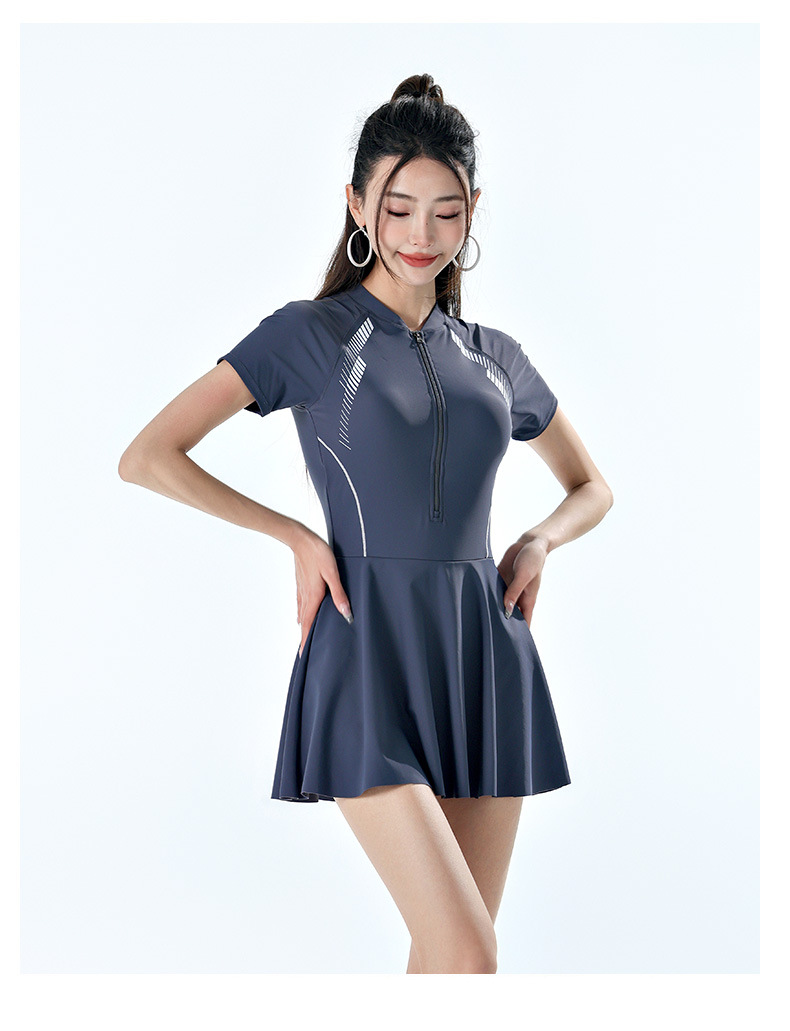 진홍 신상 배 가리기 슬림핏 캐주얼 패션 휴가용 보수적인 원피스 수영복