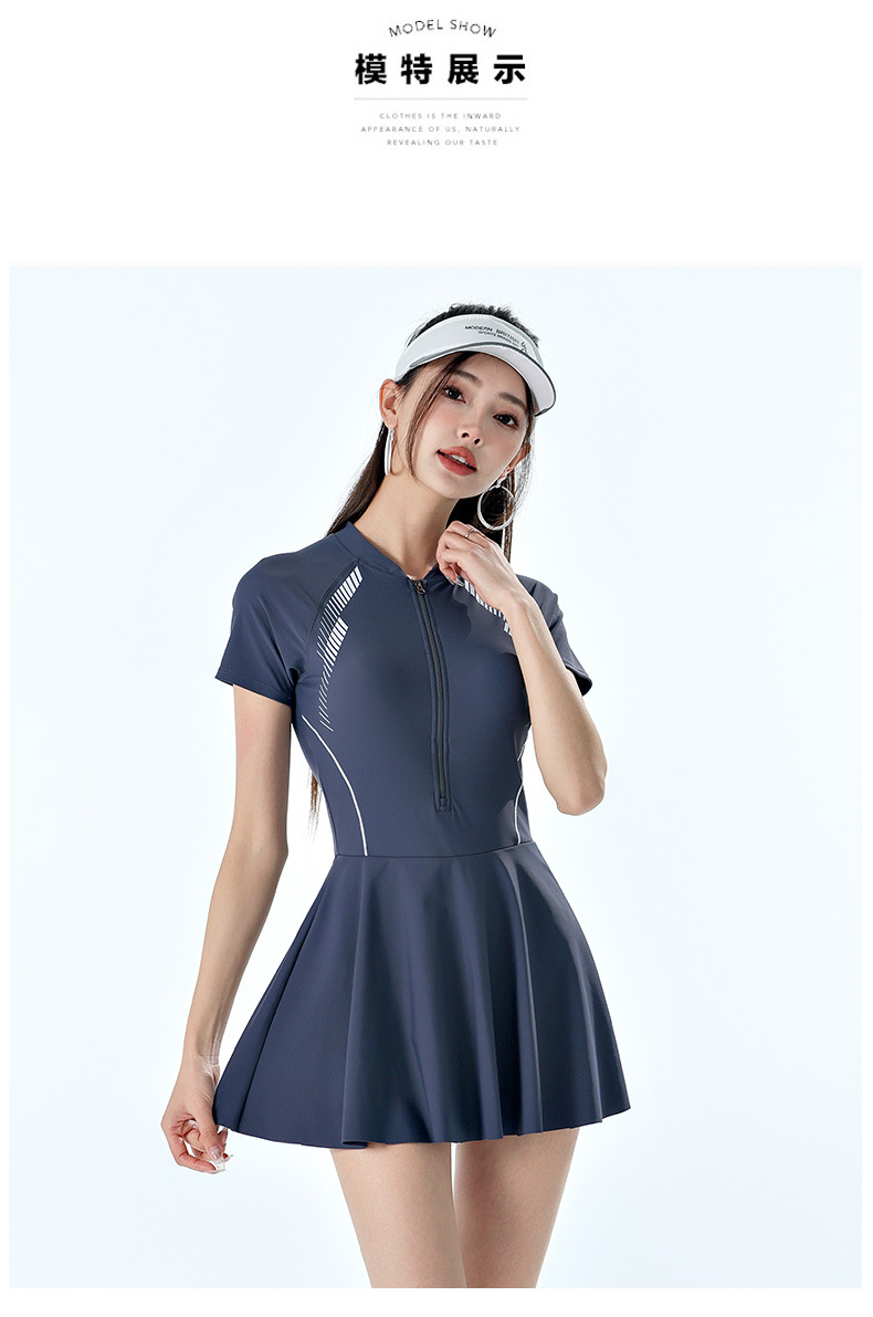 진홍 신상 배 가리기 슬림핏 캐주얼 패션 휴가용 보수적인 원피스 수영복스토어 가기