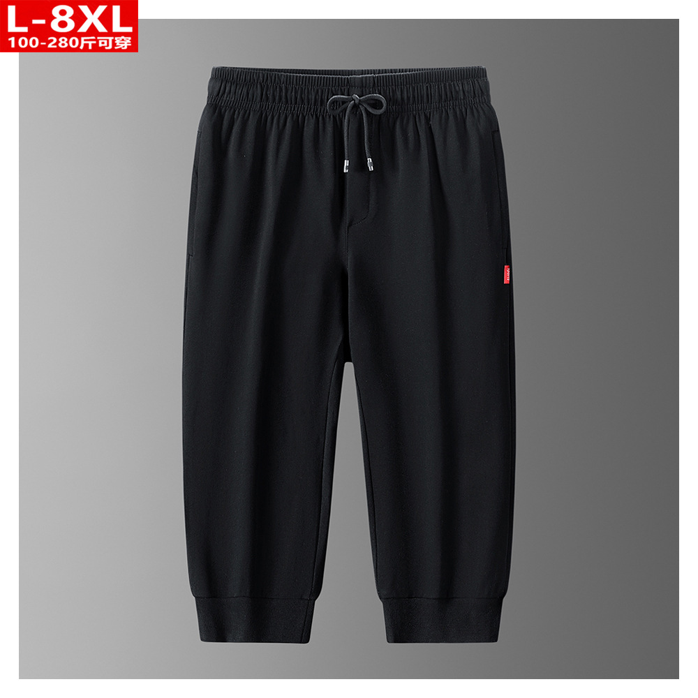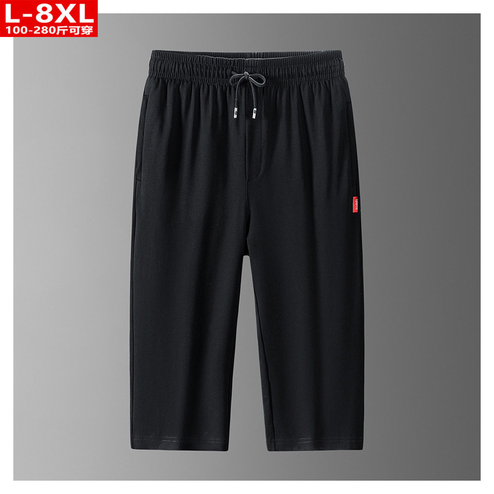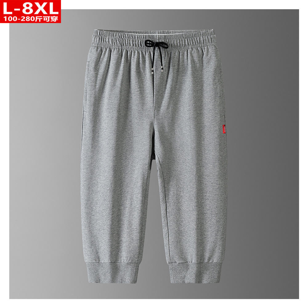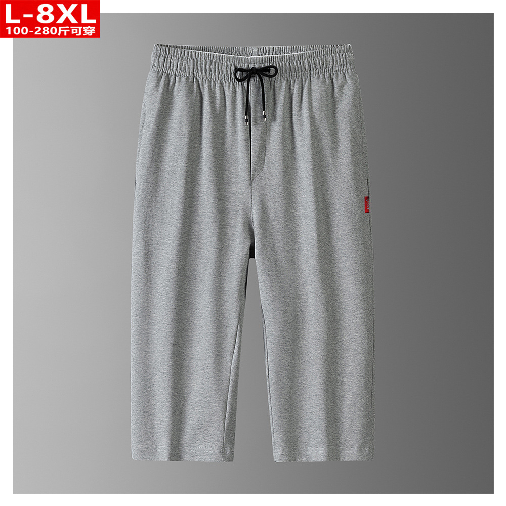 여름 유행 남성 스포츠 캐주얼 카프리 바지 통통한 대형 플러스 뚱뚱한 느슨한 바지 남성 순면 니트 미들 팬츠스토어 가기