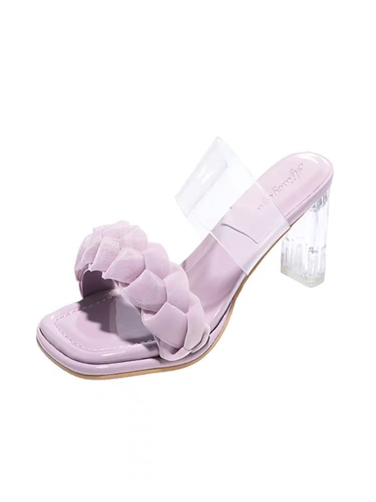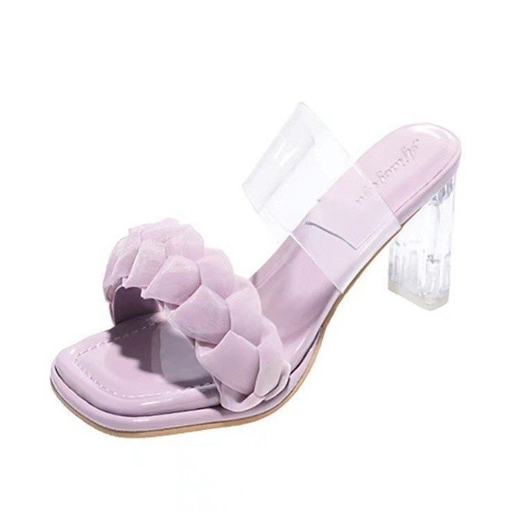 하이힐 샌들 및 슬리퍼 여성용 여름 아우터 2023 새로운 크리스탈 힐 오픈 토 투명 레이스 여성용 슬리퍼