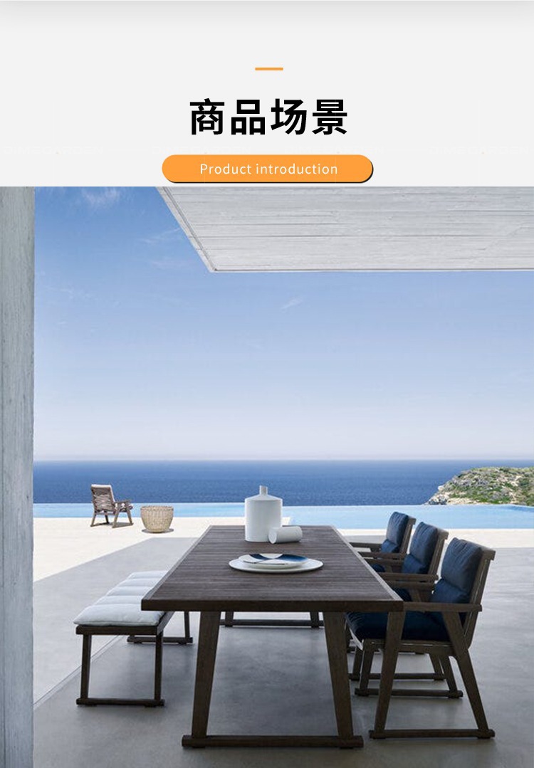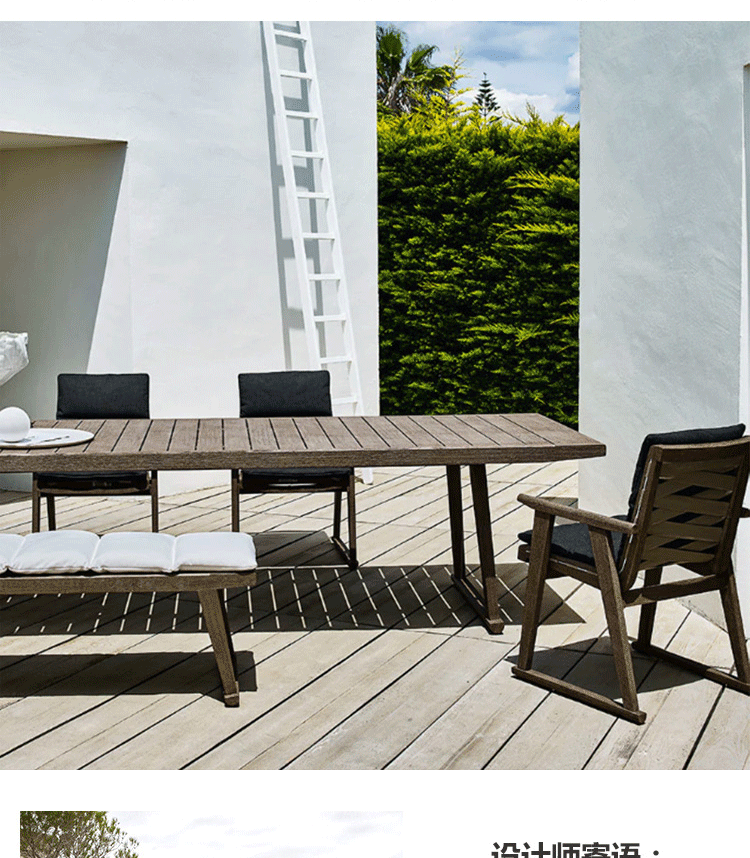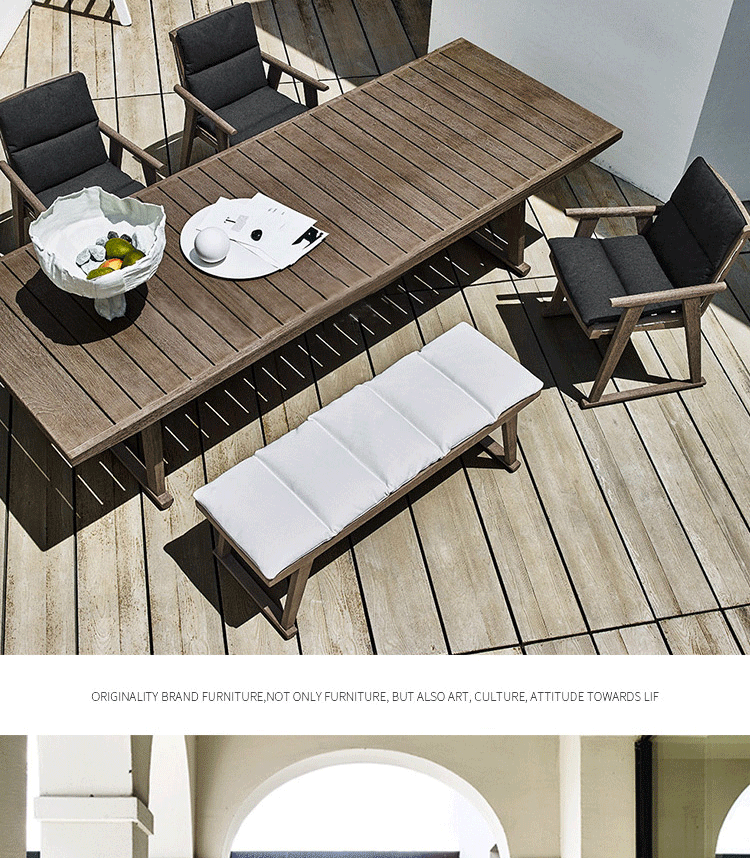 오래 된 야외 테이블과 의자 정원 빌라 고급 호텔 단단한 나무 식사 티크 테라스 레저 등나무 야외 안뜰 조합스토어 가기
