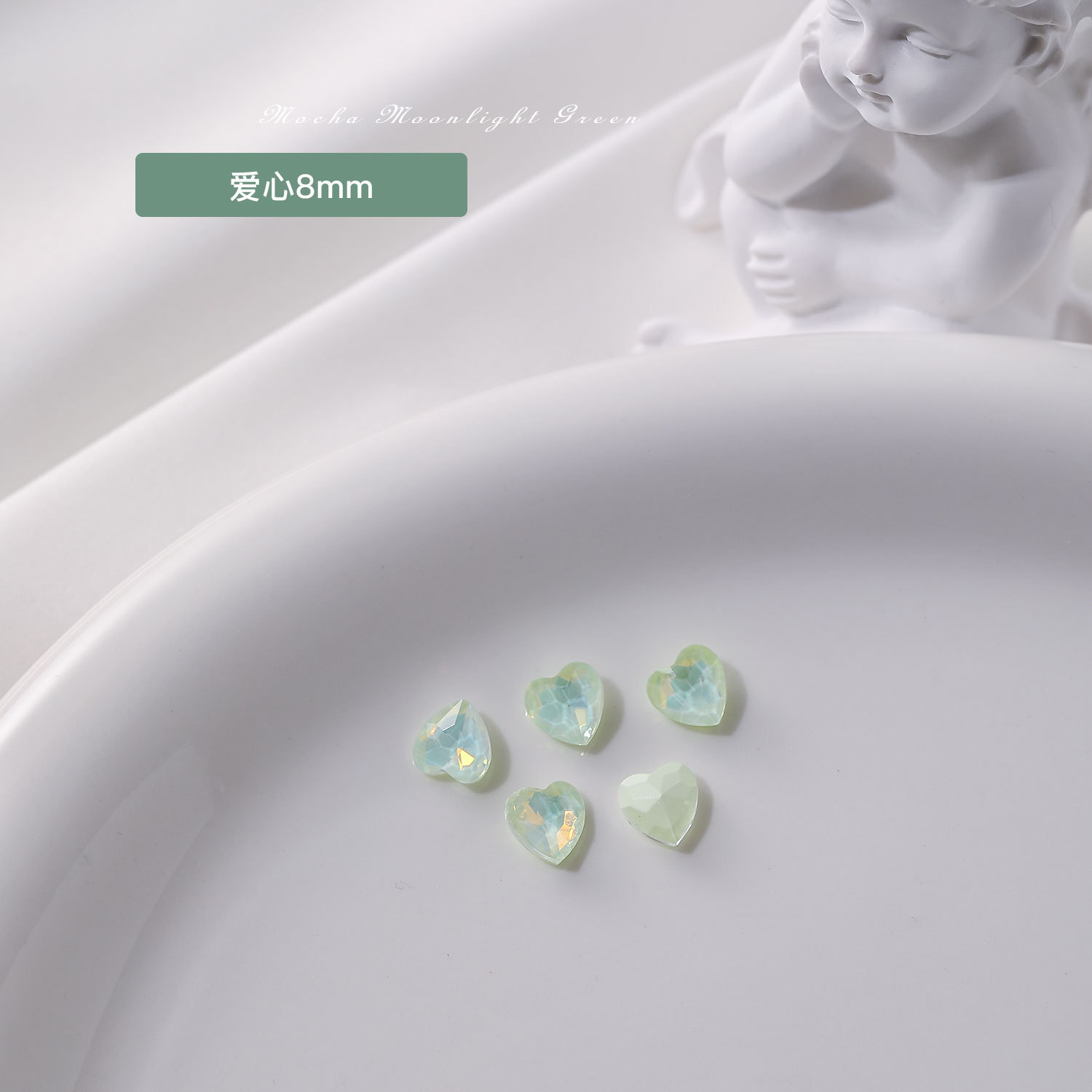 새로운 매니큐어 오로라 모카 달빛 녹색 뾰족한 바닥 모양의 다이아몬드 과일 녹색 사랑 나비 스퀘어 다이아몬드 네일 쥬얼리 도매