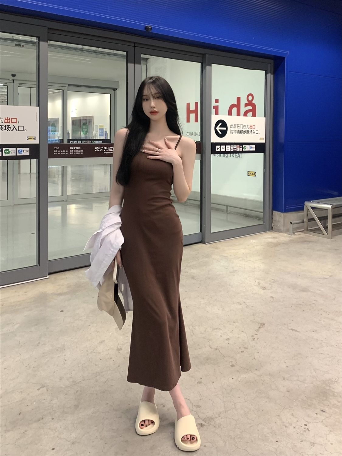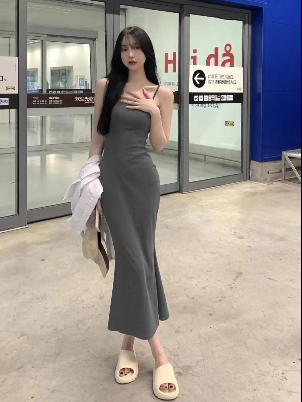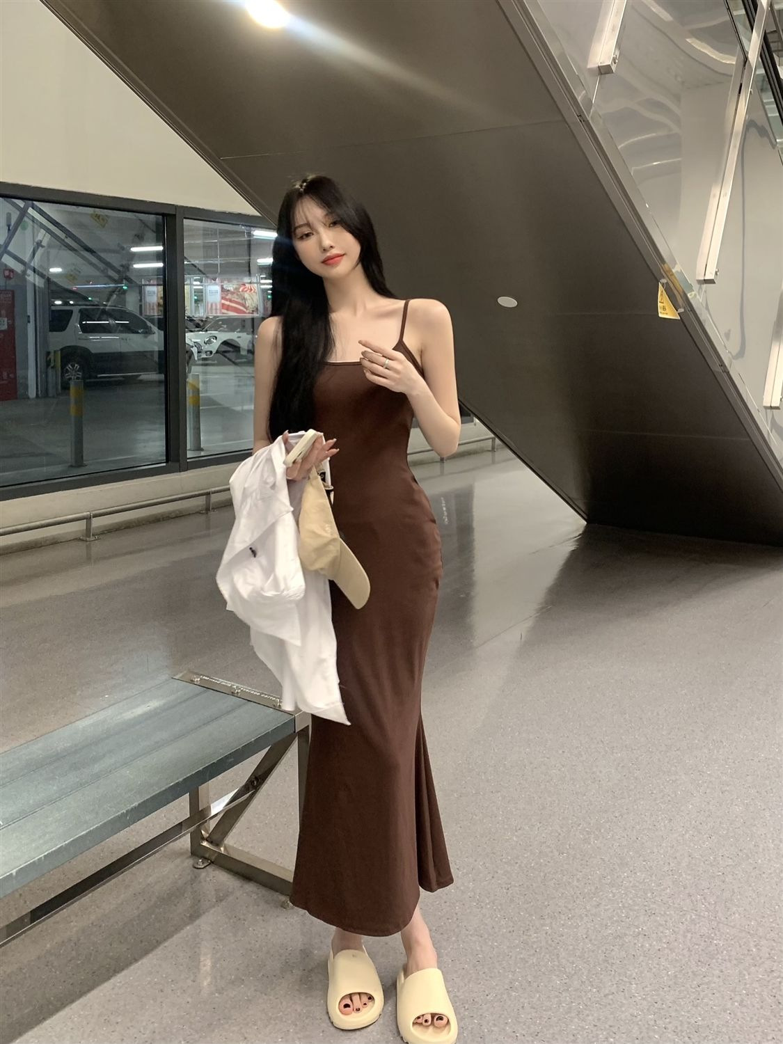 달콤한 향신료 민소매 허리 등이없는 원피스 여자의 여름 순수 우아한 피쉬 테일 힙 스커트스토어 가기