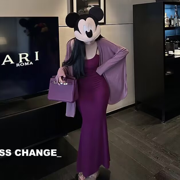 달콤한 향신료 민소매 허리 등이없는 원피스 여자의 여름 순수 우아한 피쉬 테일 힙 스커트