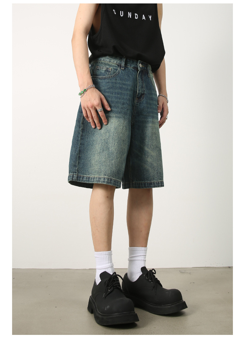 너벤 데님 | 신상품 데님 반바지 남성용 여름 in 트렌디 팬츠 루즈한 모든 매치 캐주얼 팬츠스토어 가기