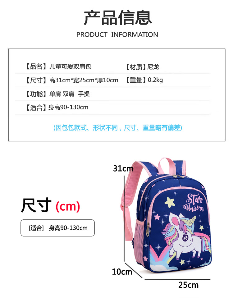새로운 만화 유니콘 어린이 책가방 유치원 여성 학생 배낭 귀여운 패션 대비 여행 배낭