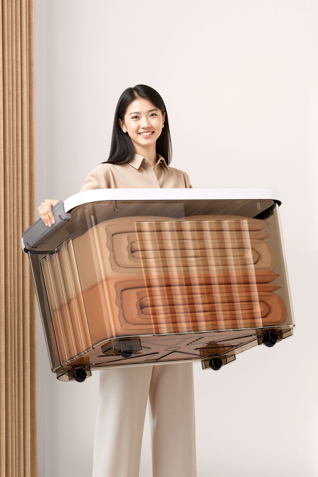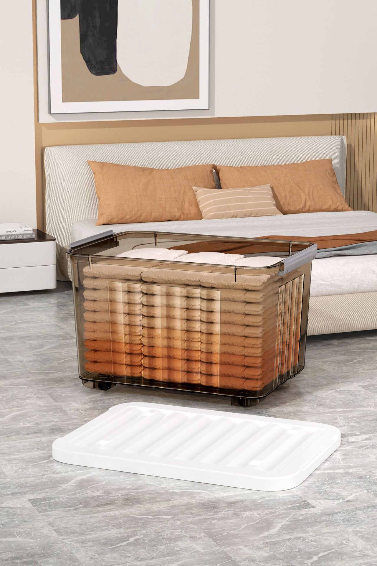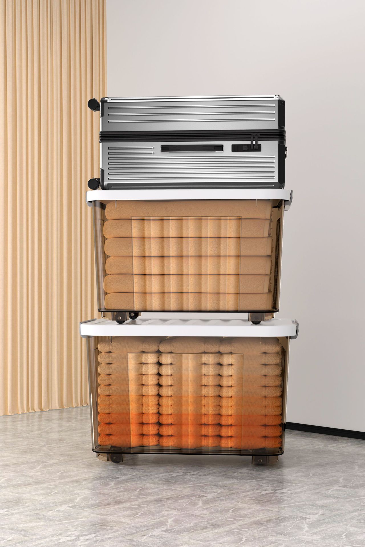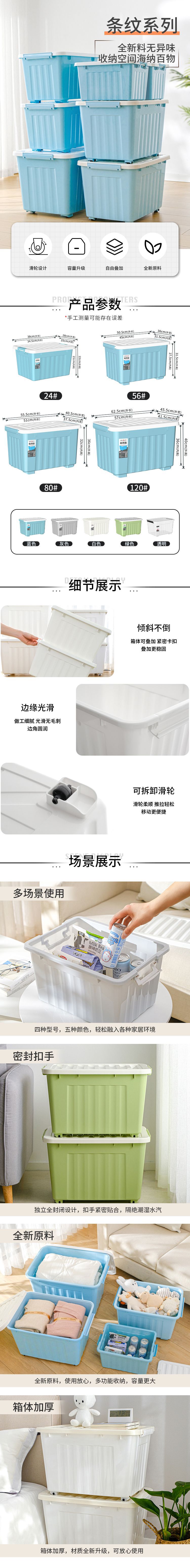 스페이스 엑스퍼트 스트라이프 바퀴 달린 수납함 (뚜껑 포함) 침실 수납 방진 아기 옷 보관함