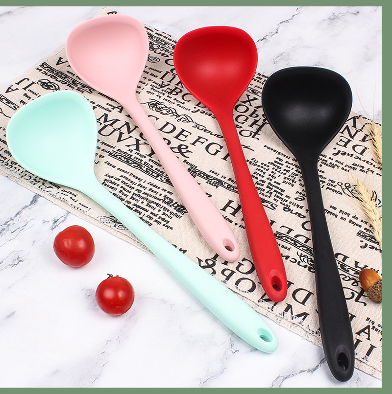 실리콘 숟가락 대형 믹싱 샐러드 일체형 풀커버 식품 등급 스푼 논스틱 팬 가정용 고온 내성