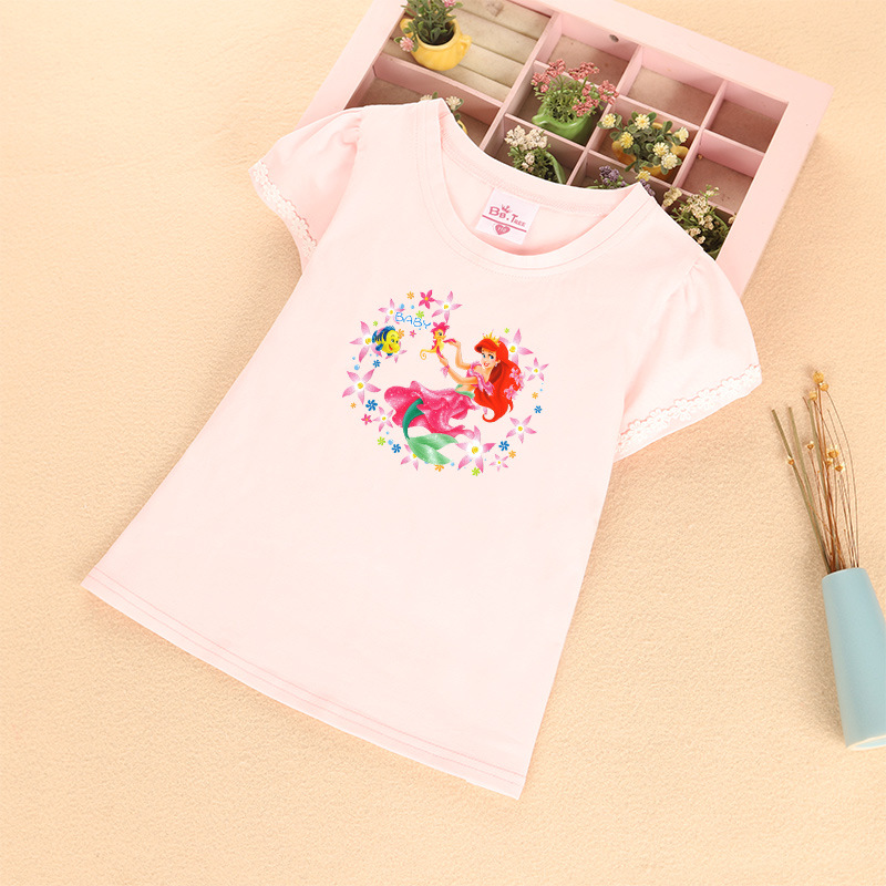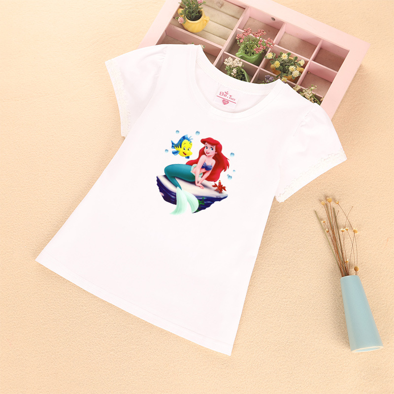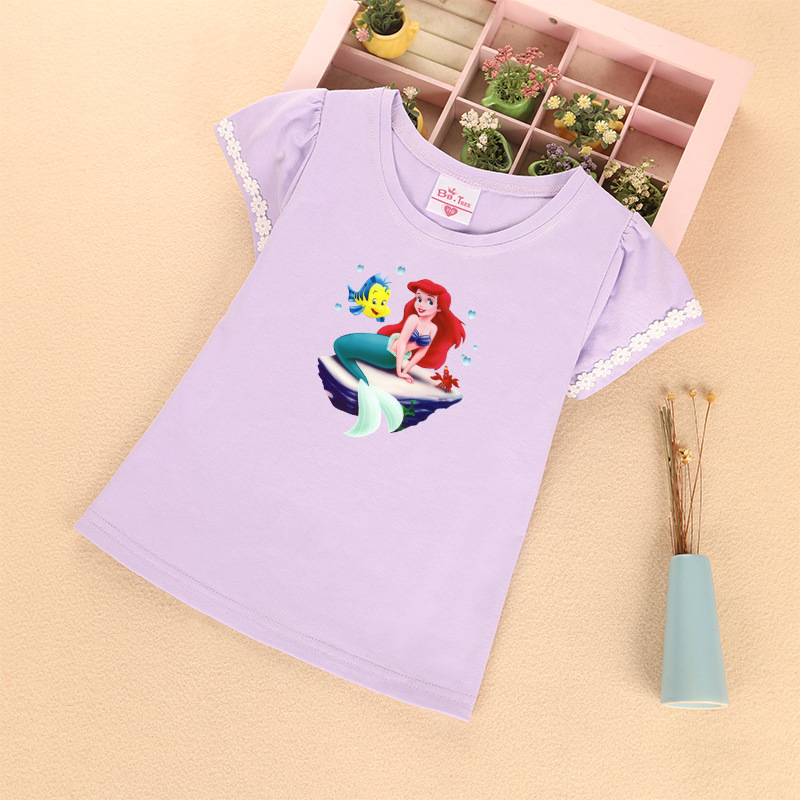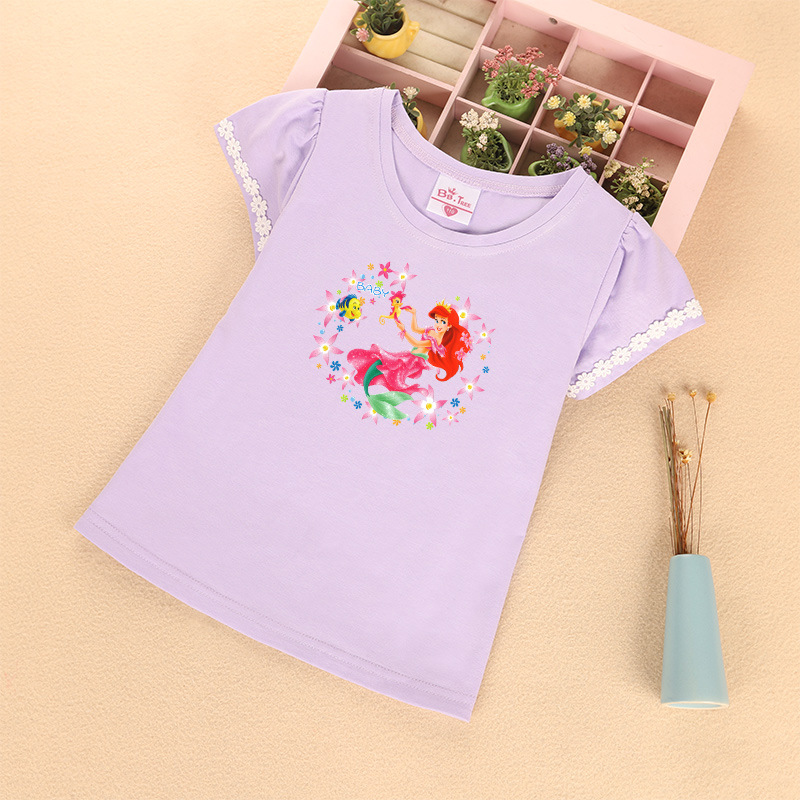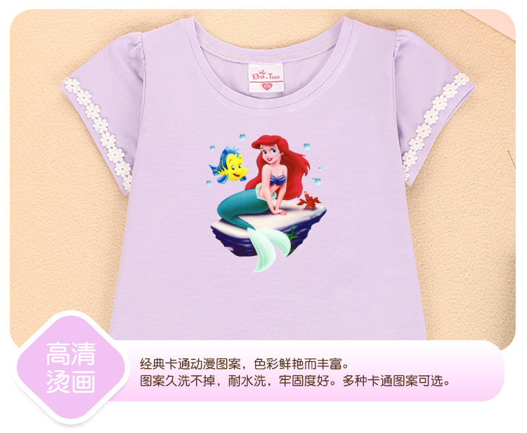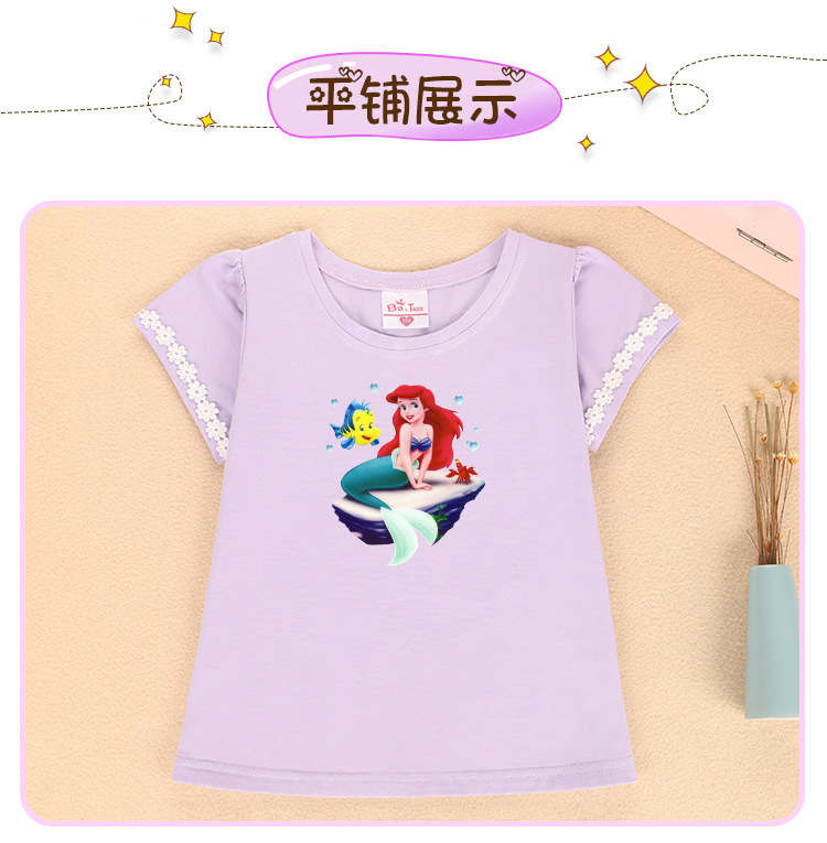 2023 새로운 어린이 라운드 넥 반소매 티셔츠 여름 레이스 반 소매 여아 탑 공주 옷 타오바오 공급 5