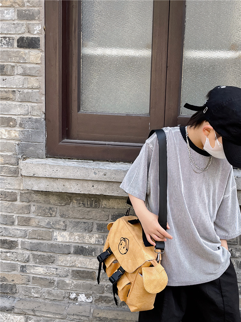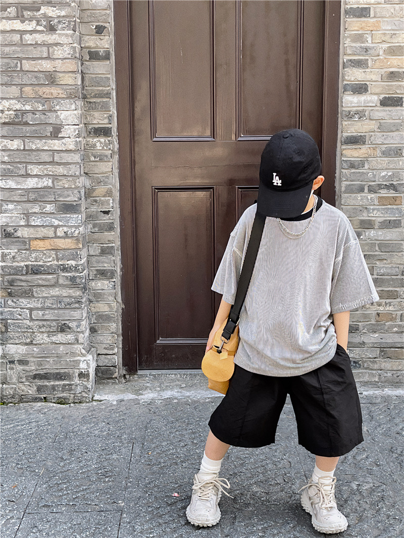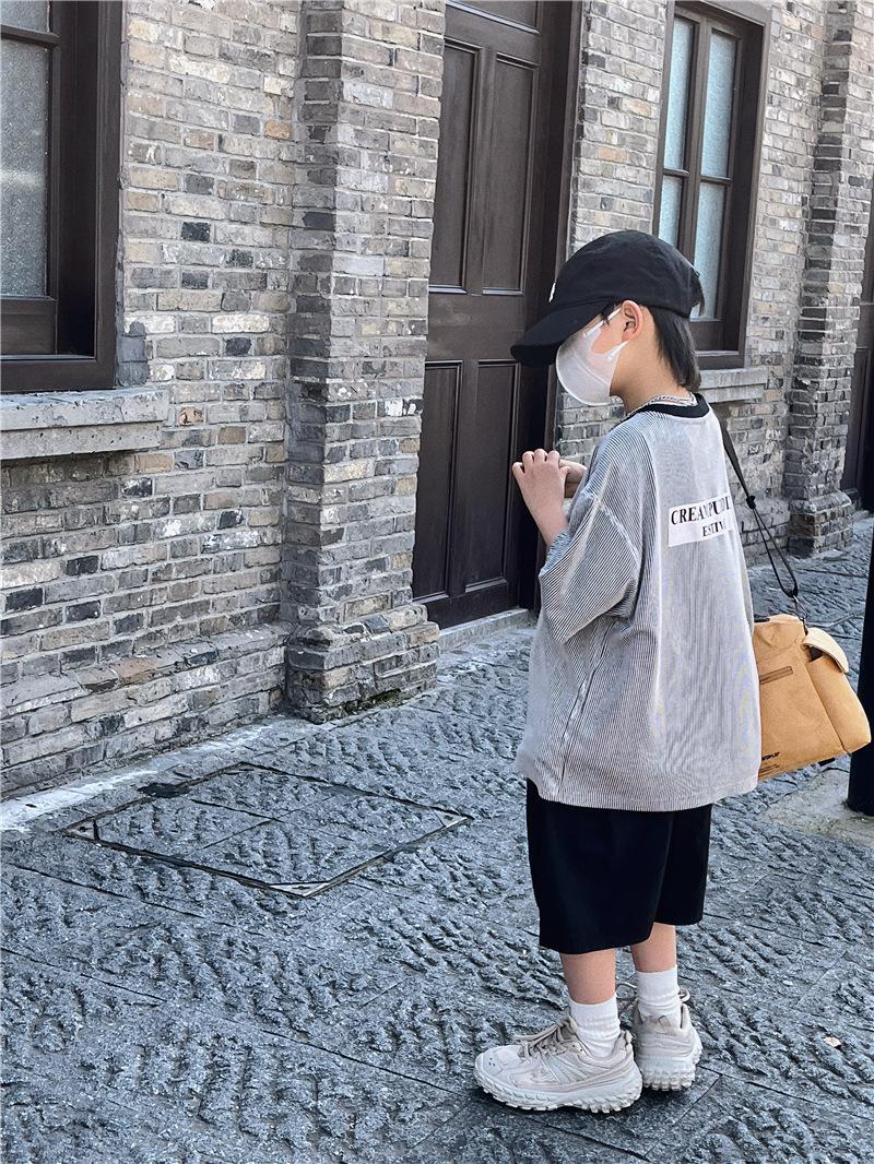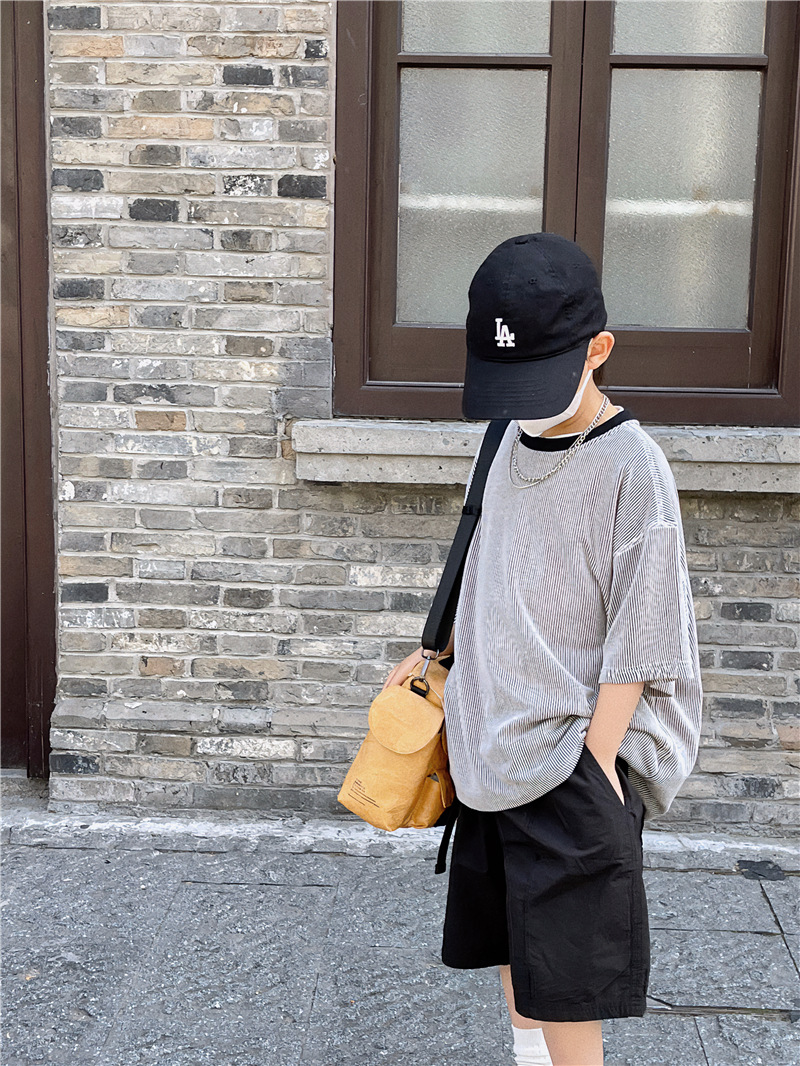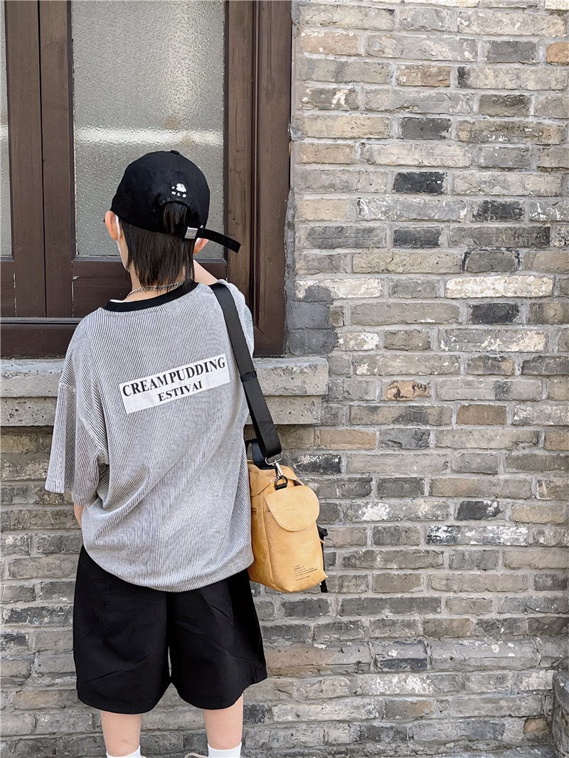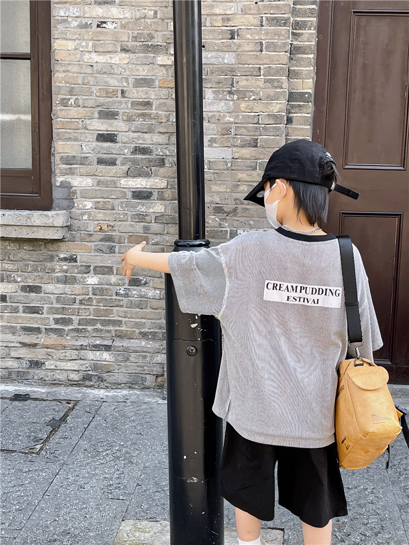 Baoduo 아동복 아동 스트라이프 반팔 티셔츠 2023 여름 신상품 반팔 티셔츠 중소 아동 코트 조수스토어 가기
