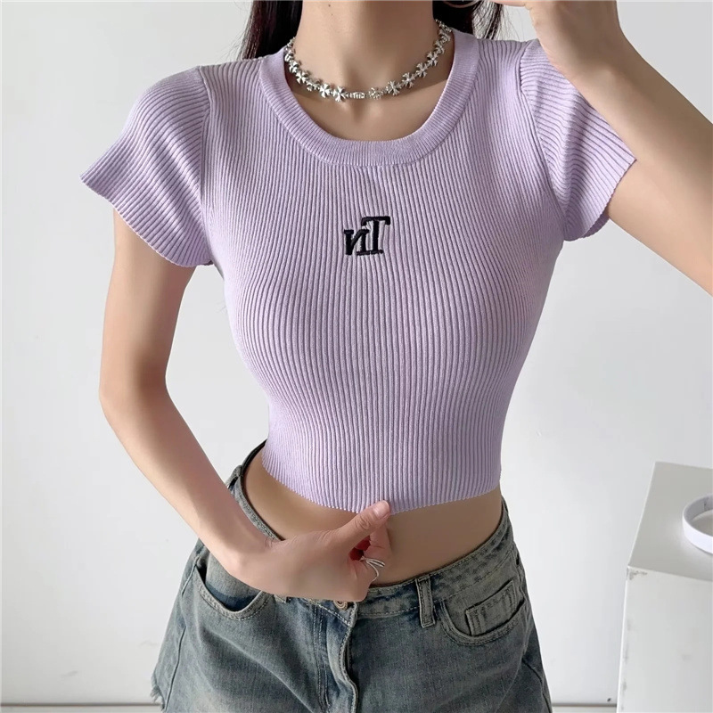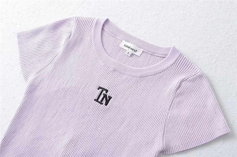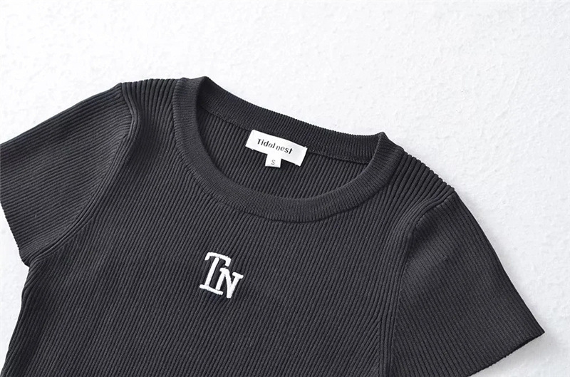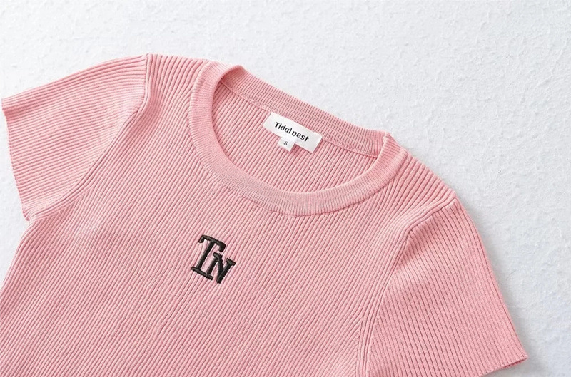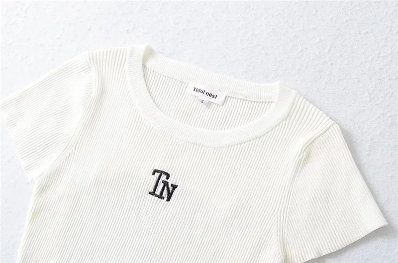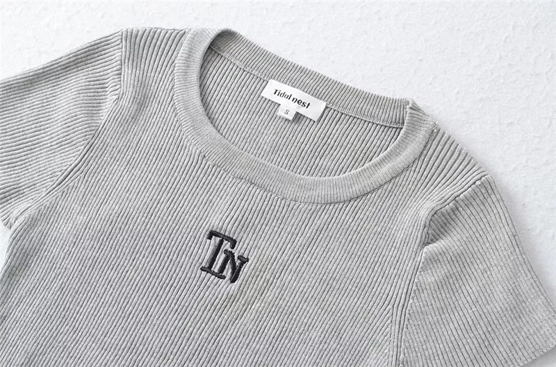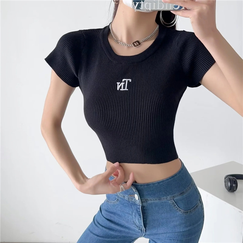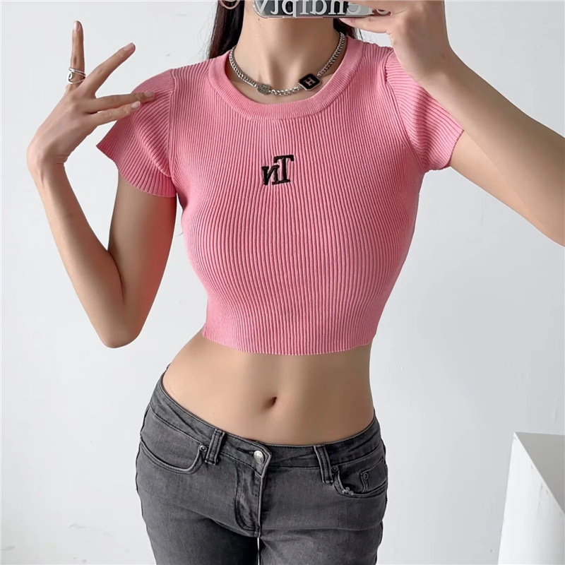 아메리칸 스타일 레트로 섹시한 등이없는 레이스 업 하이 웨이스트 배꼽 핫 걸스 반팔 티셔츠 여름 슬림핏 편지 자수 탑스토어 가기