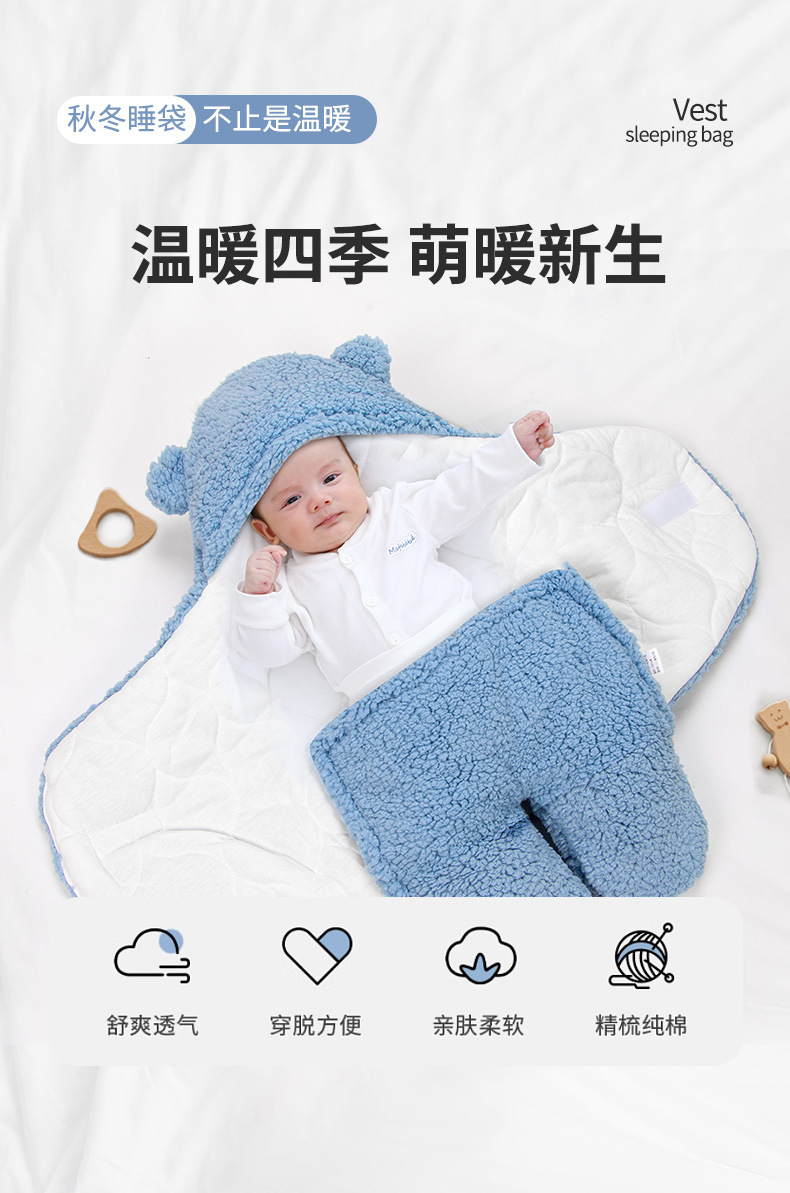 비돌 아기 침낭 가을과 겨울 두꺼운 킥 방지 이불 신생아 겨울 아기 이중 사용 나가는 순면 포대기 이불