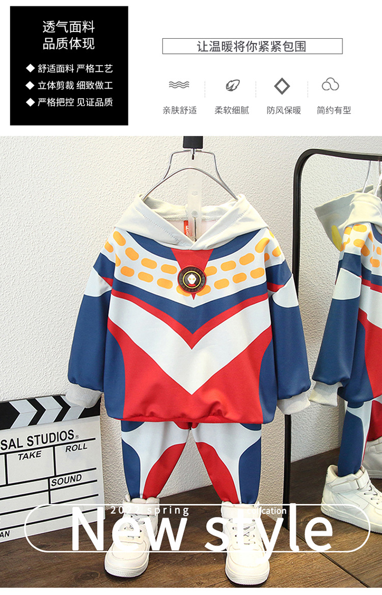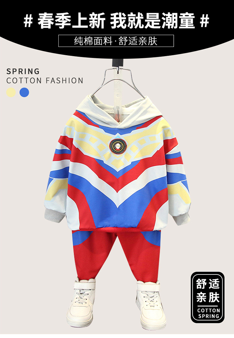 봄 가을 남아 정장 2023 유아용 긴팔 후드티 캐주얼 바지 투피스 세트 아동복 한국 스타일 아동복스토어 가기