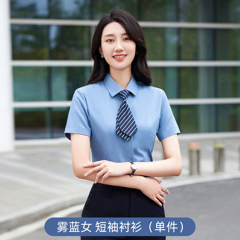 • [반팔] 여성 싱글 안개 블루 셔츠