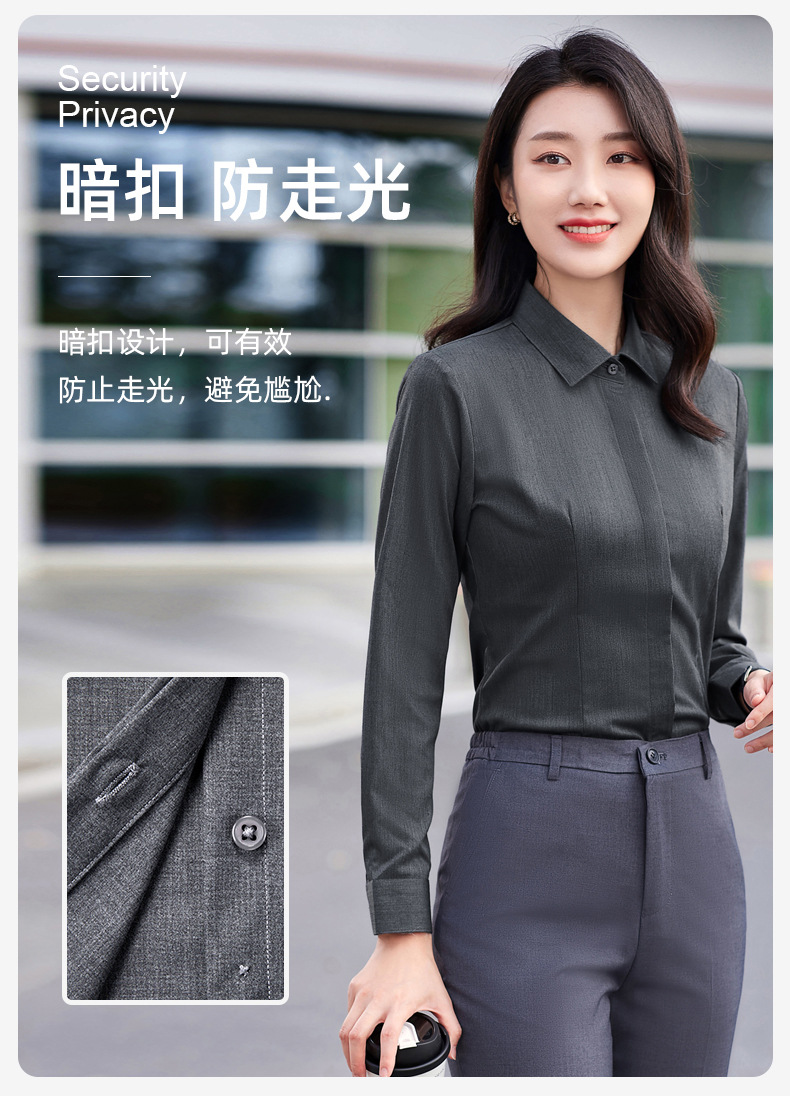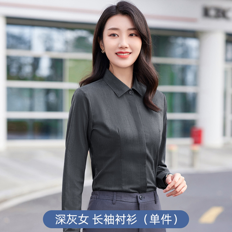 • [긴 소매] 여자 싱글 다크 그레이 셔츠
