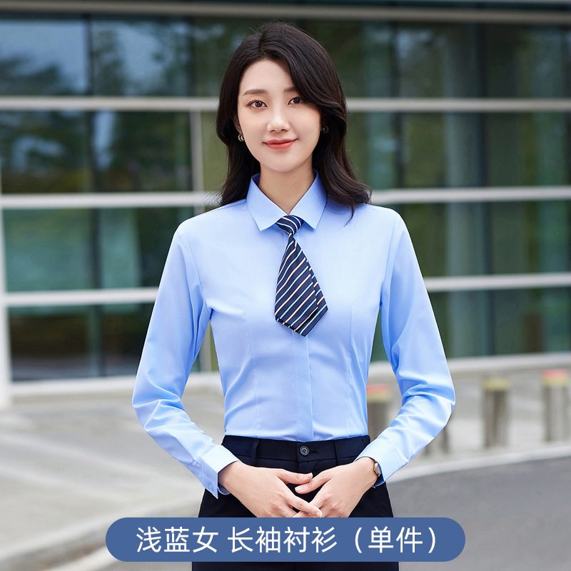 • [긴 소매] 여자 싱글 라이트 블루 셔츠
