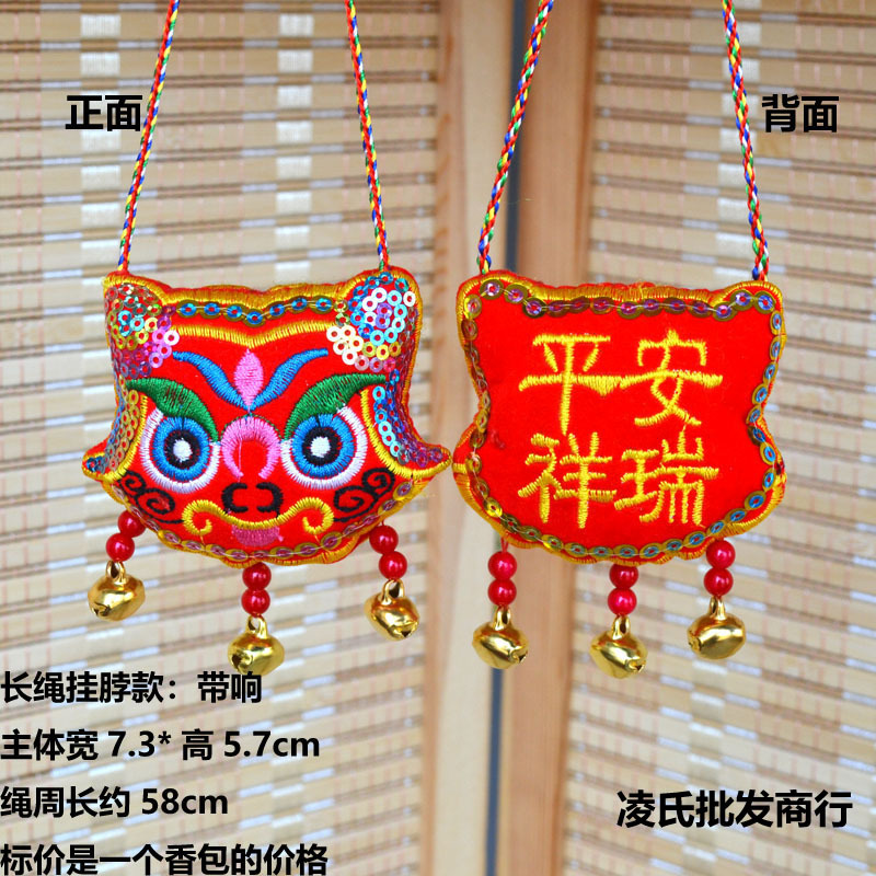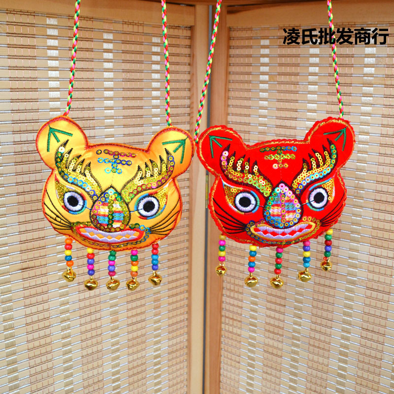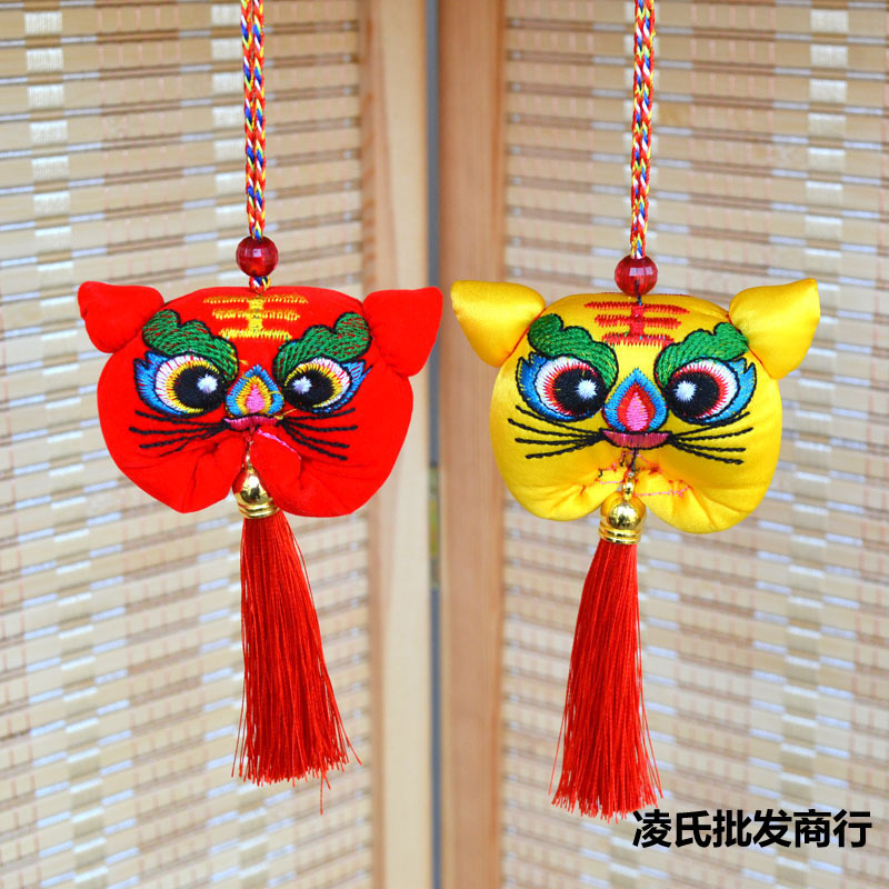 중국 스타일 자수 호랑이 머리 펜던트 드래곤 보트 축제 향 주머니 매달려 장식품 조디악 호랑이 바람 종 매달려 장식품 아기 어린이 향 주머니