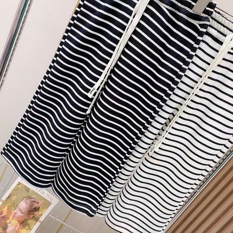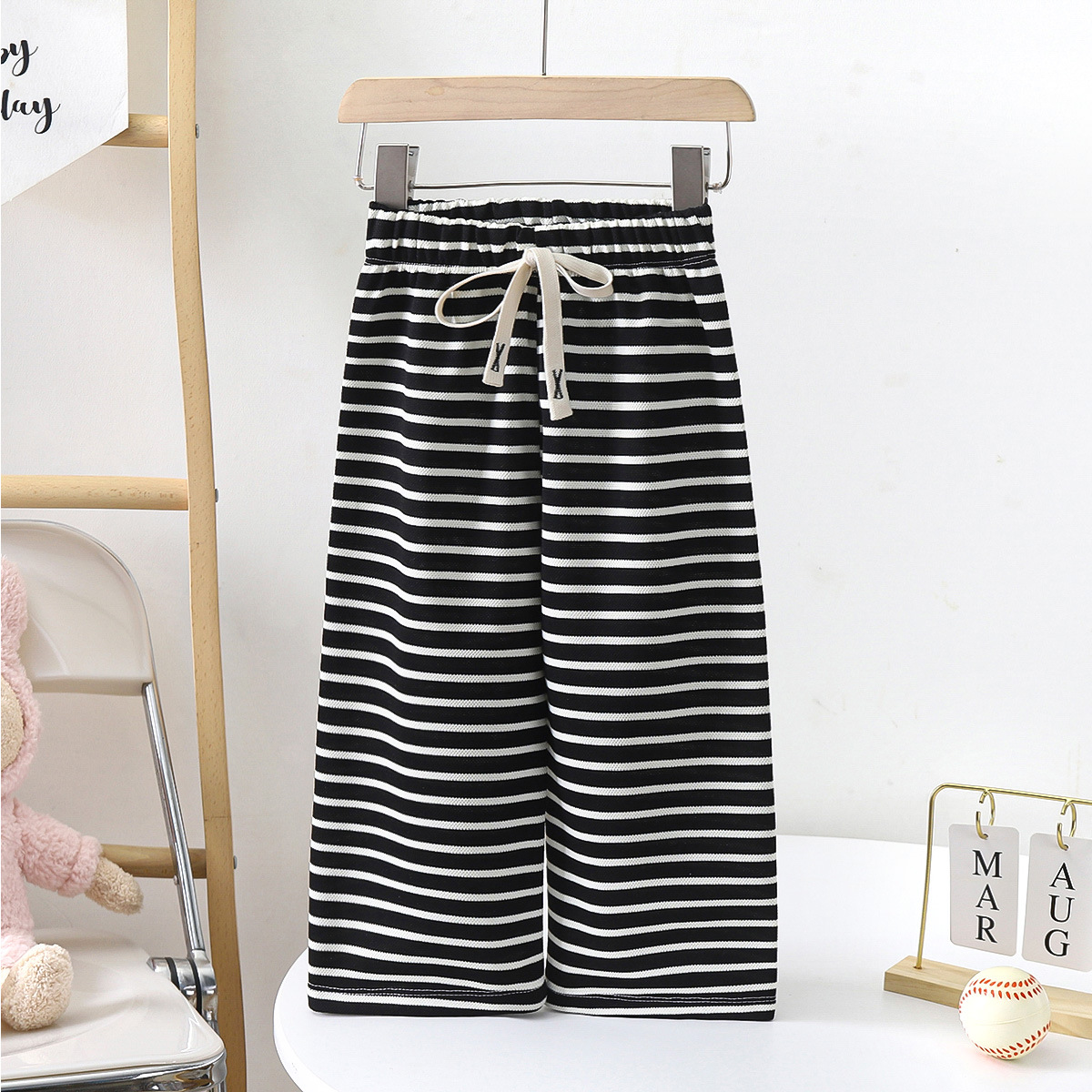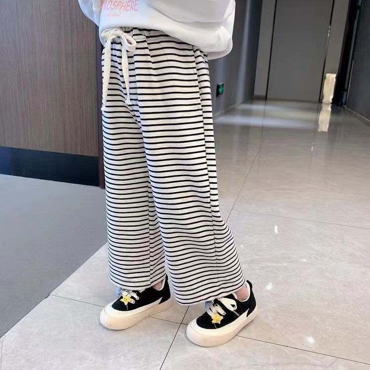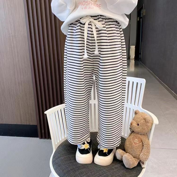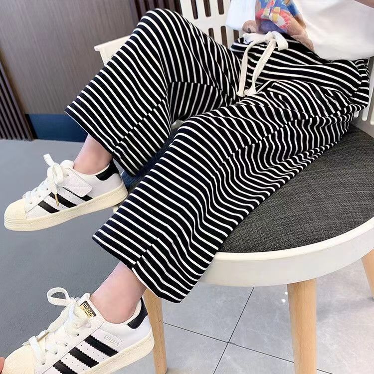 여름 신상 여아 스트레이트 와이드 팬츠 한국식 흑백 스트라이프 자외선 차단제 바지 어린이 느슨한 통기성 모기 방지 바지스토어 가기