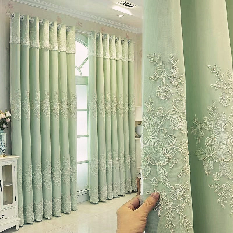간단한 현대 목가적 인 자수 창 화면 커튼 완성 거실 침실 발코니 자수 스크린 커튼 플로팅 창 바닥