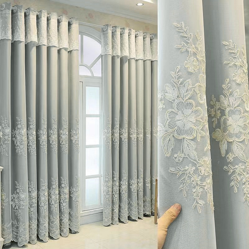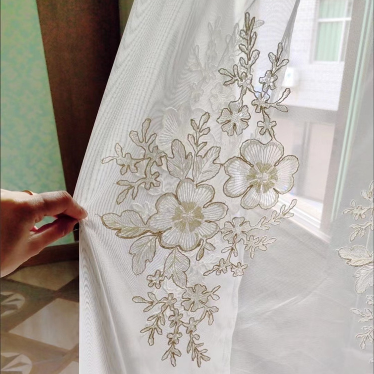 간단한 현대 목가적 인 자수 창 화면 커튼 완성 거실 침실 발코니 자수 스크린 커튼 플로팅 창 바닥스토어 가기
