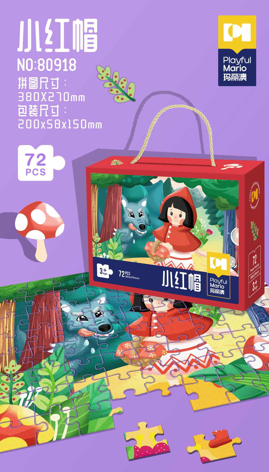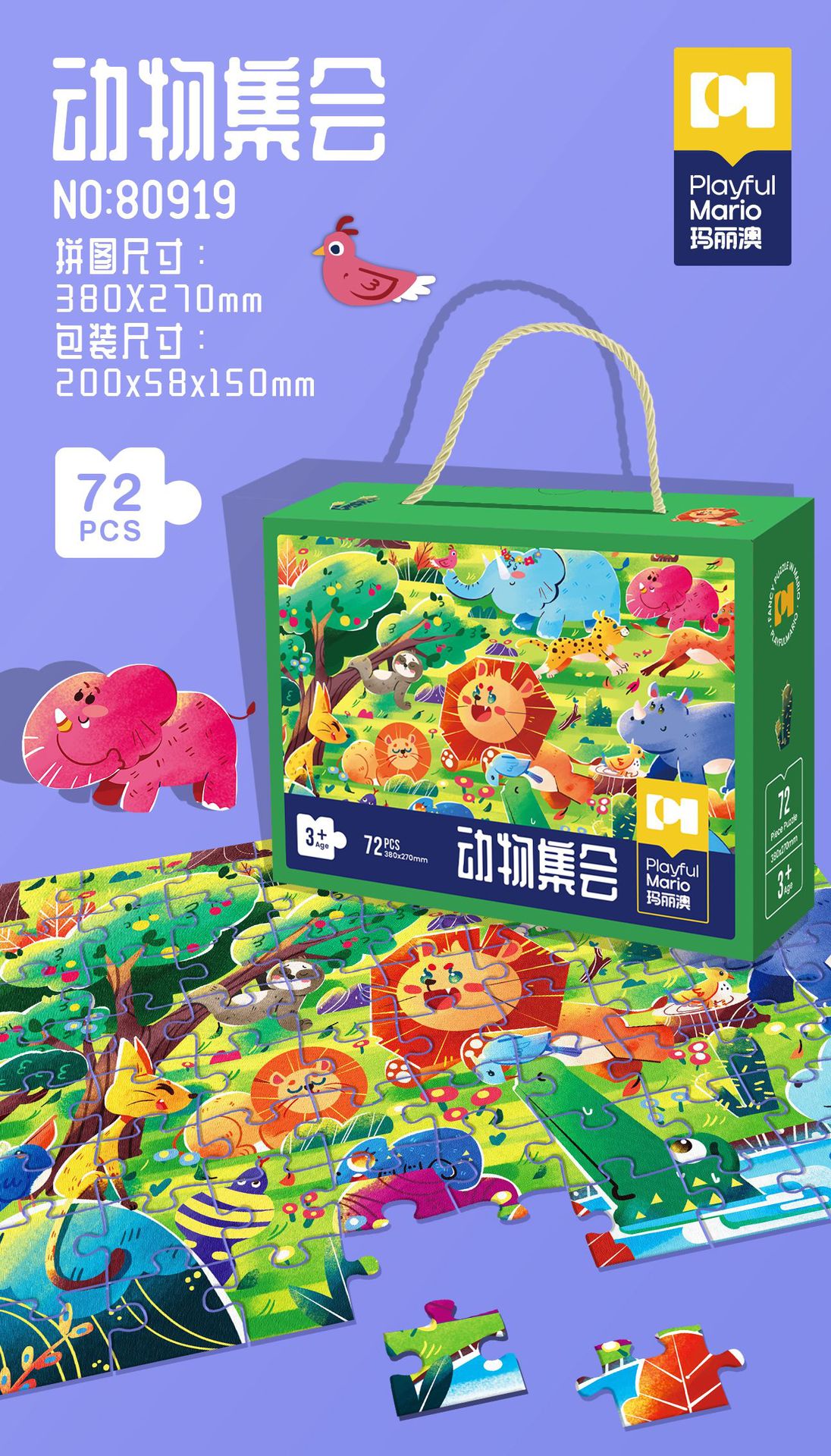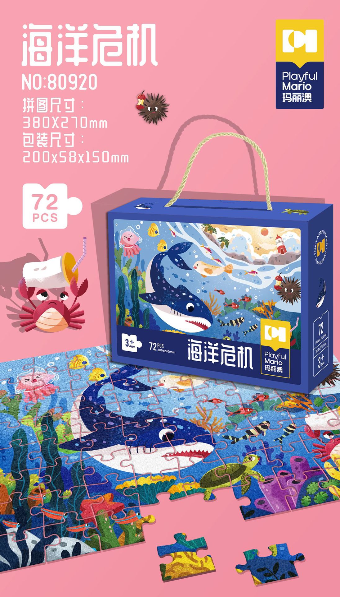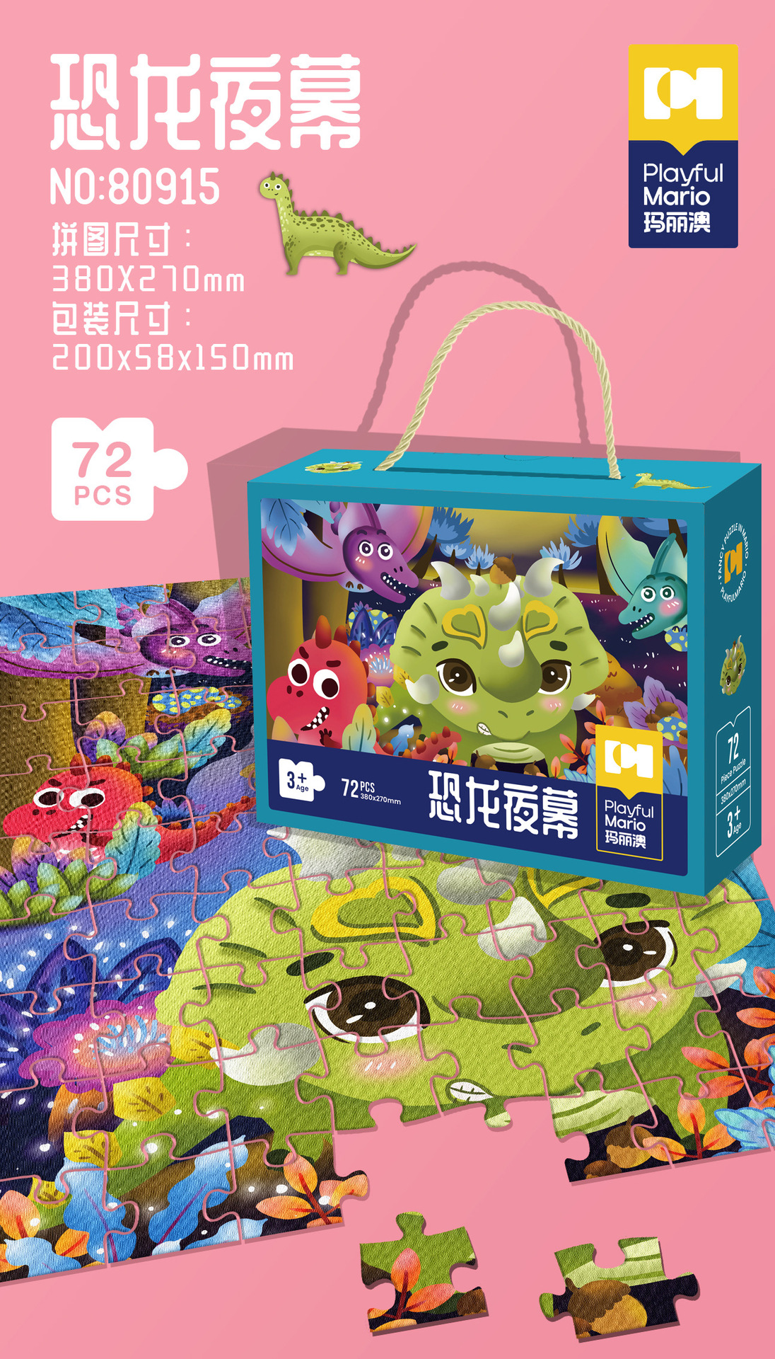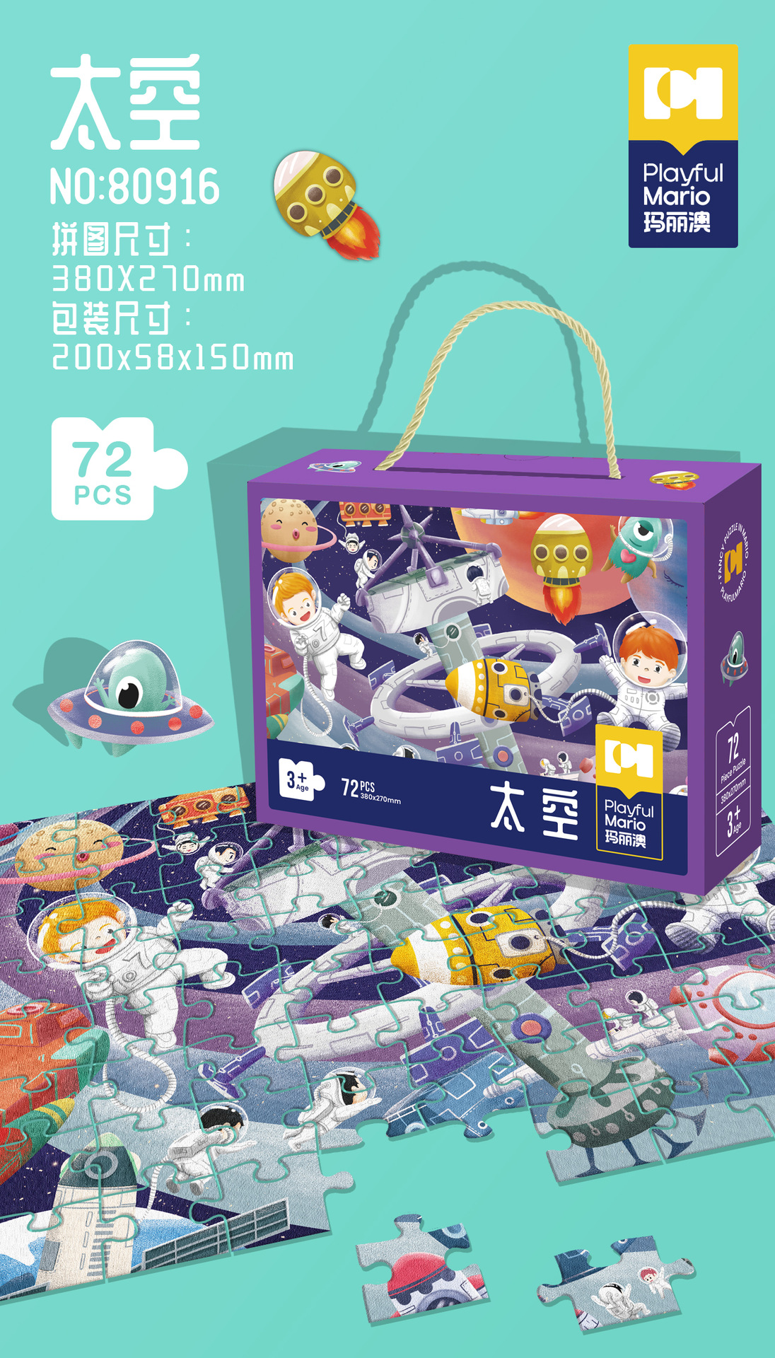 72片系列彩盒尺寸30*9*24cm,拼图尺寸90*60cm,单盒净重950g左右。