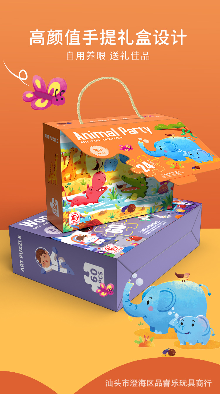 24片系列彩盒尺寸20*5.8*15cm,拼图尺寸44*31cm,单盒净值305g左右。