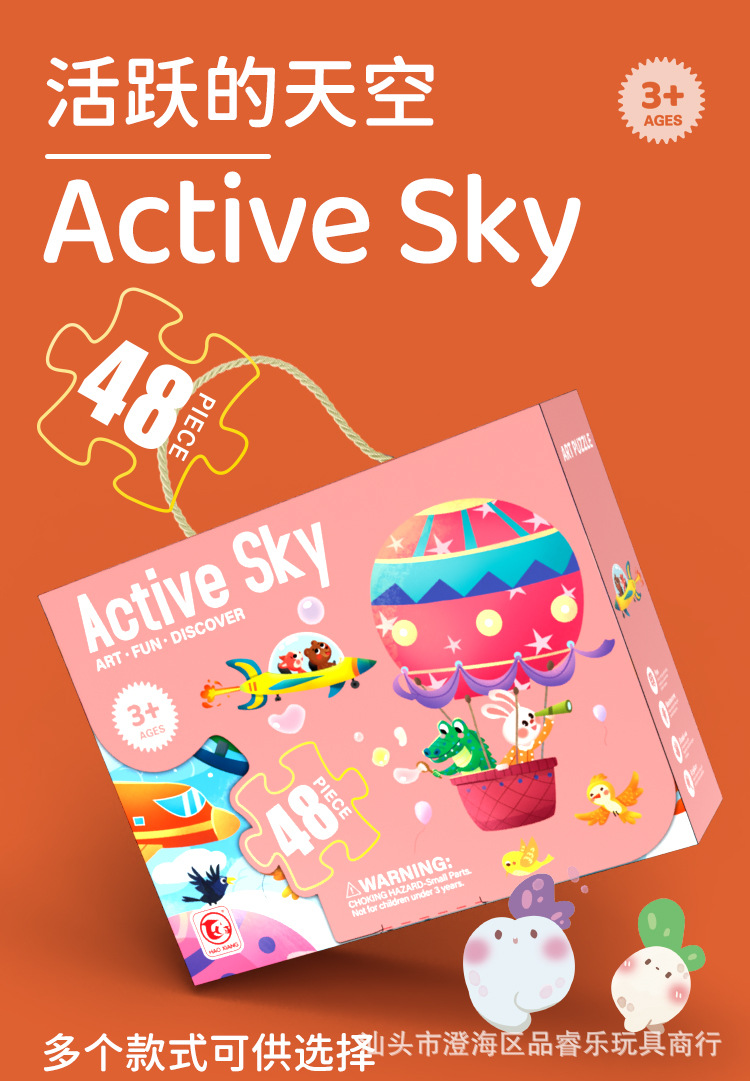 48片系列彩盒尺寸23*6.5*18cm,拼图尺寸50*34cm,单盒净重395g左右。
