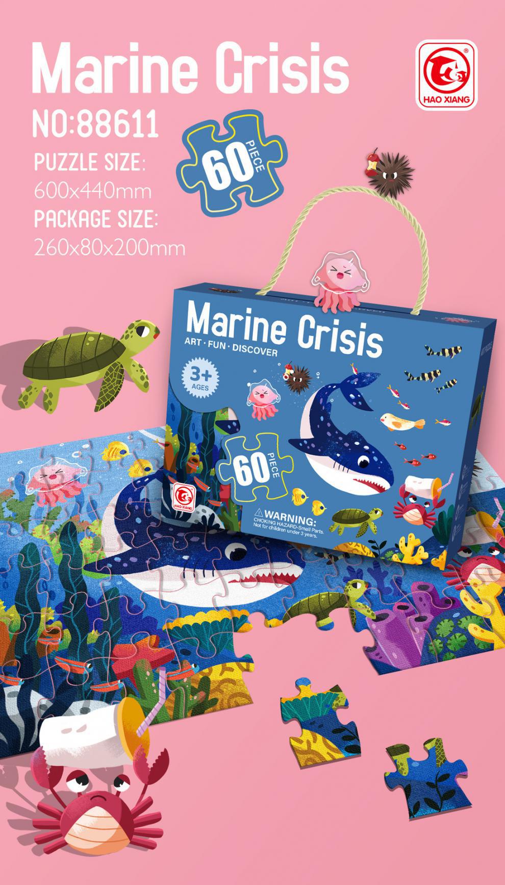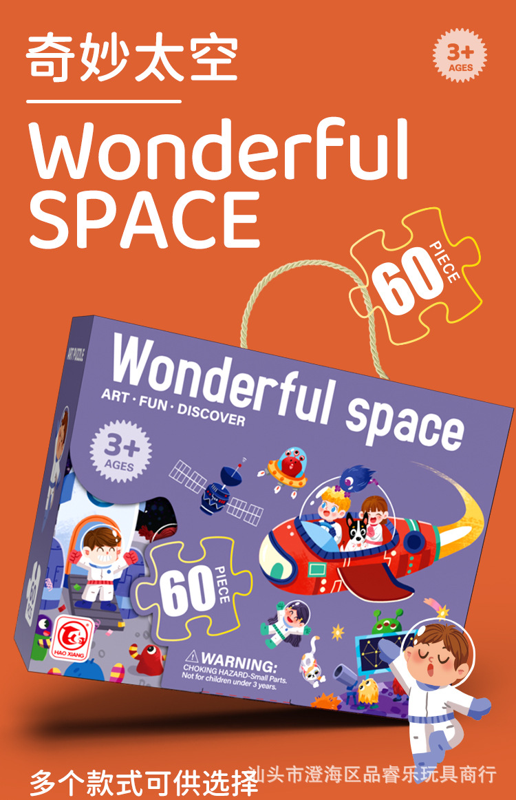 60片系列彩盒尺寸26*8*20cm,拼图尺寸60*44cm,单盒净重580g左右。