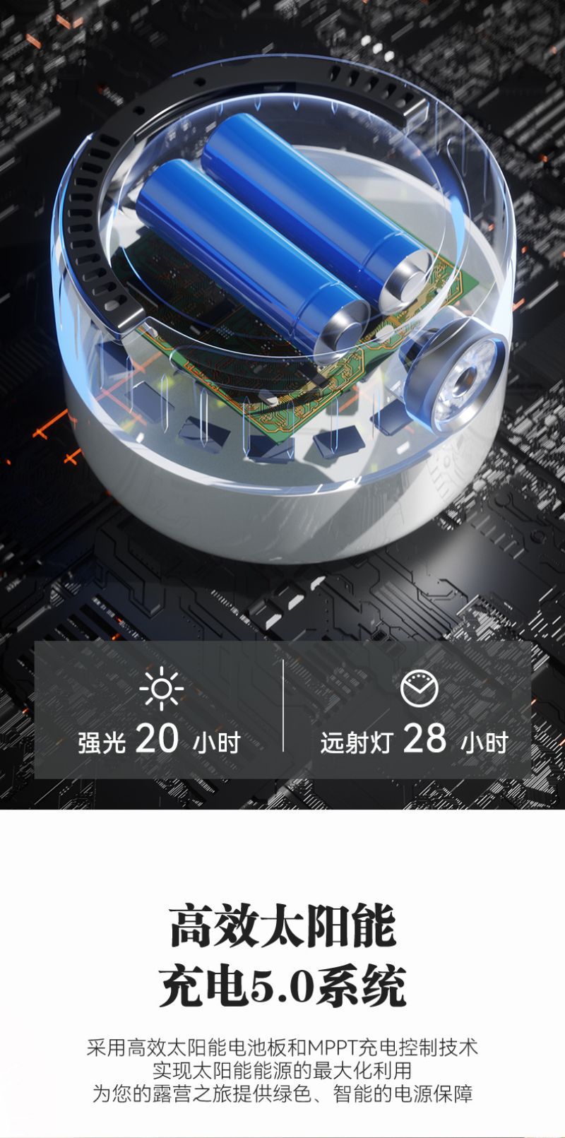 캠핑램프 롱 내구 태양열 캠핑 독서등 캠핑램프 휴대용 충전 보물 야외 조명 용품