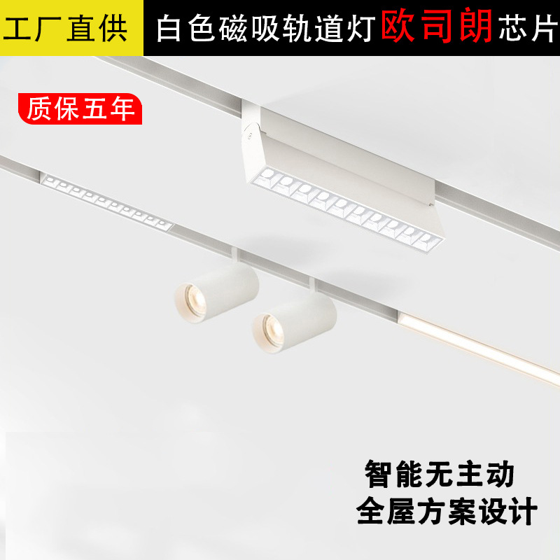 풀 스펙트럼 화이트 마그네틱 트랙 조명, 매립형 및 표면 장착형 트랙 조명, 마그네틱 스마트 트랙 무주조명 디자인