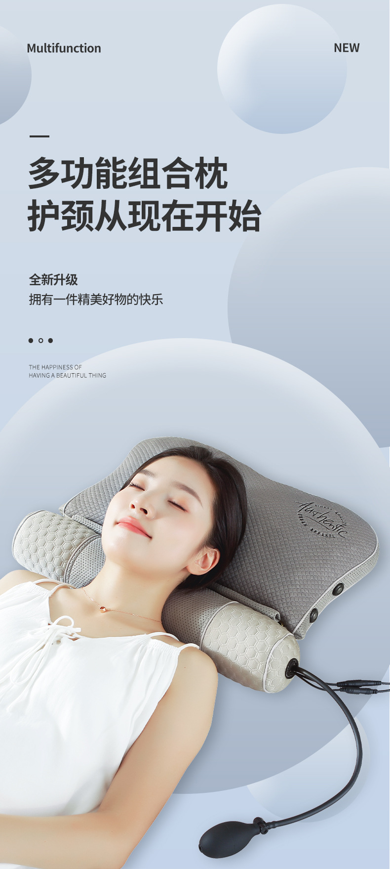 다기능 베개 자궁 경부 베개 마사지 뜨거운 압축 진동 풍선 라텍스 베개 허브 베개 도움 수면 견인 베개