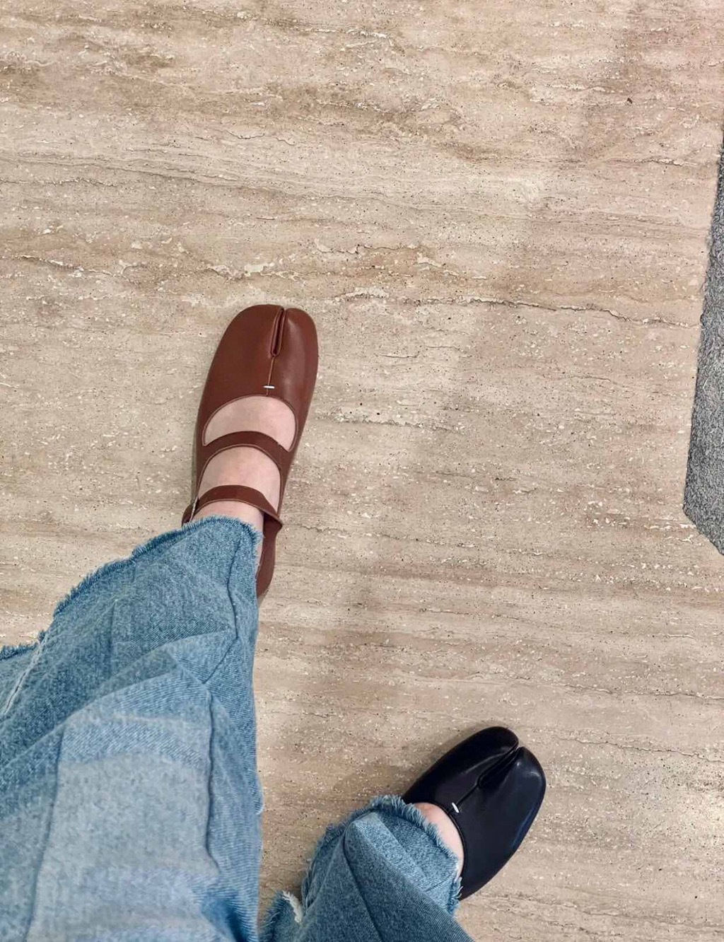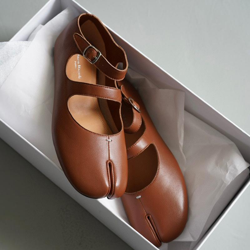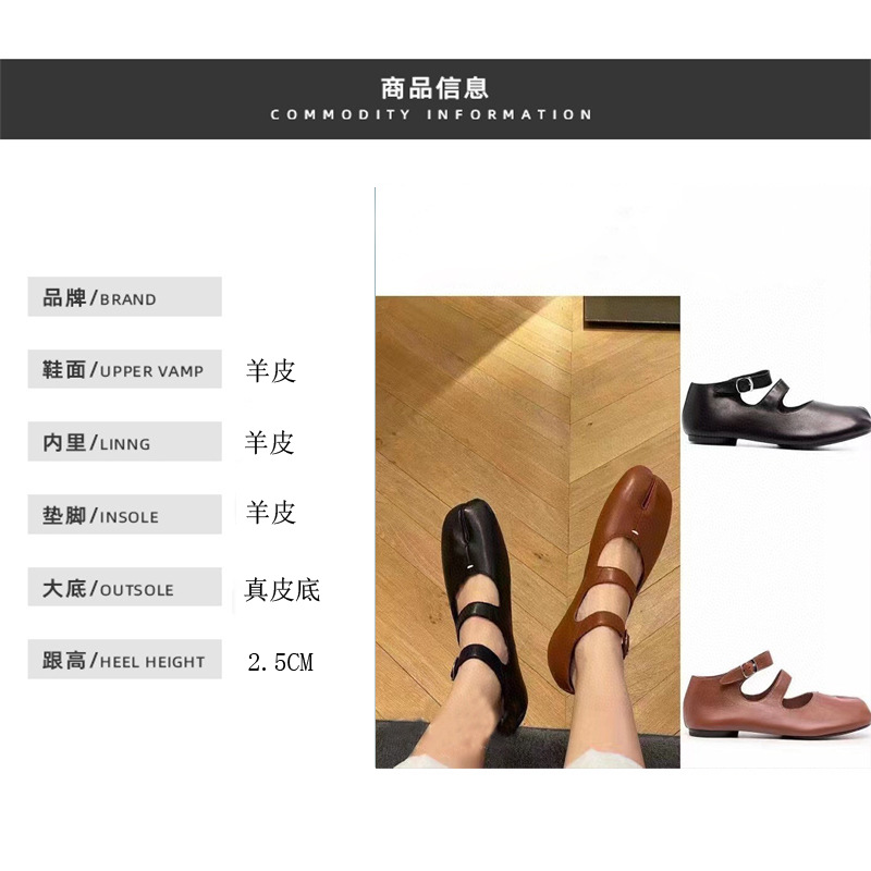 2023 여름 새로운 스타일 발레 슈즈 프렌치 빈티지 메리 제인 슈즈 아우터 정품 가죽 스플릿 토 여성 신발 플랫 싱글 슈즈스토어 가기