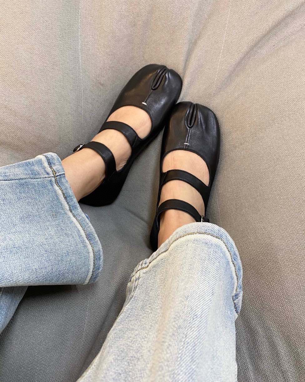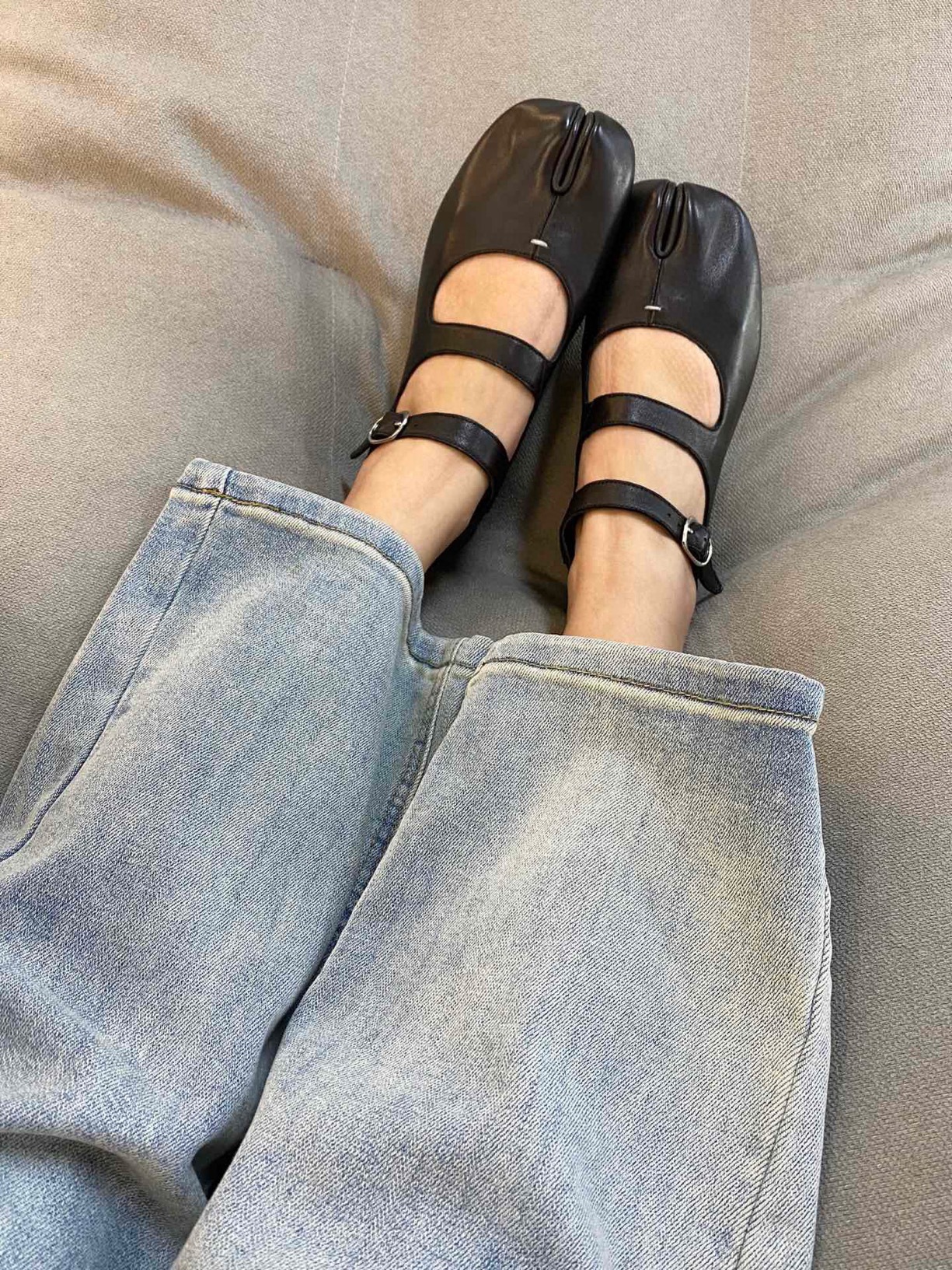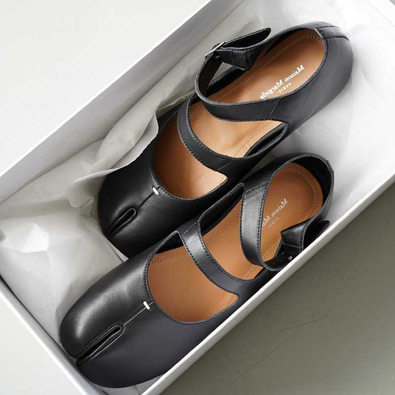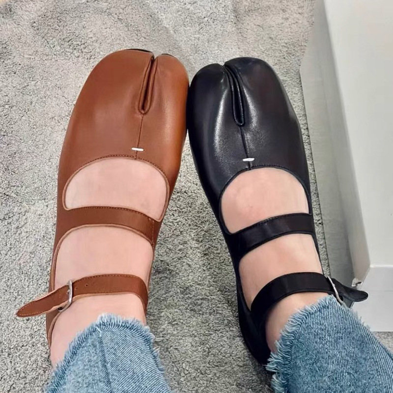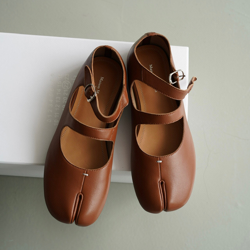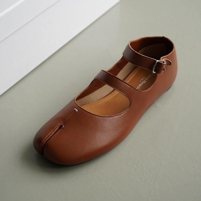 2023 여름 새로운 스타일 발레 슈즈 프렌치 빈티지 메리 제인 슈즈 아우터 정품 가죽 스플릿 토 여성 신발 플랫 싱글 슈즈