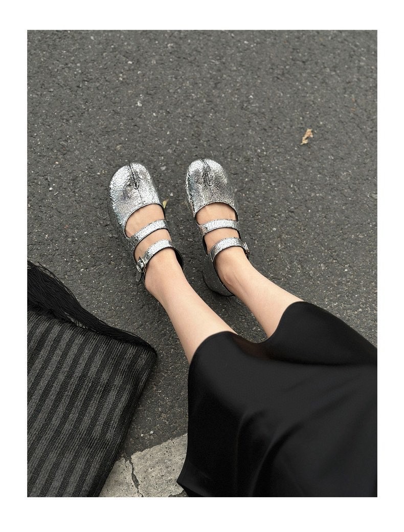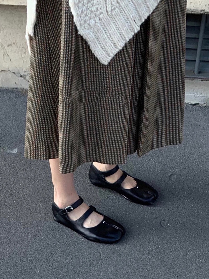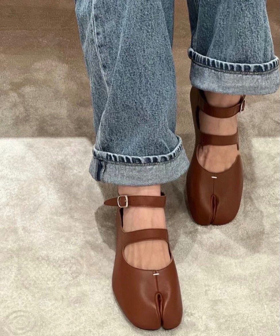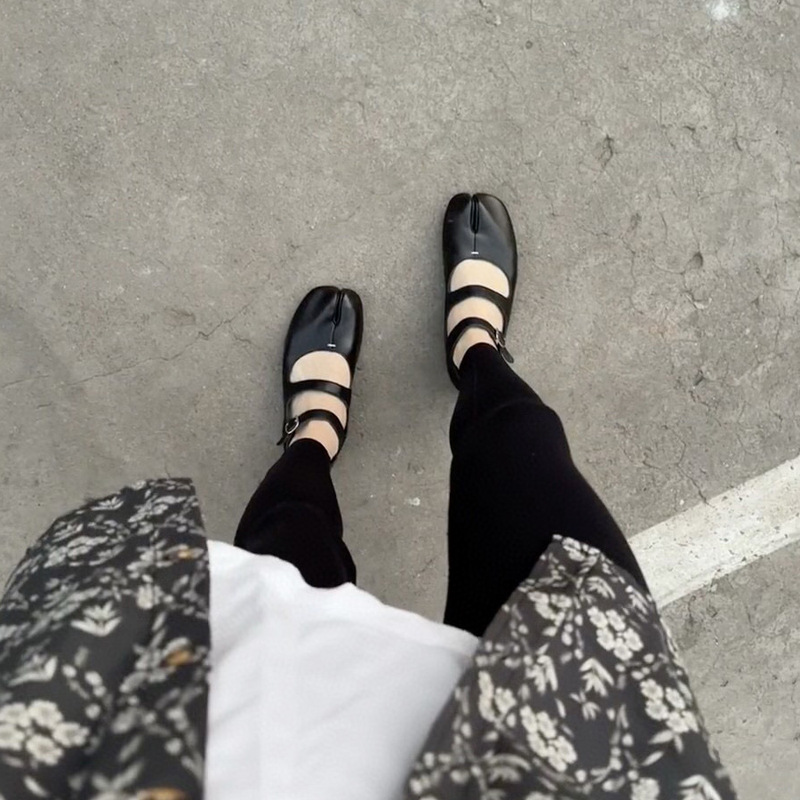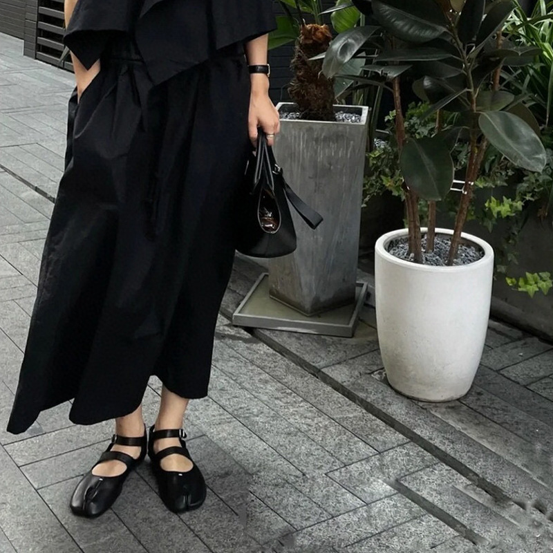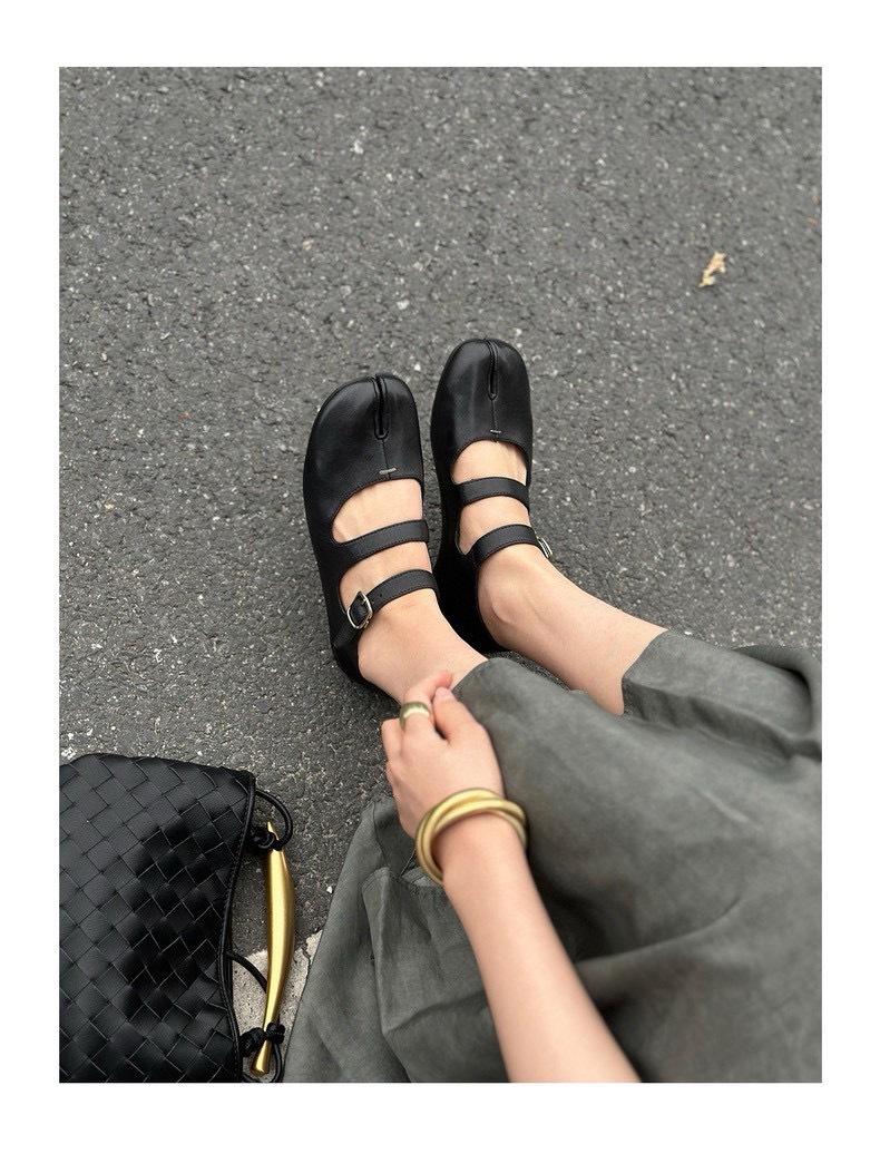 2023 여름 새로운 스타일 발레 슈즈 프렌치 빈티지 메리 제인 슈즈 아우터 정품 가죽 스플릿 토 여성 신발 플랫 싱글 슈즈