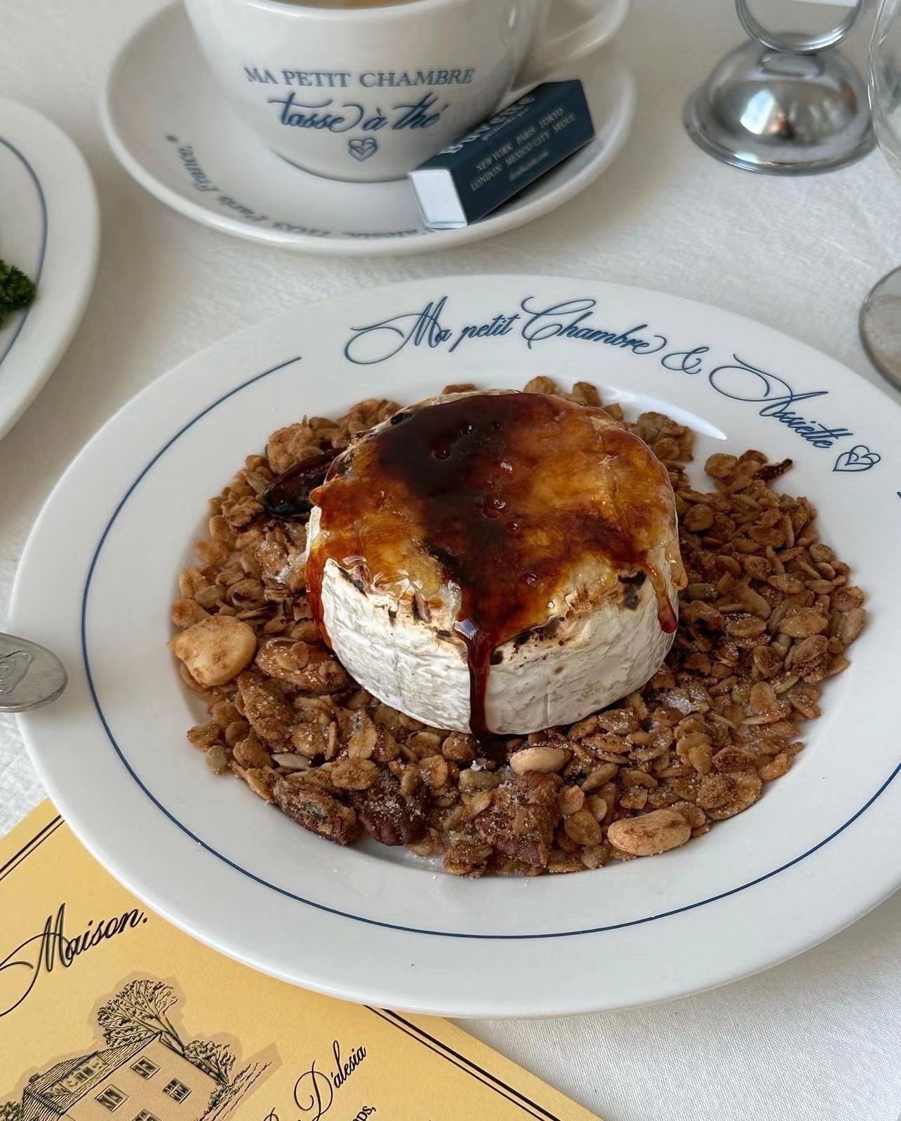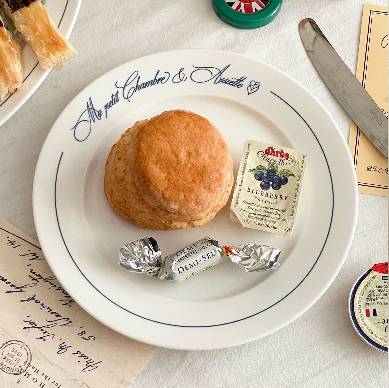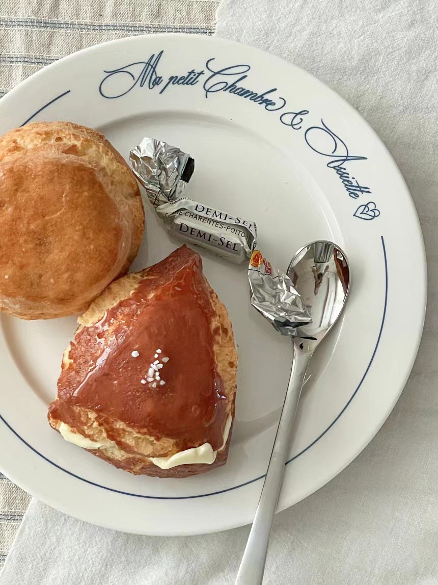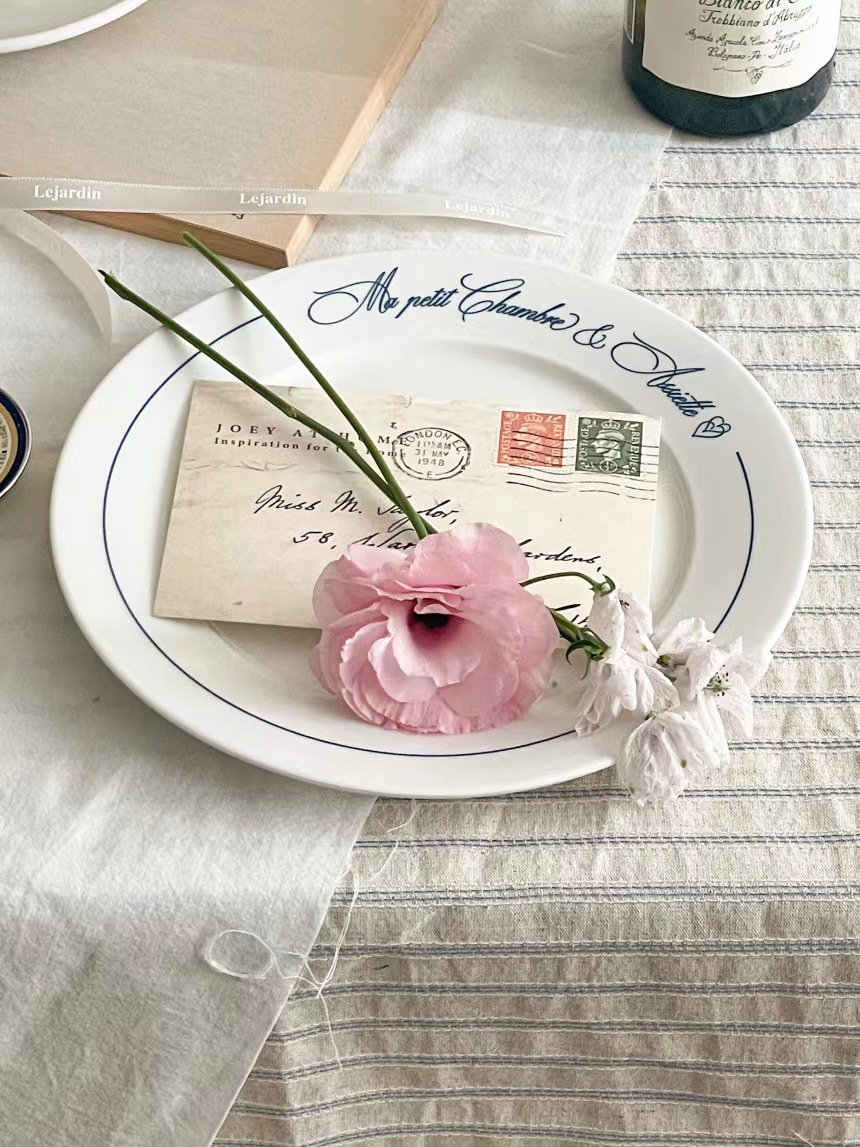 Ins 스타일 블루 레터 프렌치 플레이트 빈티지 세라믹 식기 서양 디저트 플레이트 아침 식사 플레이트 가정용 고온 저항스토어 가기