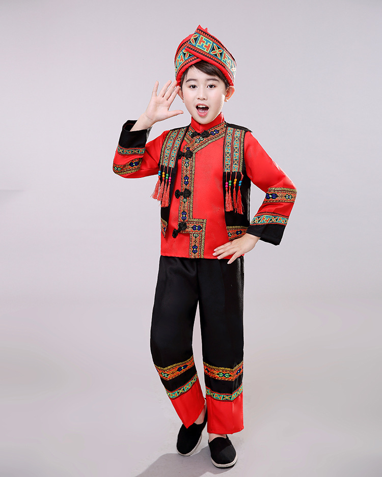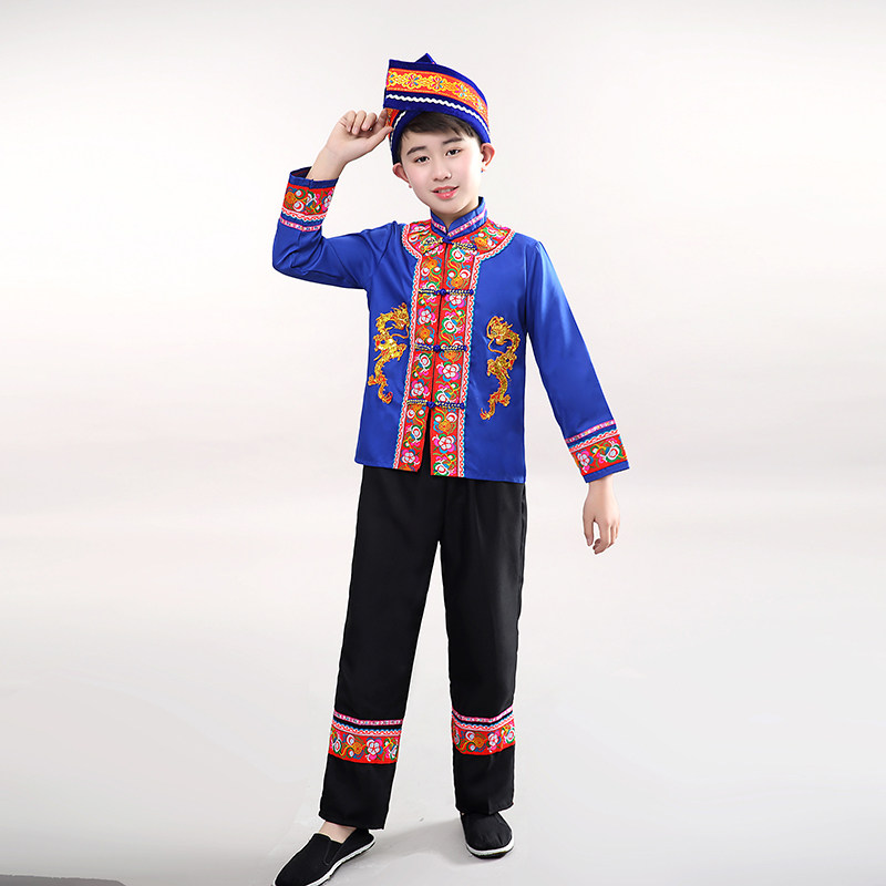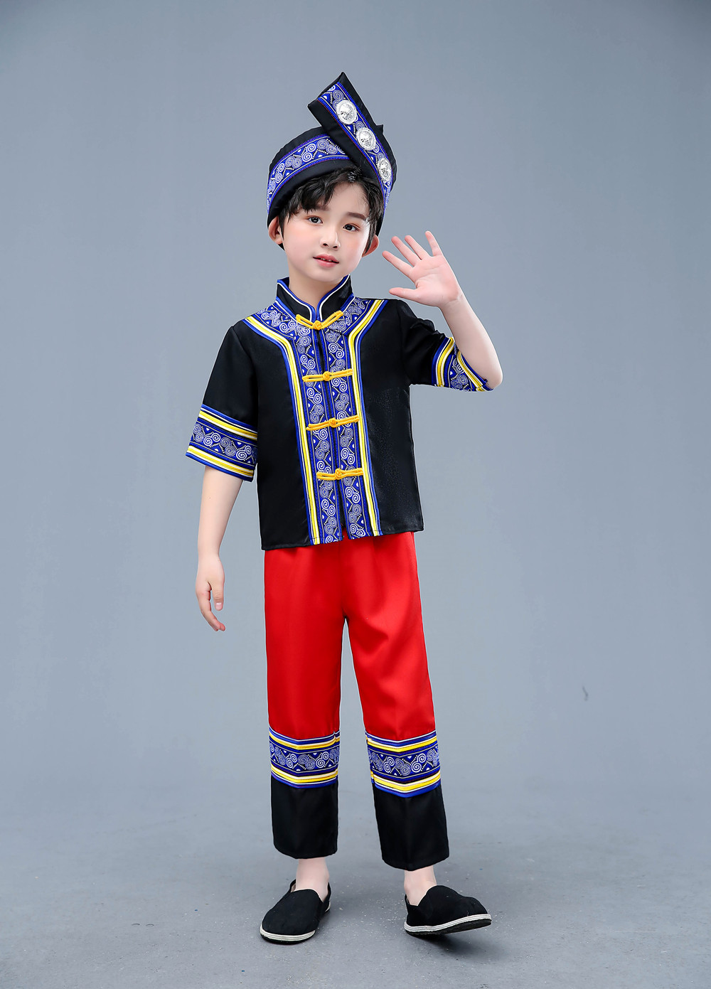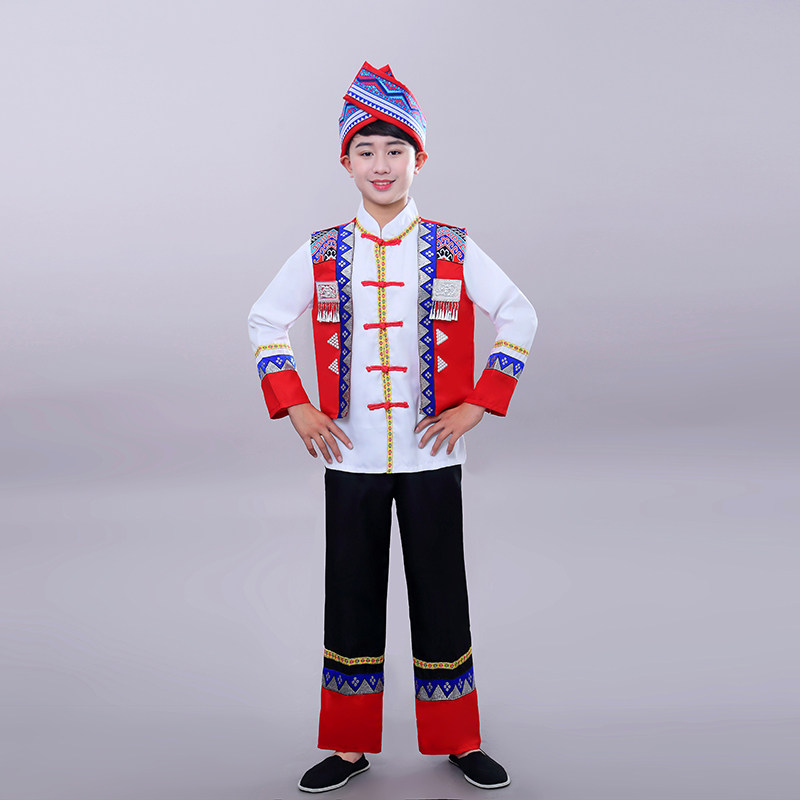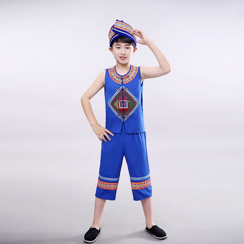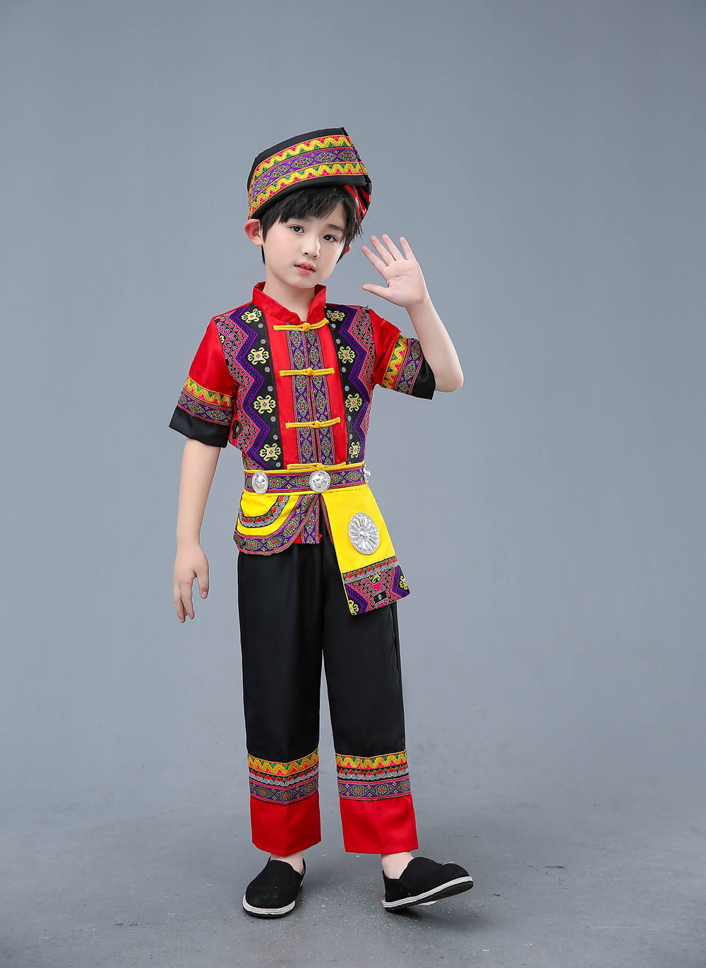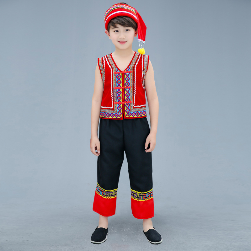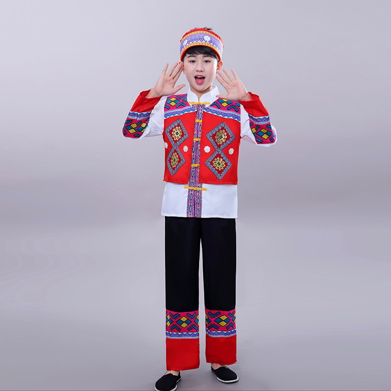 어린이 56 민족 의상 광시 소수 민족 댄스 의상 Pumi 남성과 여성 어린이 공연 의상 새로운스토어 가기