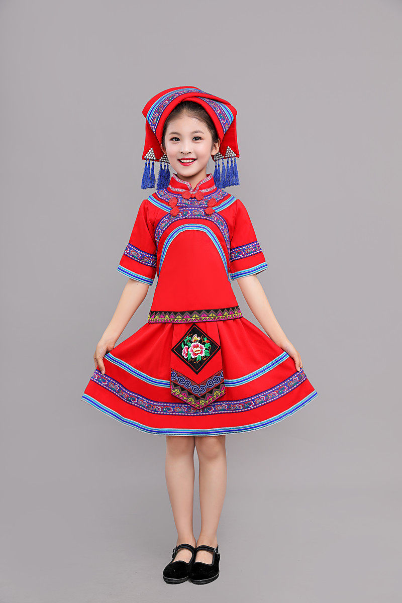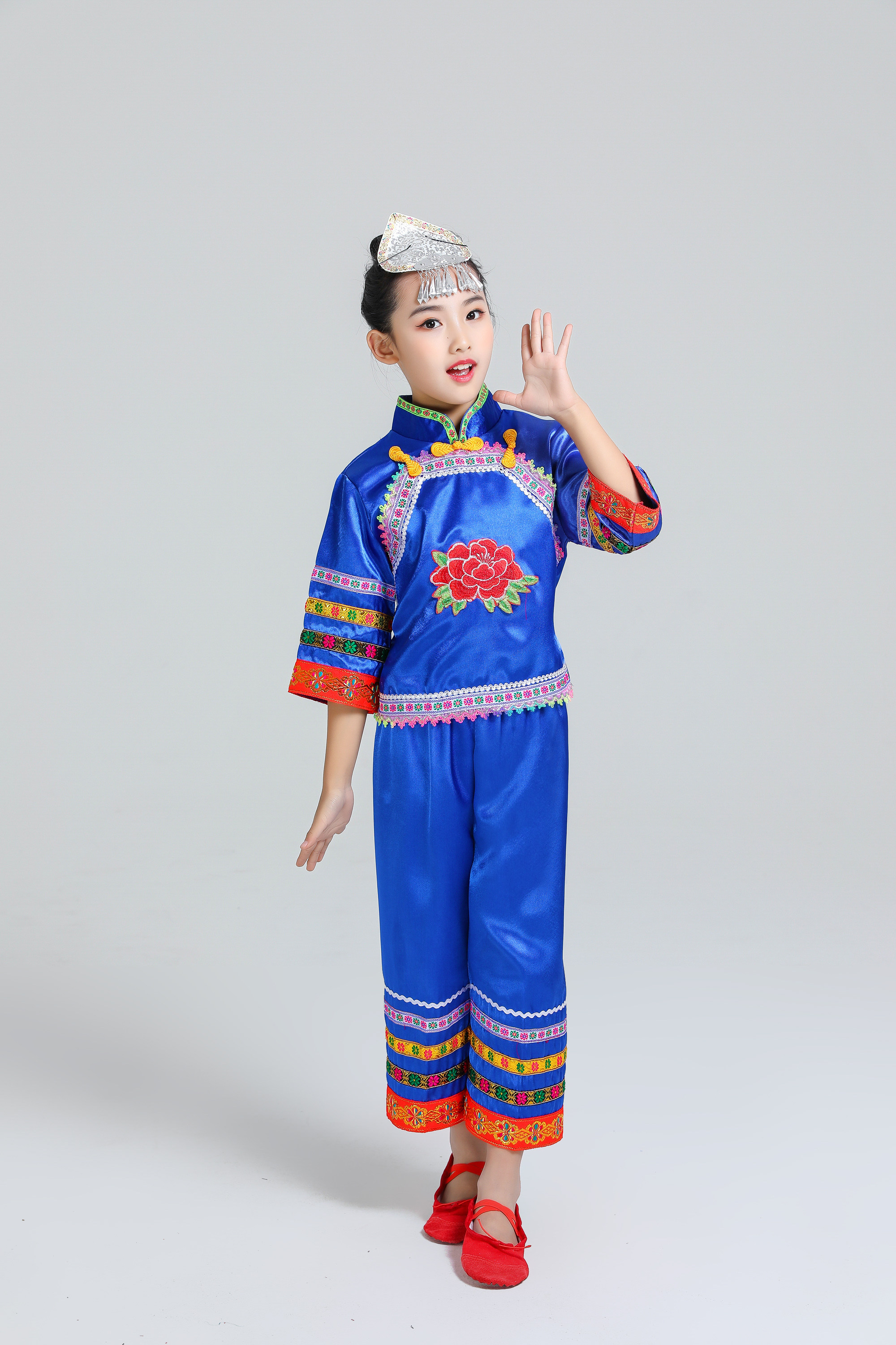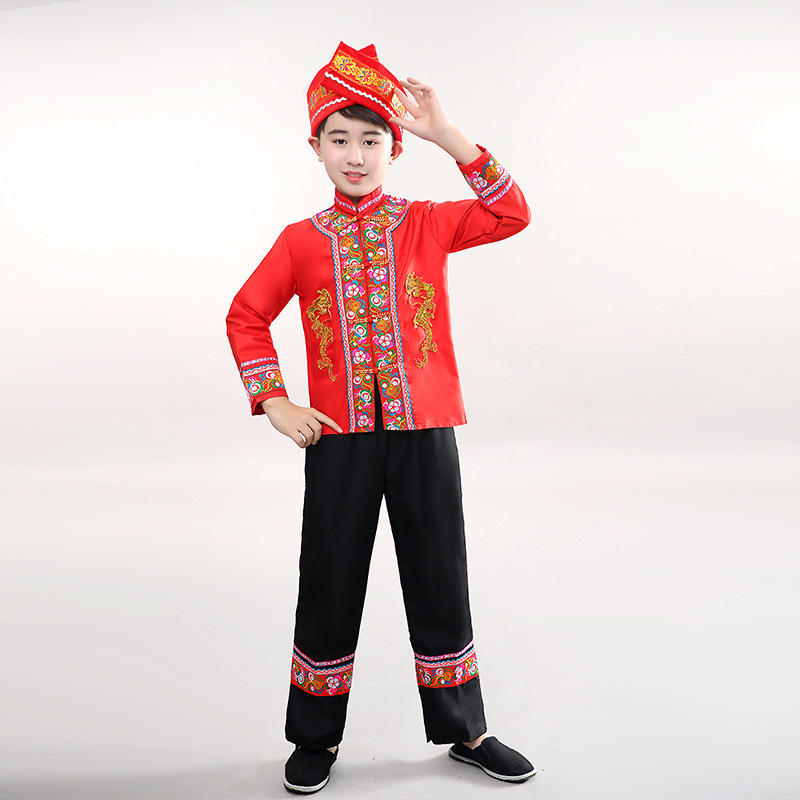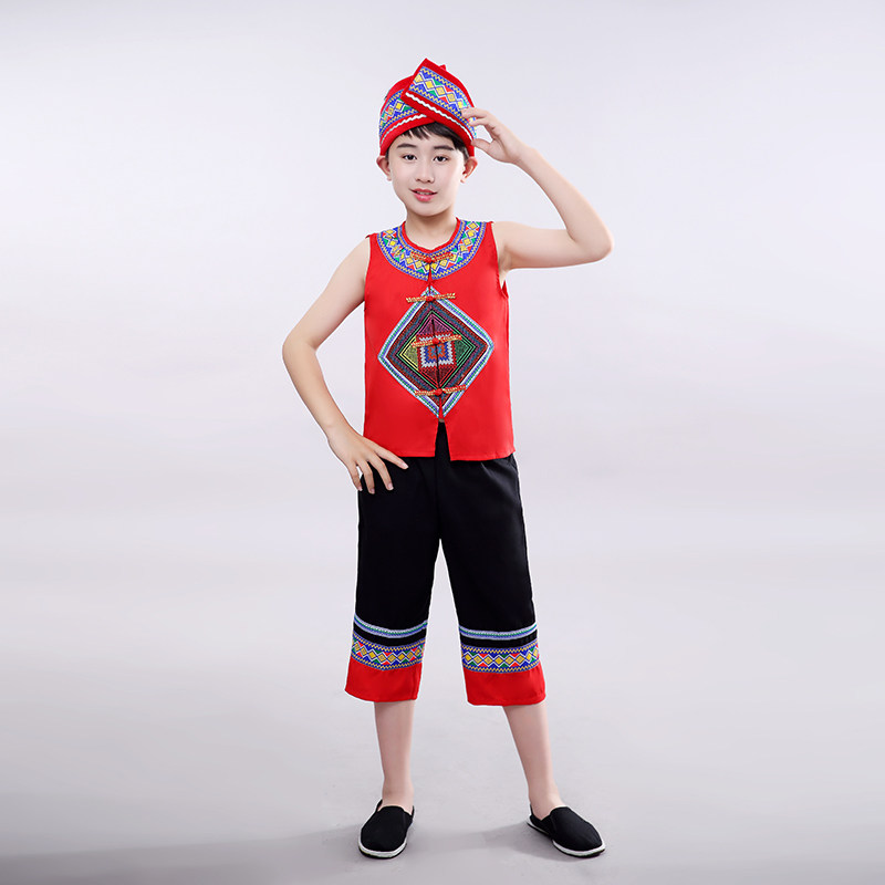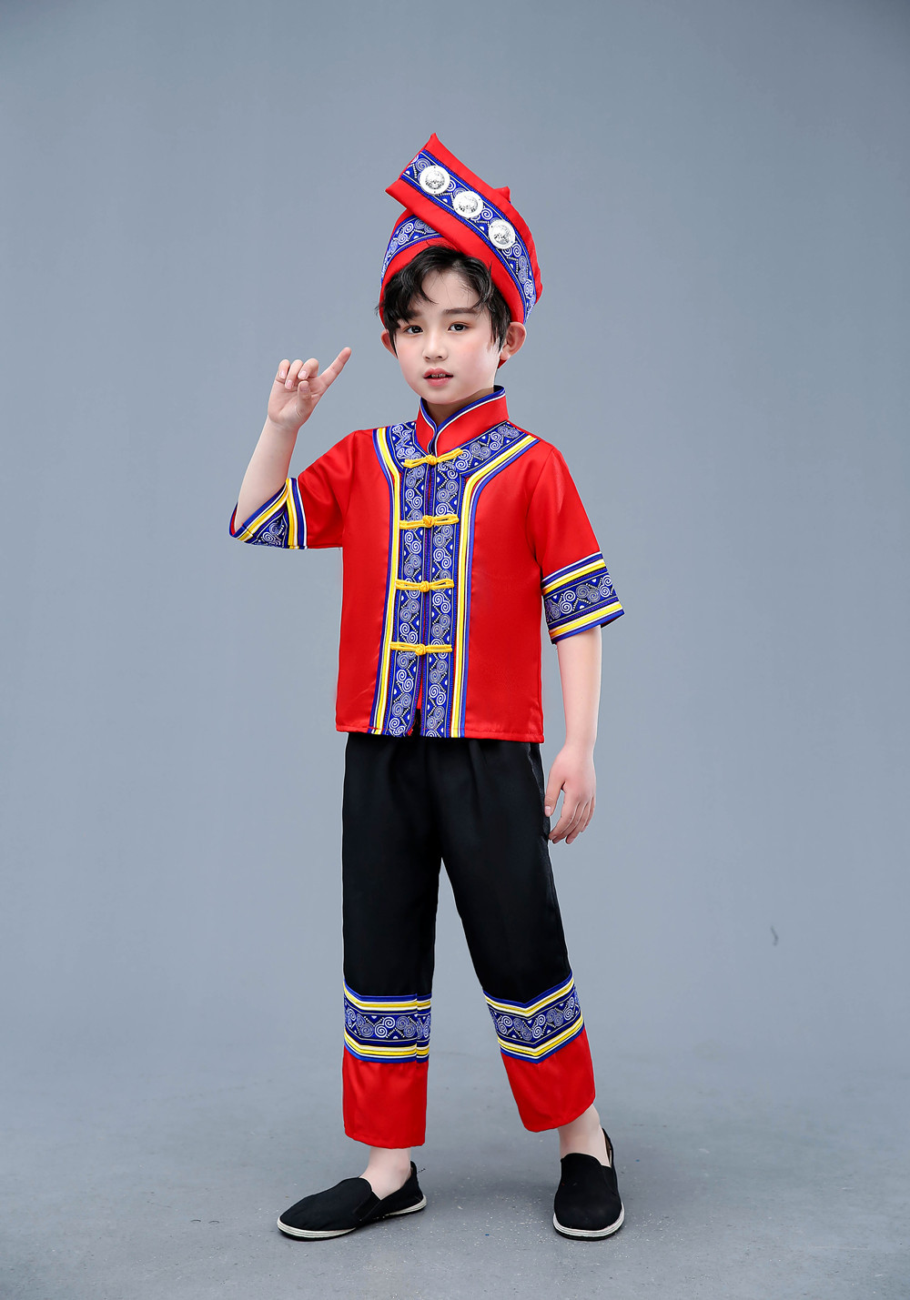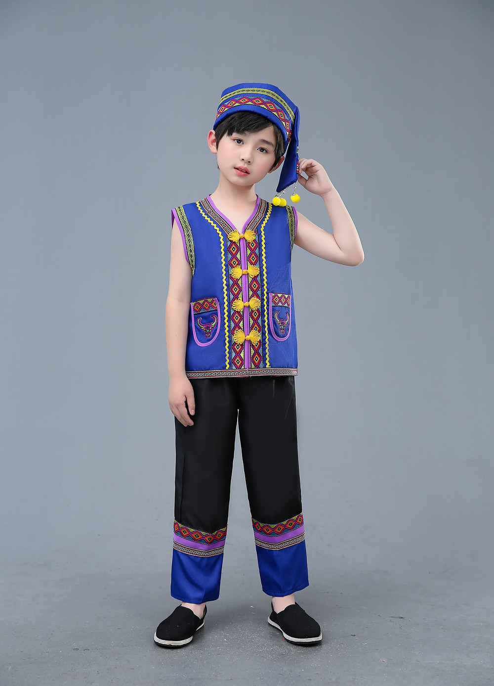 어린이 56 민족 의상 광시 소수 민족 댄스 의상 Pumi 남성과 여성 어린이 공연 의상 새로운스토어 가기