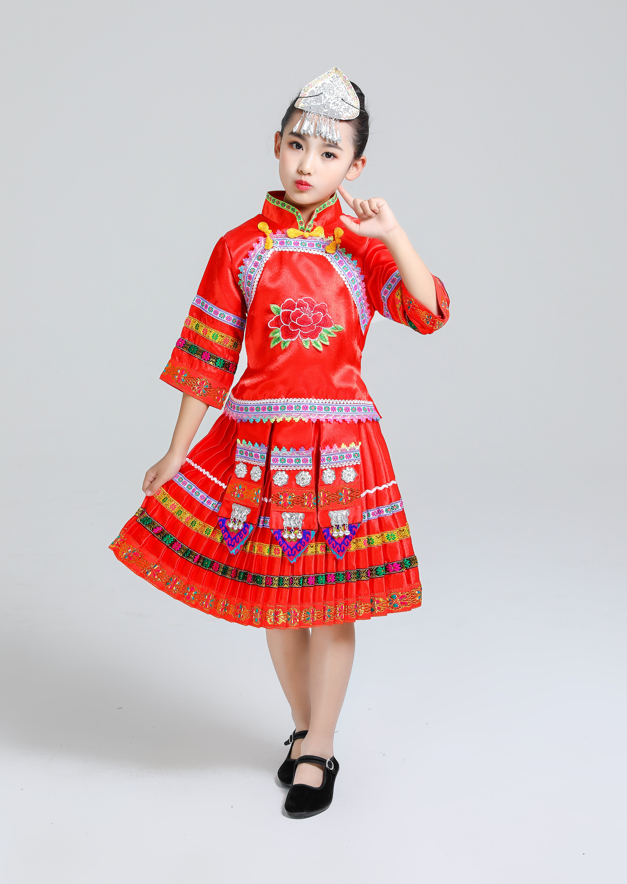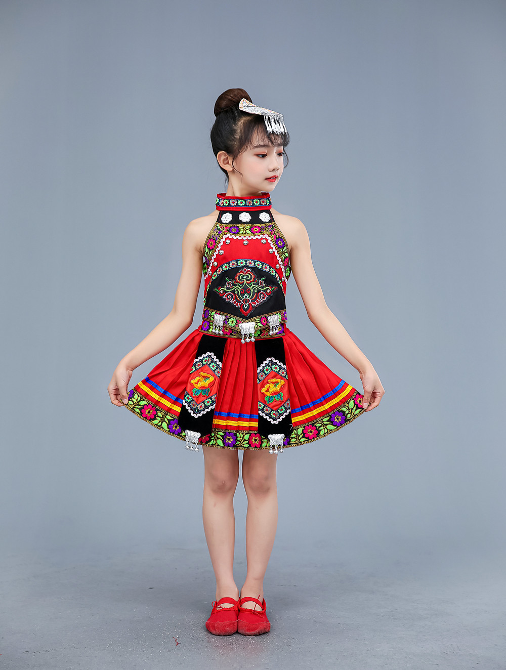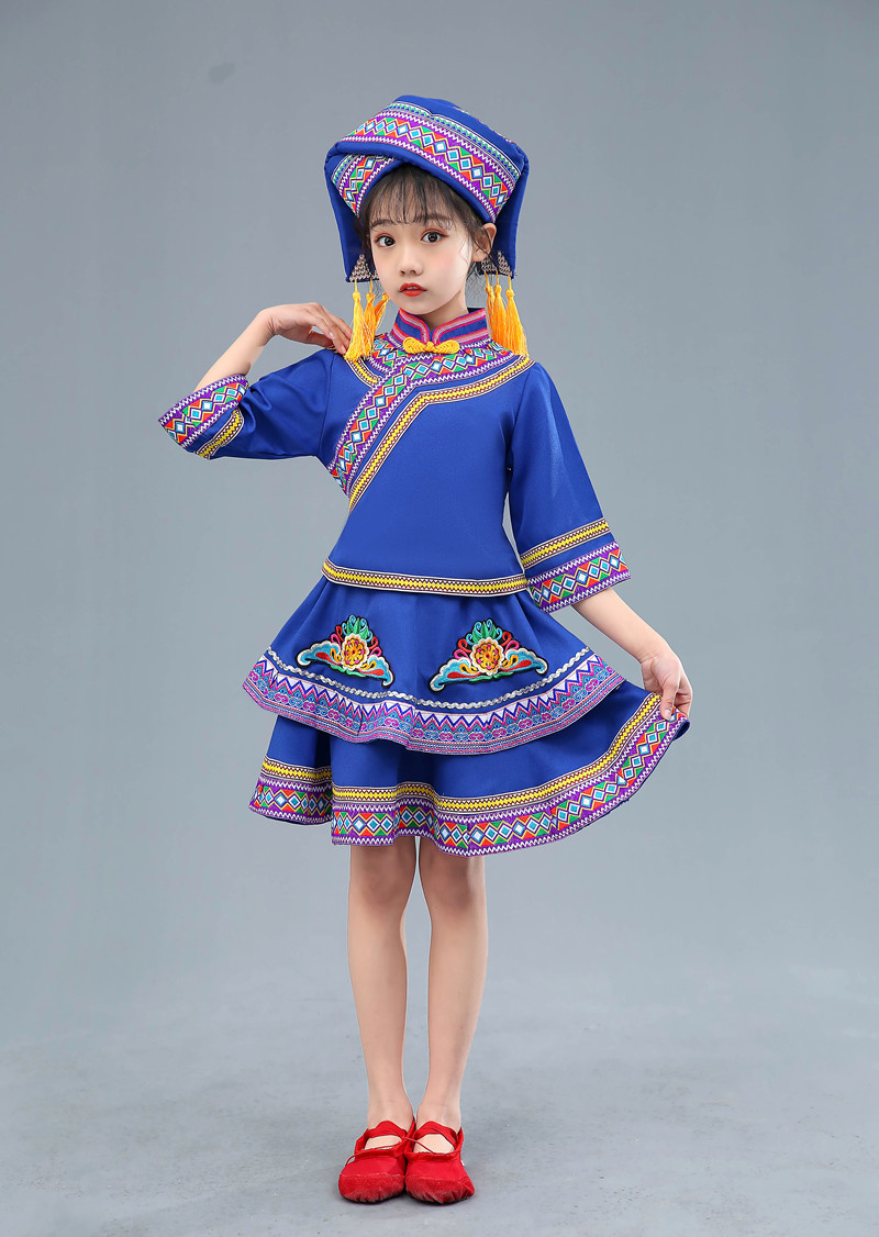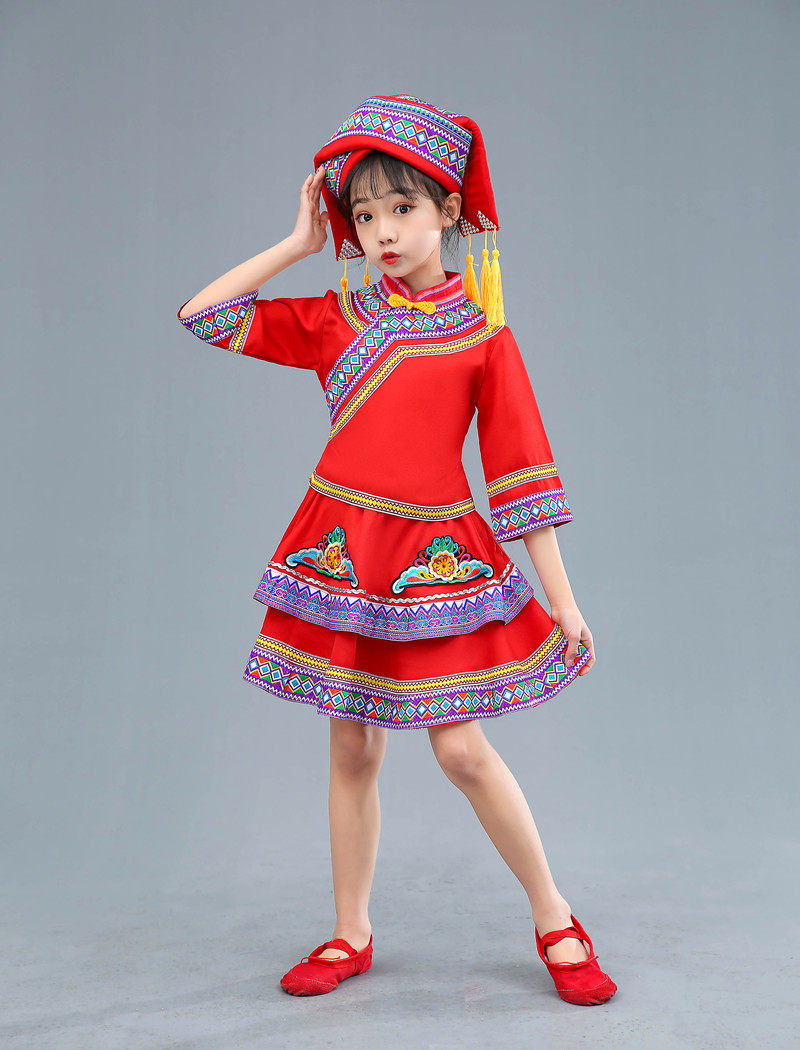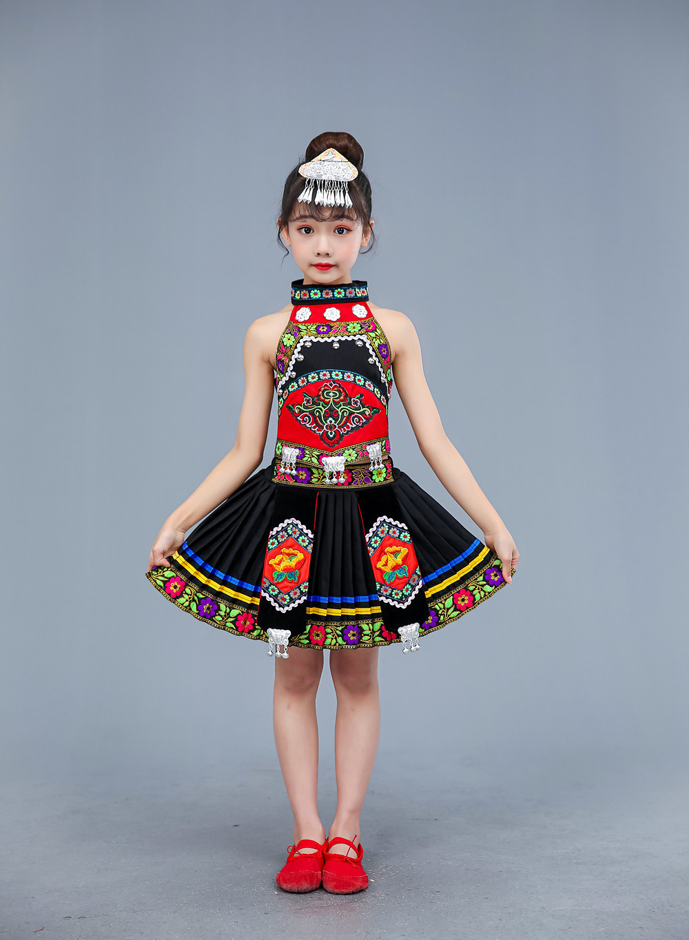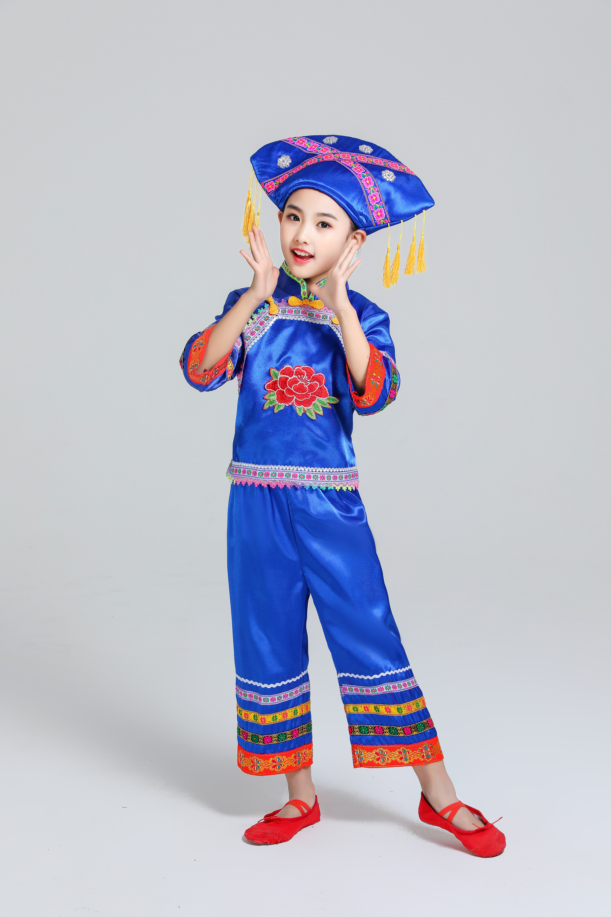 어린이 56 민족 의상 광시 소수 민족 댄스 의상 Pumi 남성과 여성 어린이 공연 의상 새로운스토어 가기