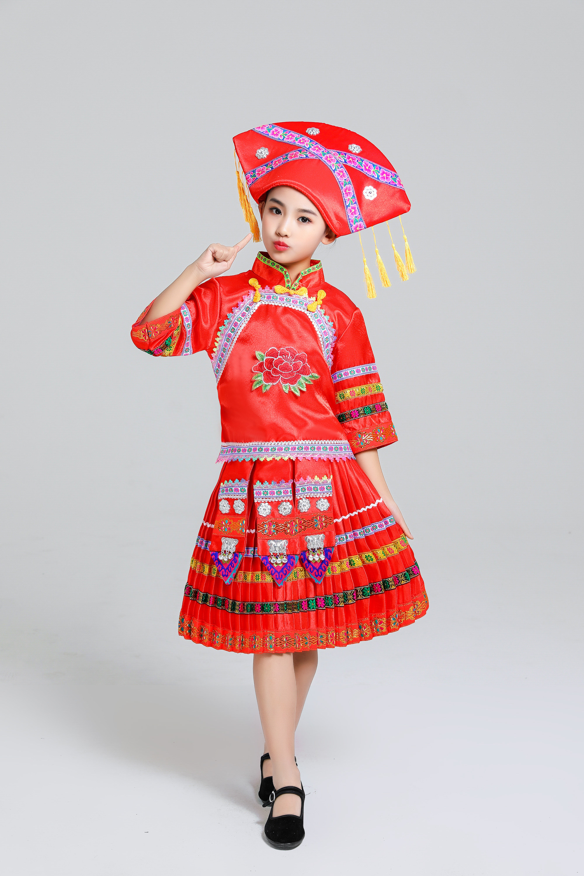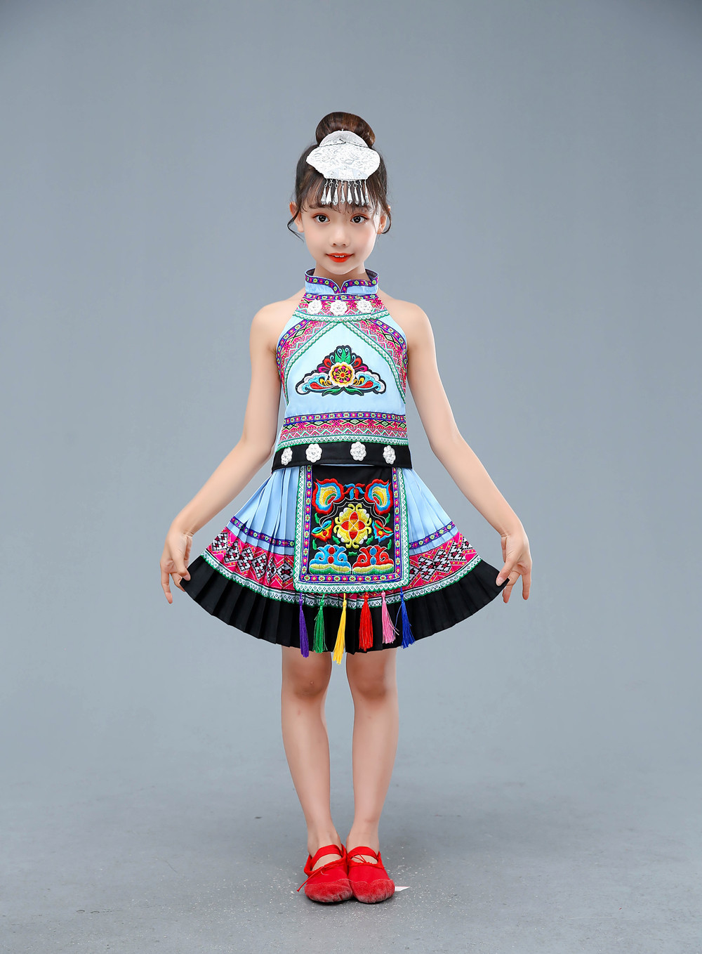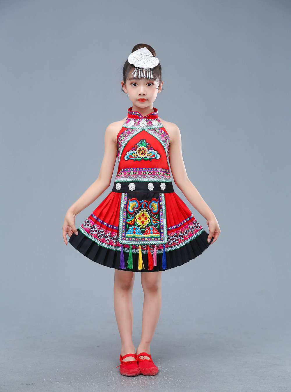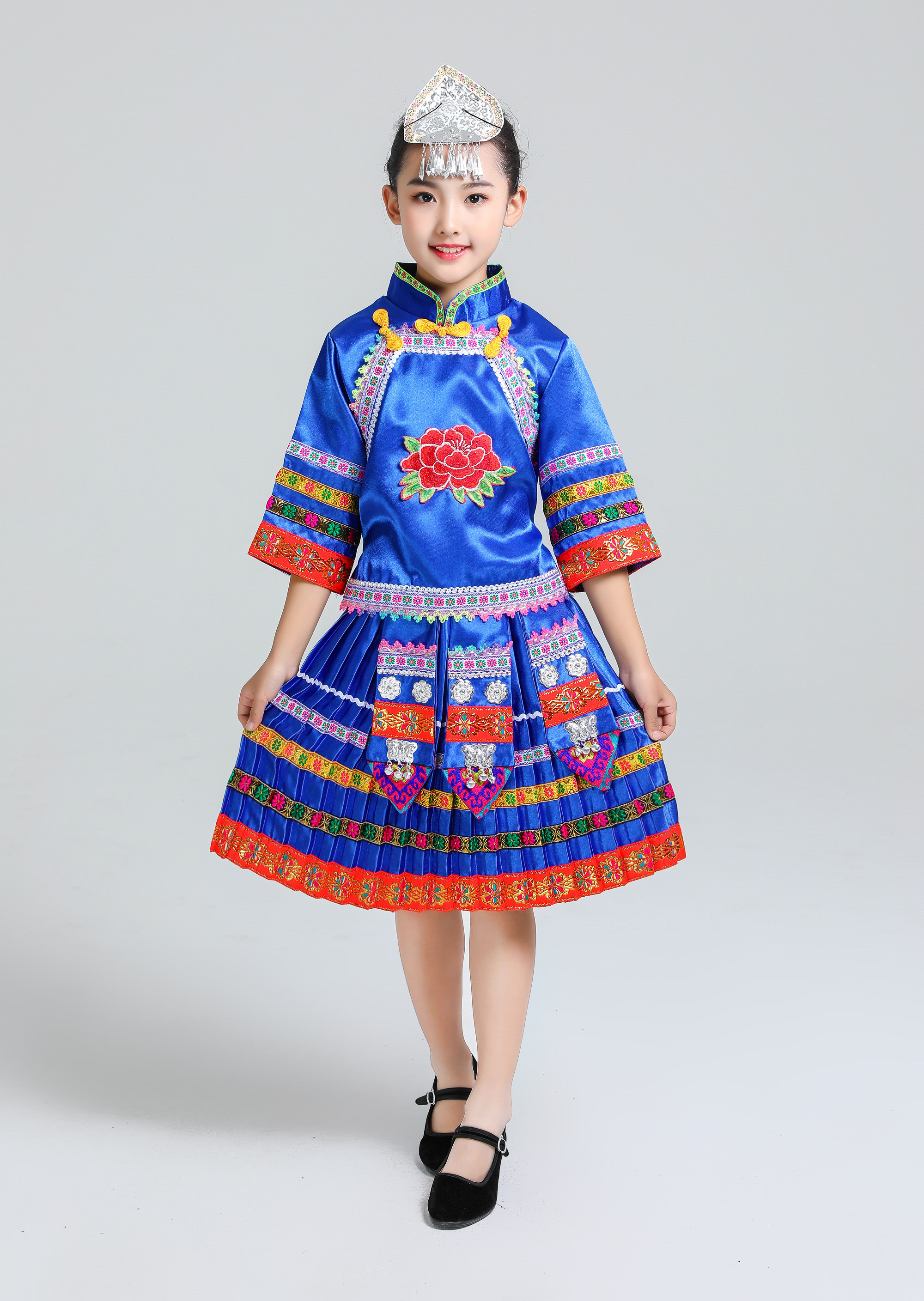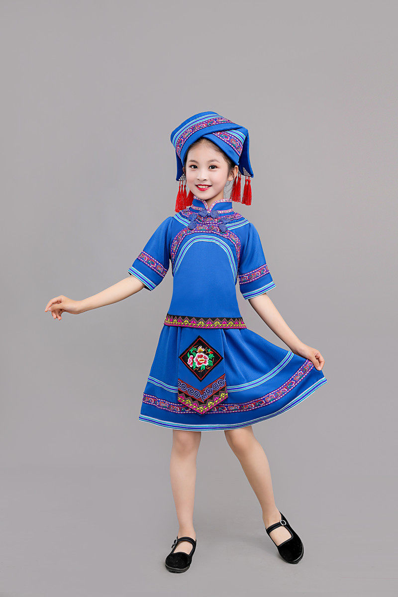 어린이 56 민족 의상 광시 소수 민족 댄스 의상 Pumi 남성과 여성 어린이 공연 의상 새로운스토어 가기