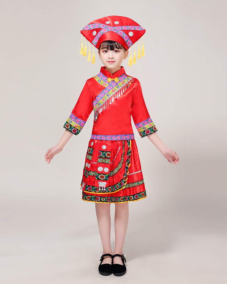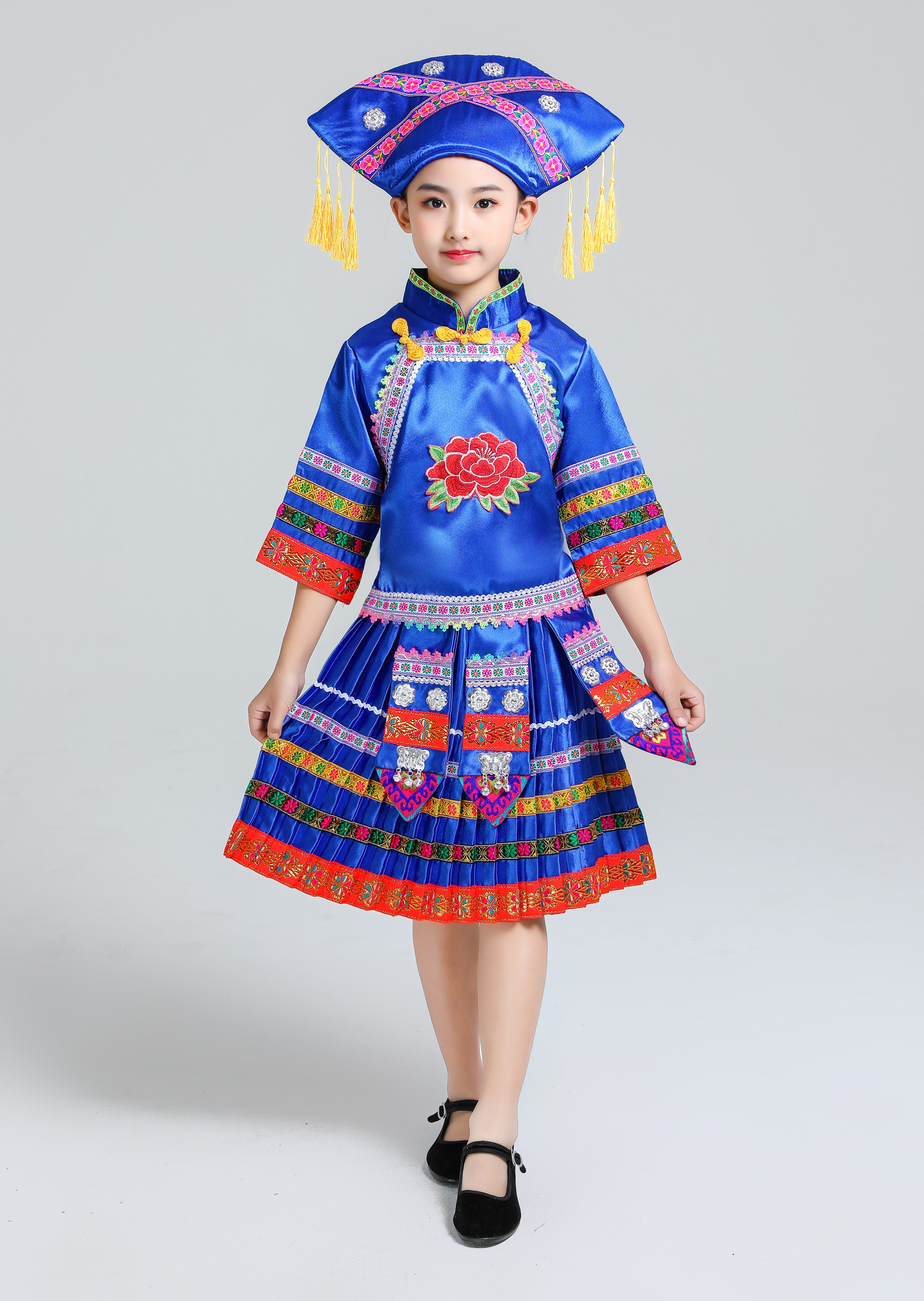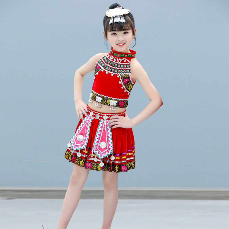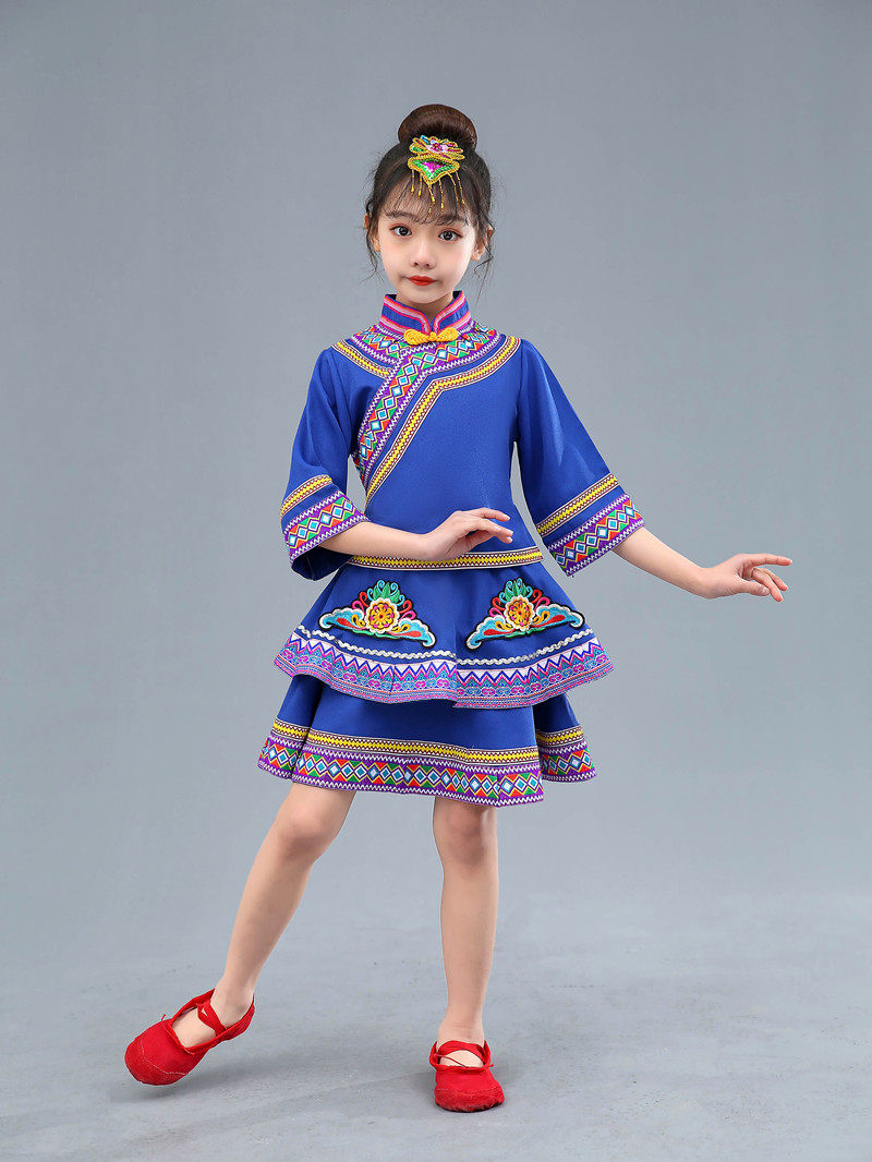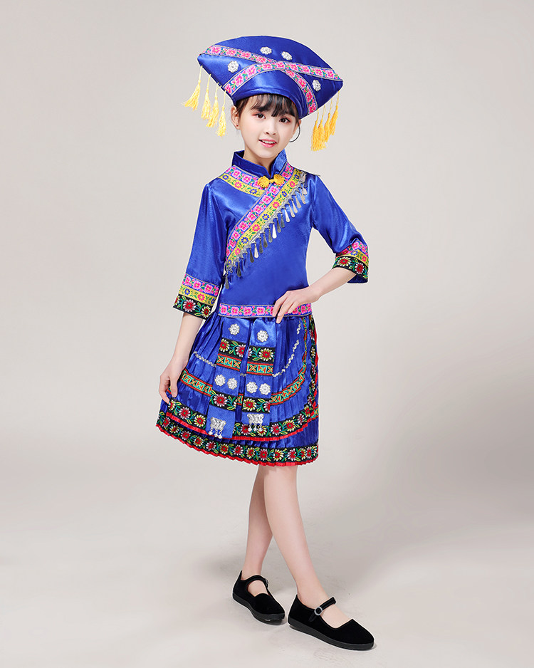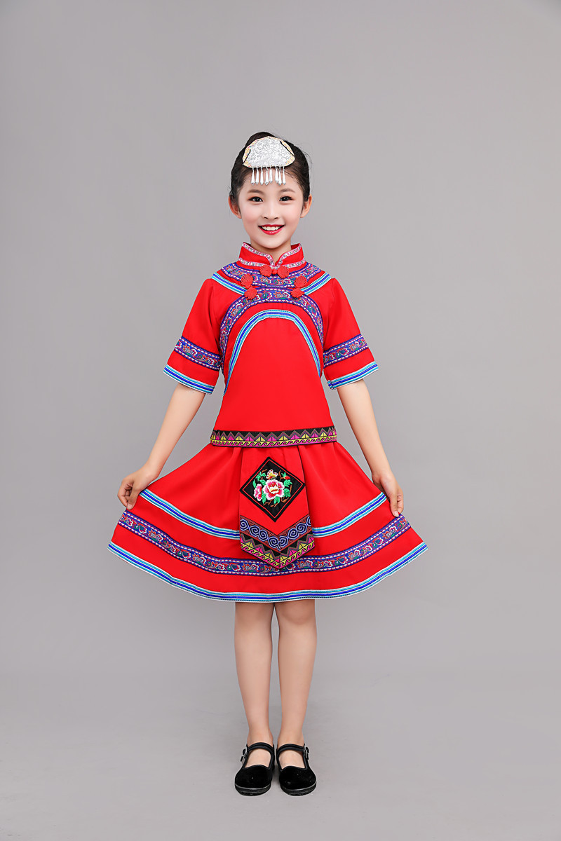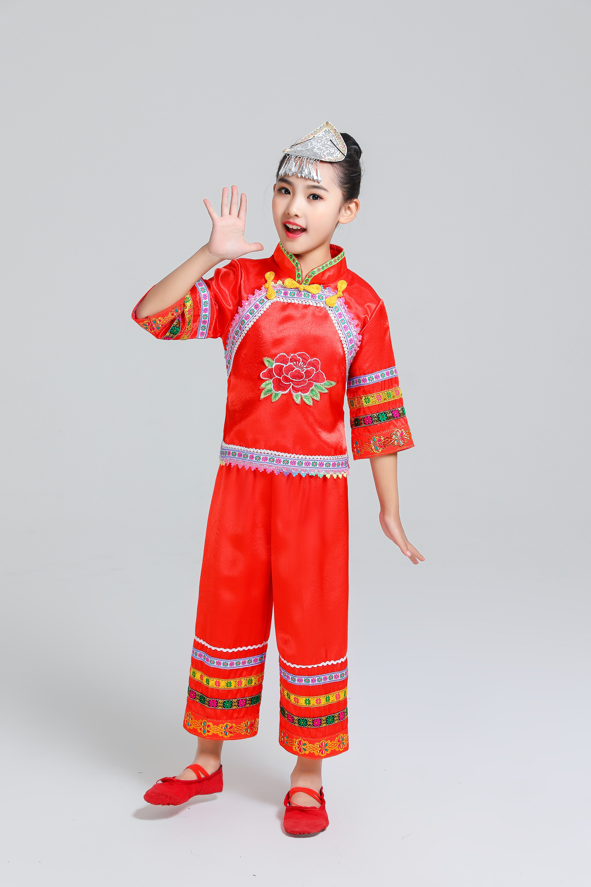 어린이 56 민족 의상 광시 소수 민족 댄스 의상 Pumi 남성과 여성 어린이 공연 의상 새로운스토어 가기