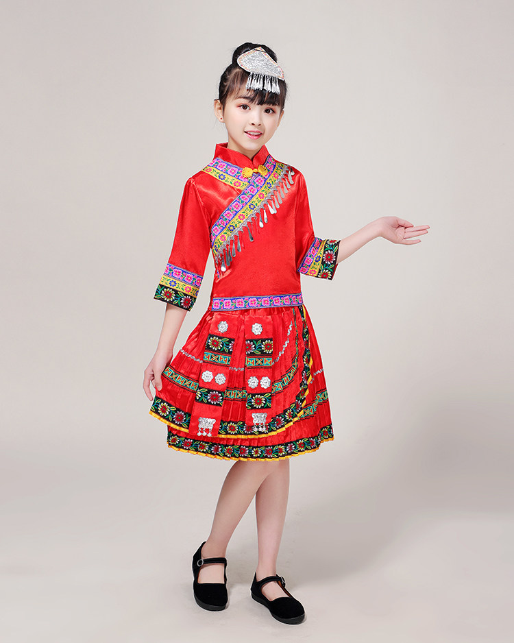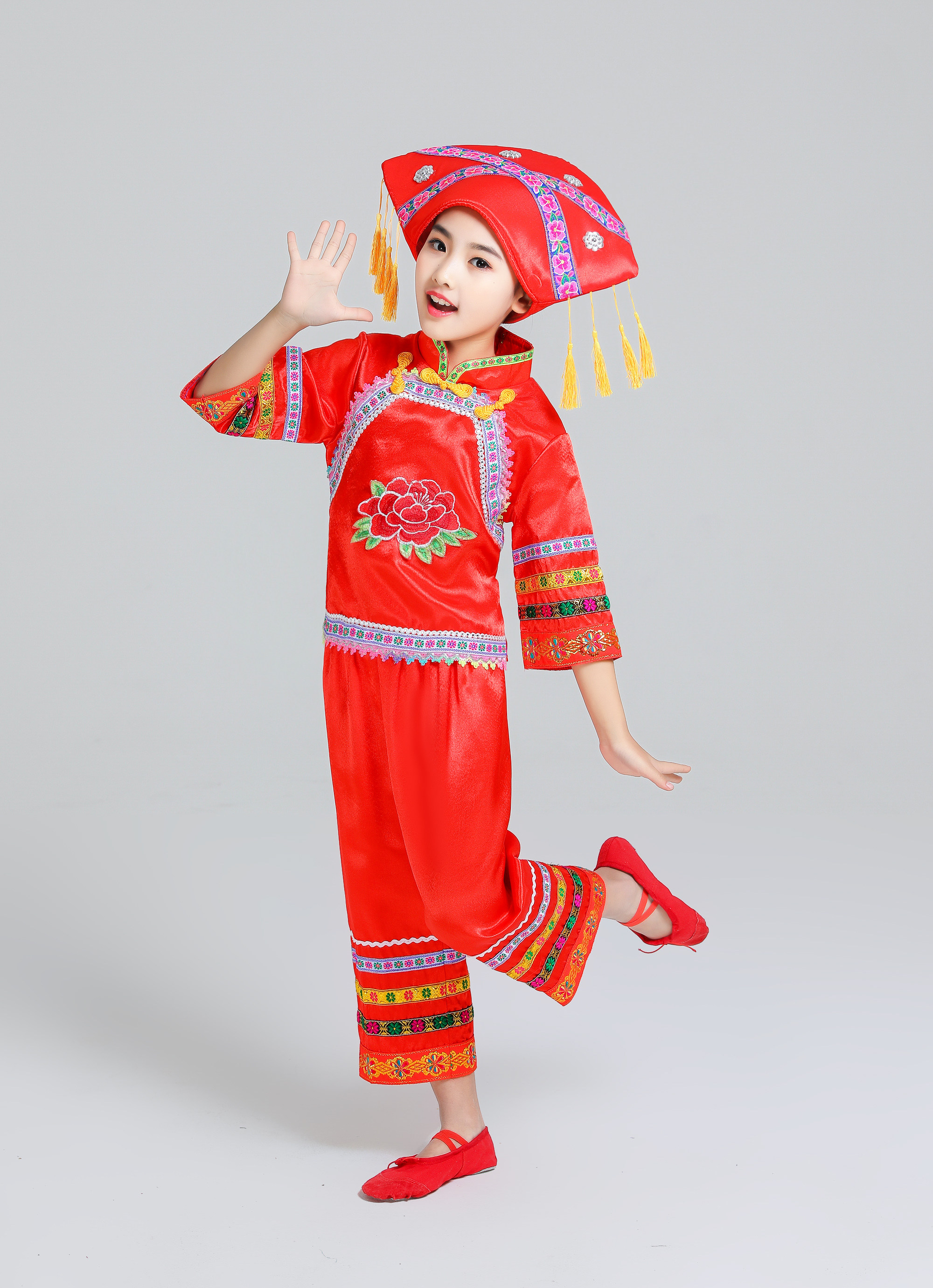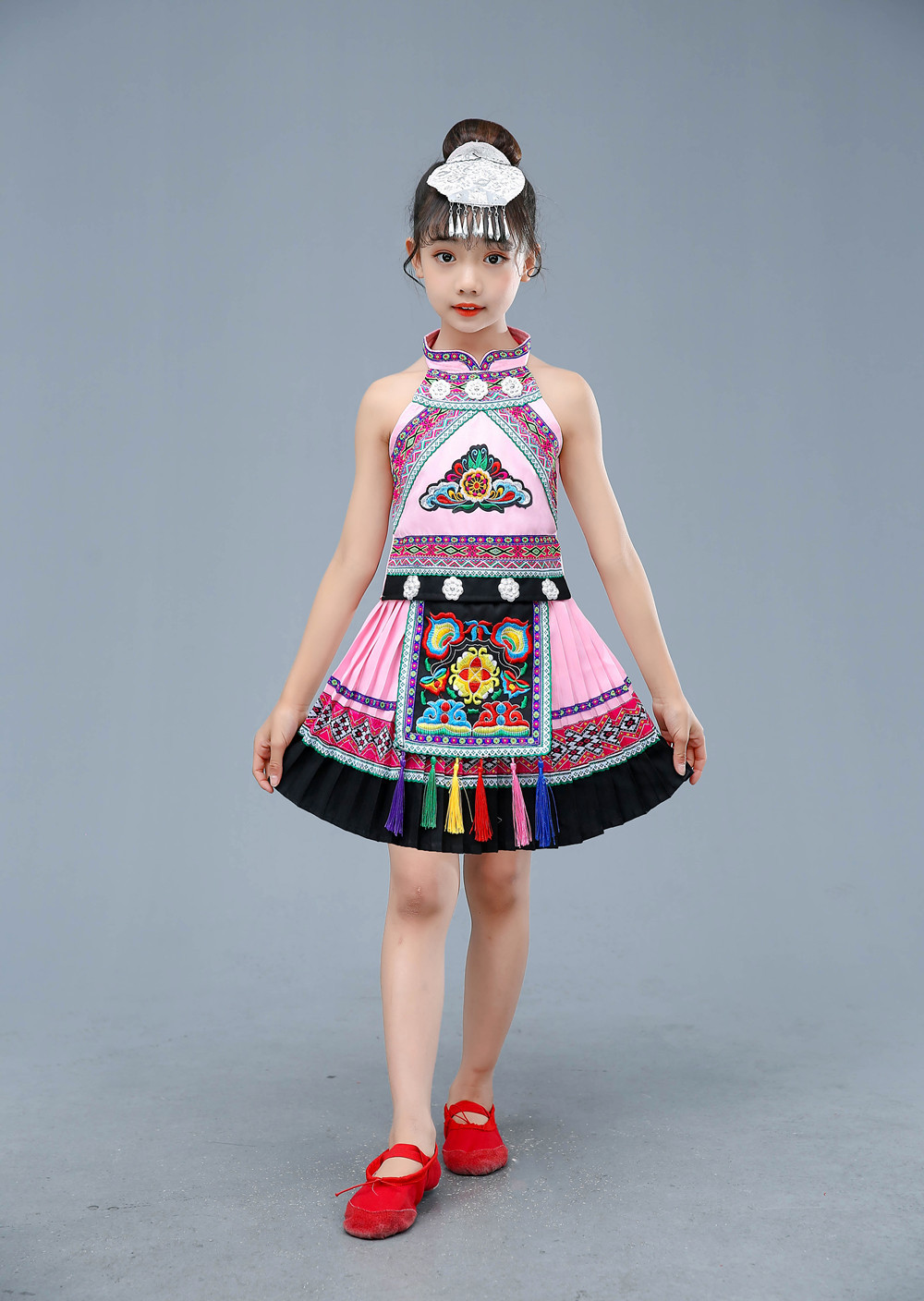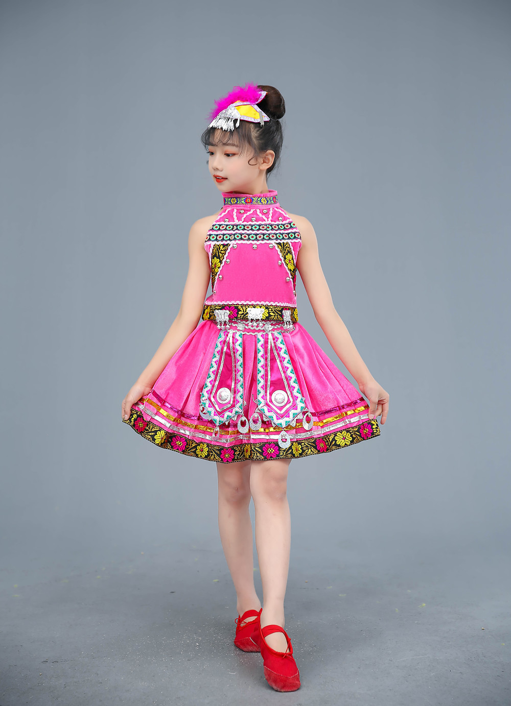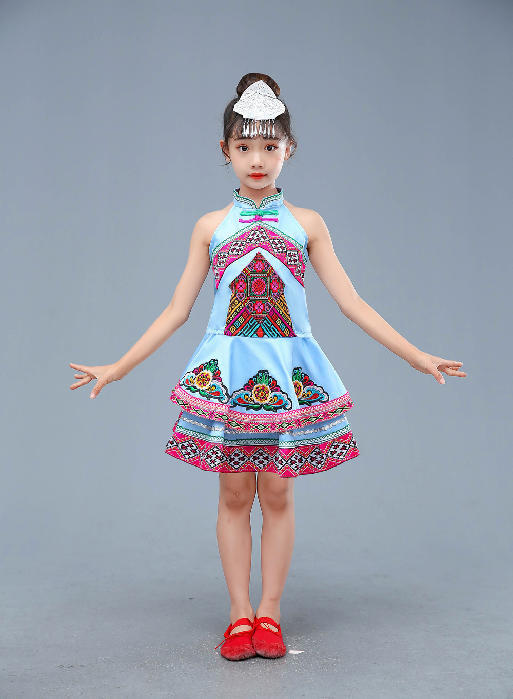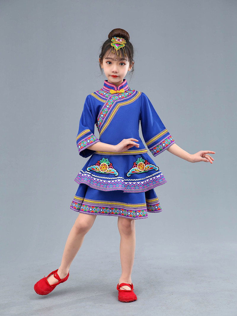 어린이 56 민족 의상 광시 소수 민족 댄스 의상 Pumi 남성과 여성 어린이 공연 의상 새로운스토어 가기