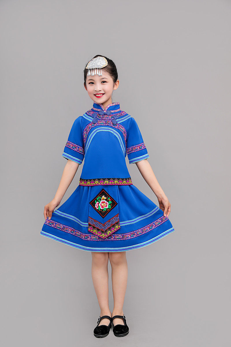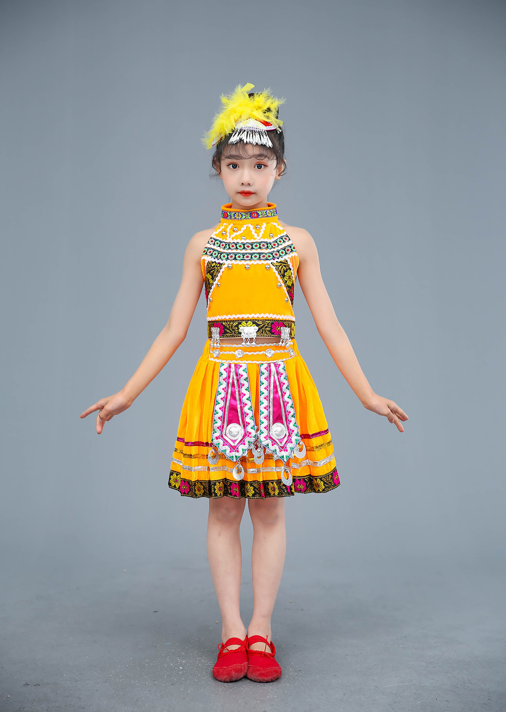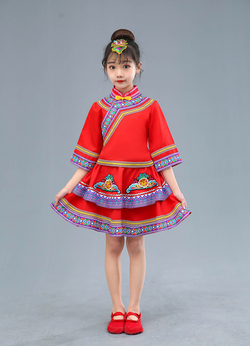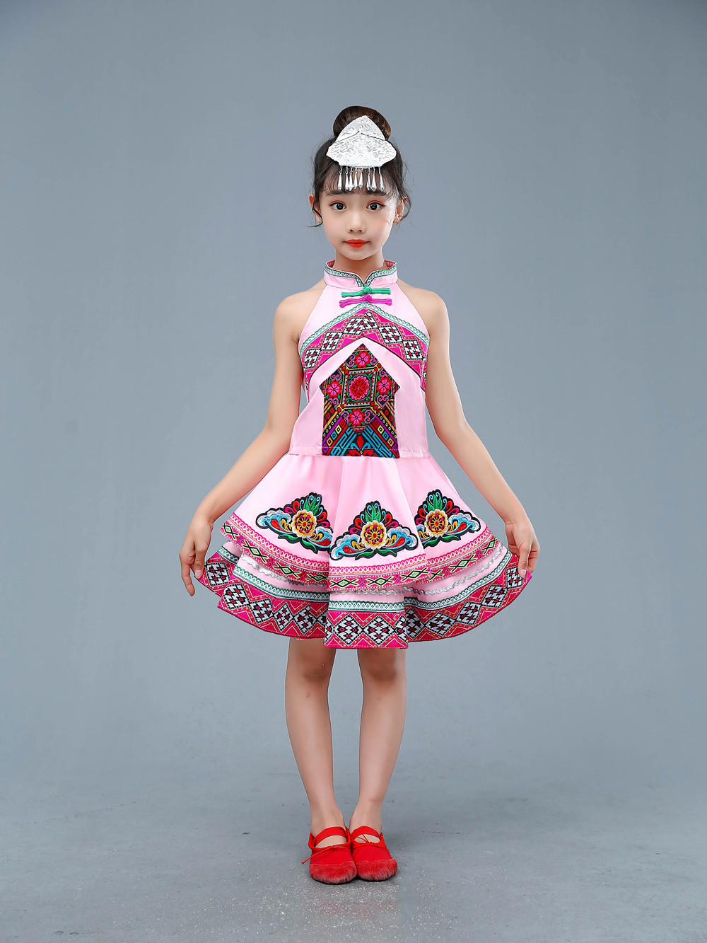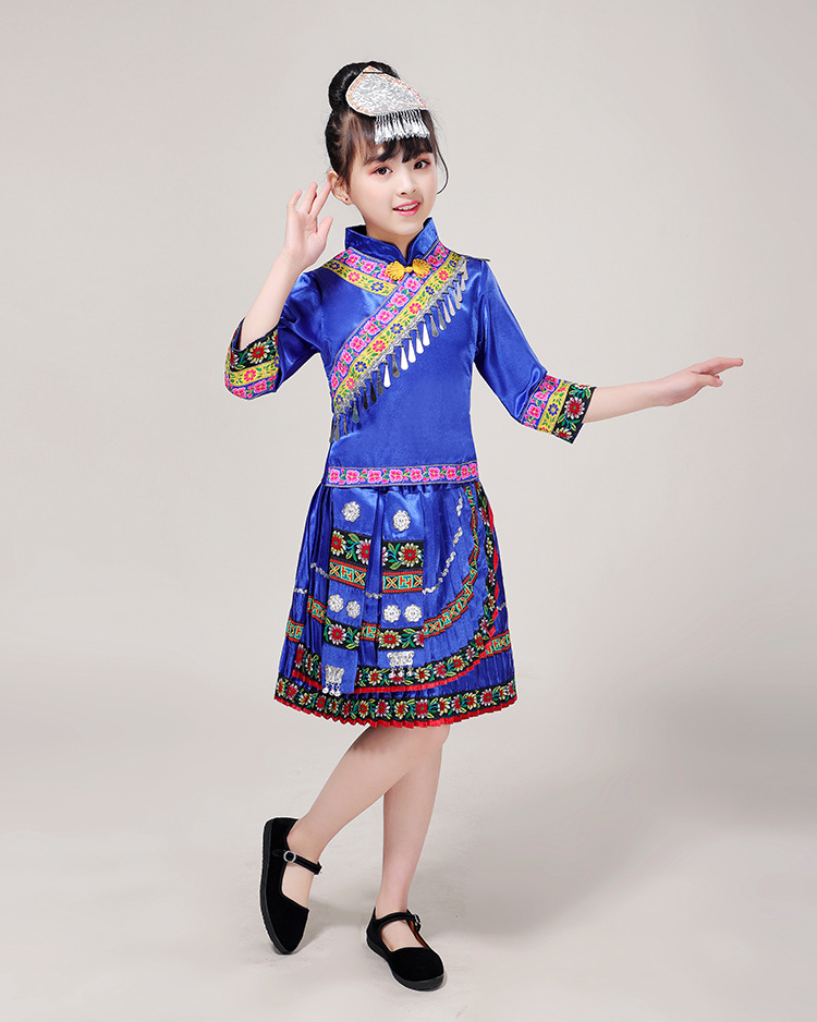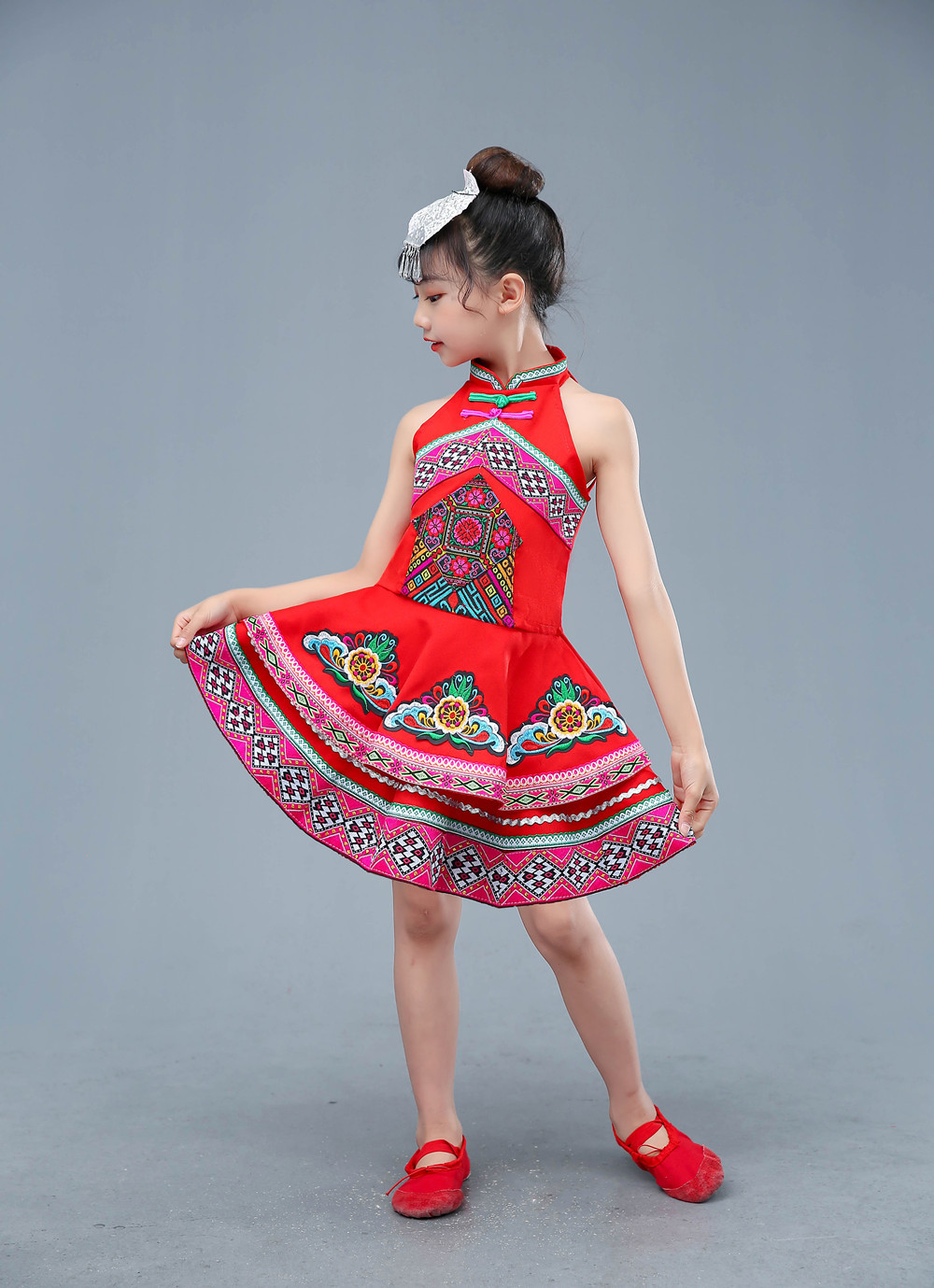 어린이 56 민족 의상 광시 소수 민족 댄스 의상 Pumi 남성과 여성 어린이 공연 의상 새로운스토어 가기