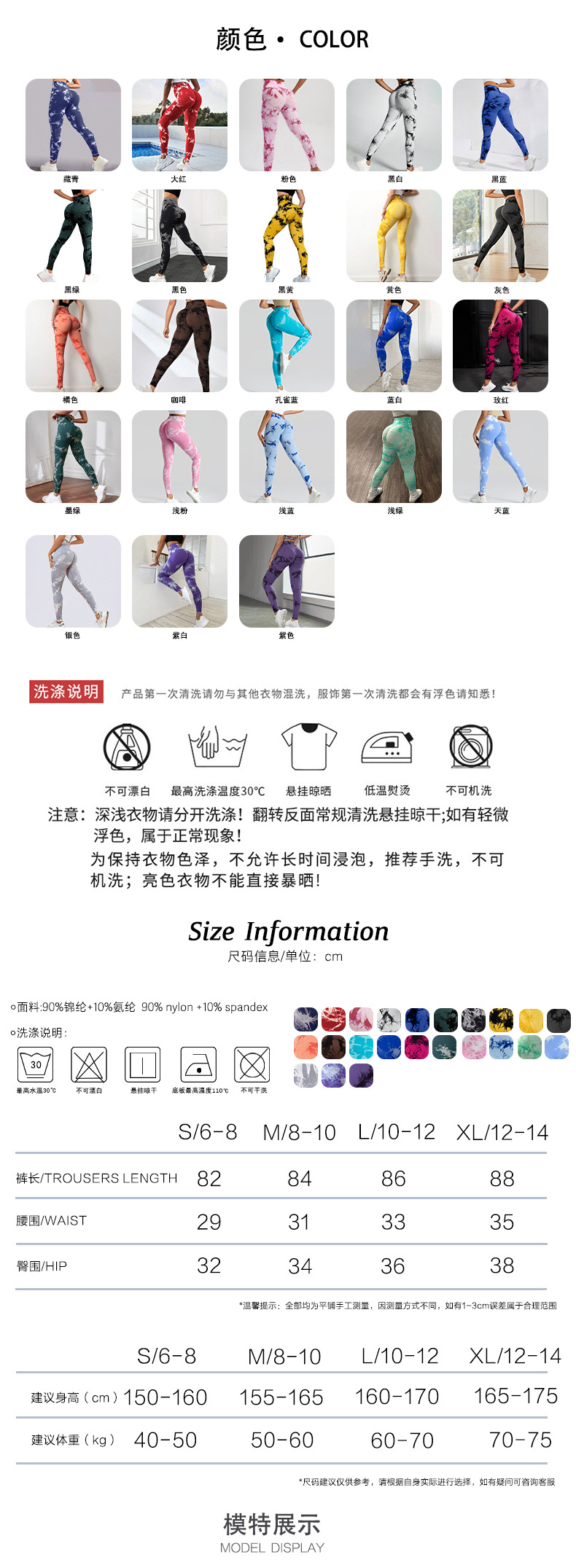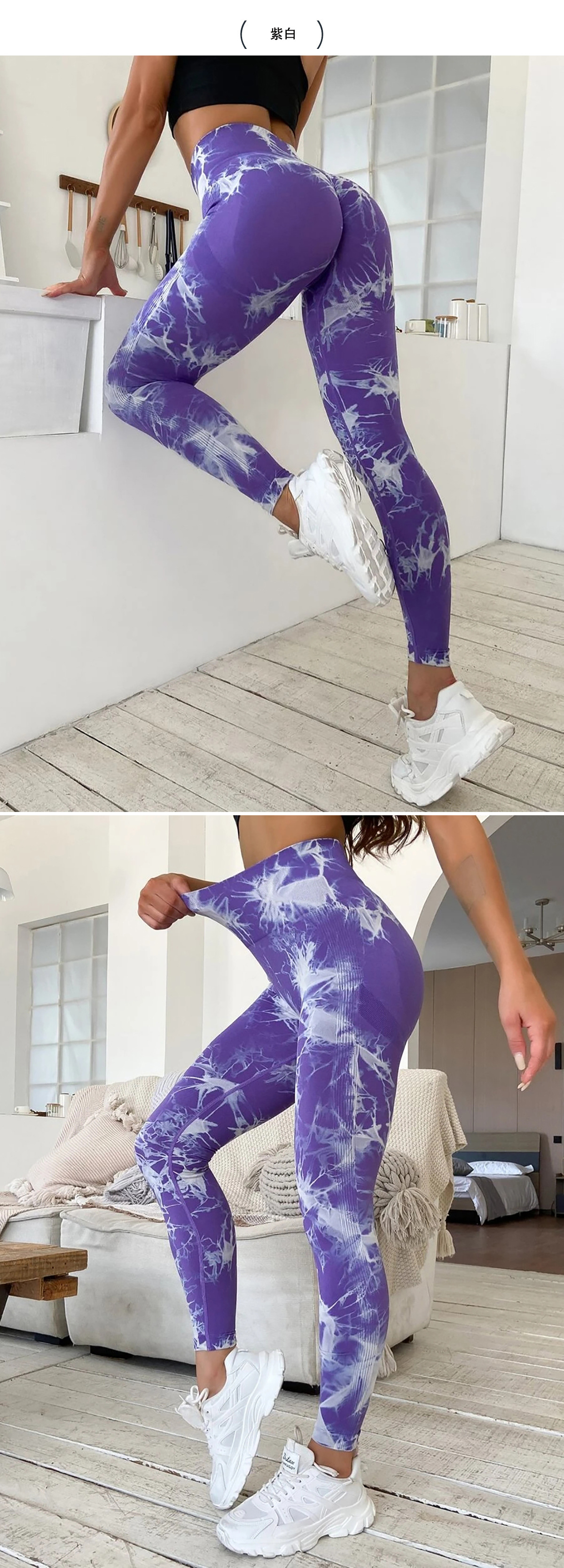 새로운 원활한 유럽과 미국 하이 웨이스트 꽉 복숭아 엉덩이 넥타이 염색 요가 바지 여성 섹시한 복숭아 스포츠 피트니스 레깅스