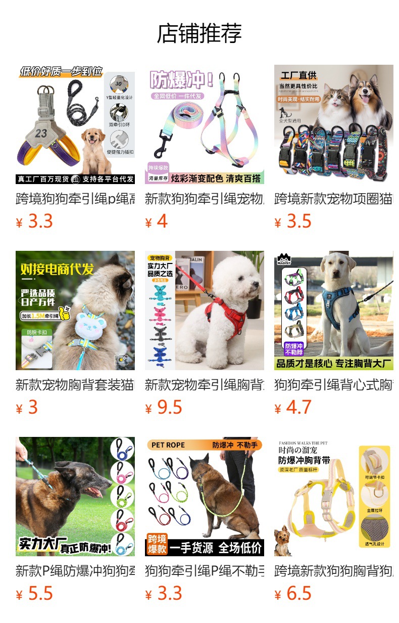 새로운 개 가죽끈, 중형견 가슴끈, 애완동물용품 가슴끈, 애완동물 산책용 가죽끈 도매스토어 가기
