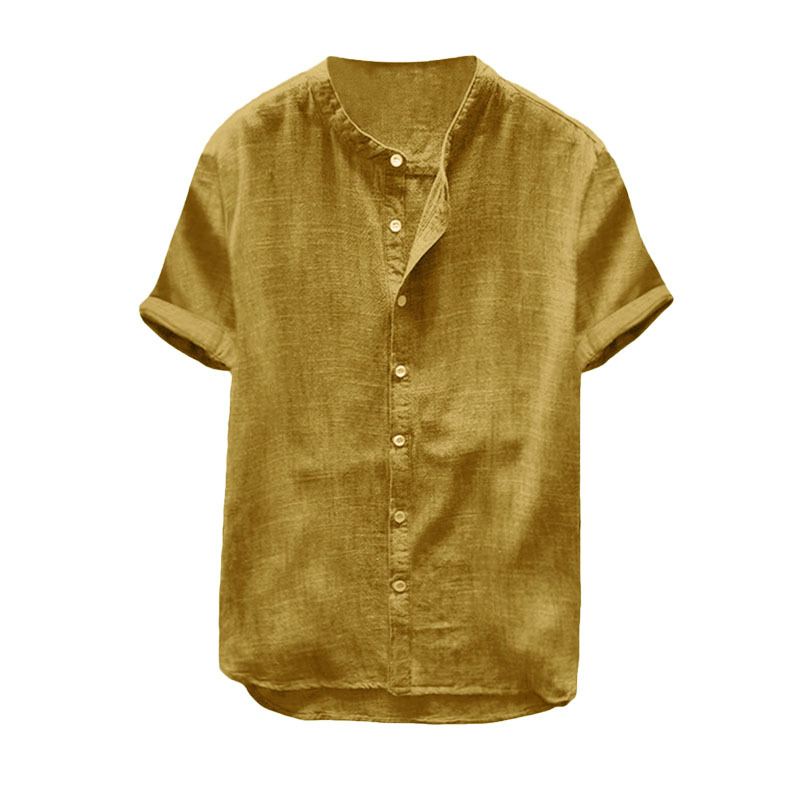 재고 2023 새로운 남성 캐주얼 스탠드 칼라 반팔 면 셔츠 유럽과 미국 판매 폭발 최고 C195스토어 가기