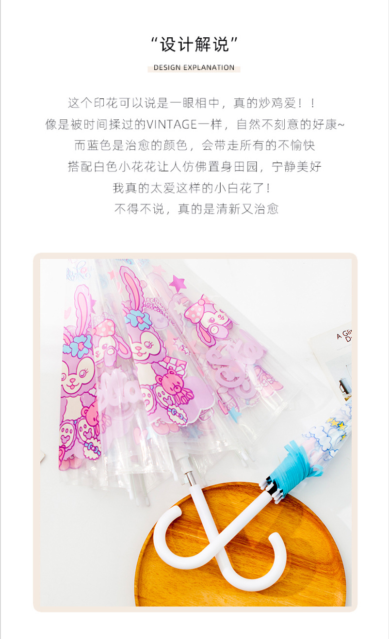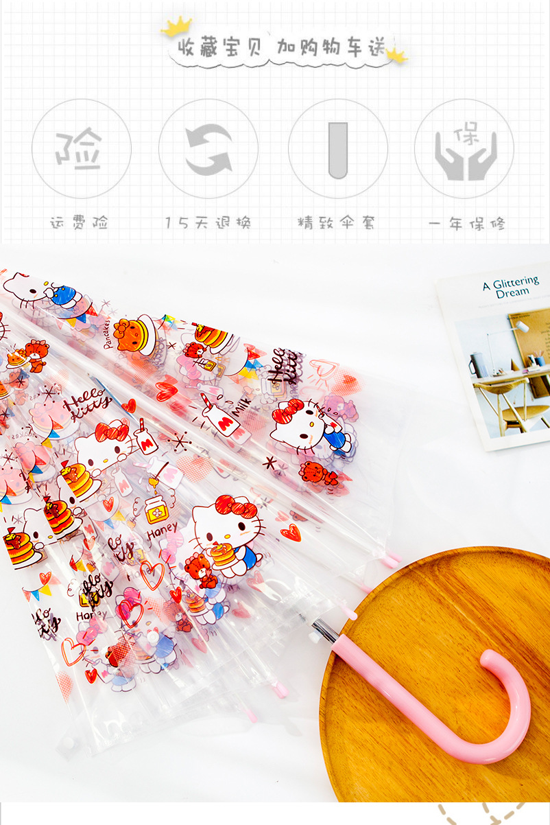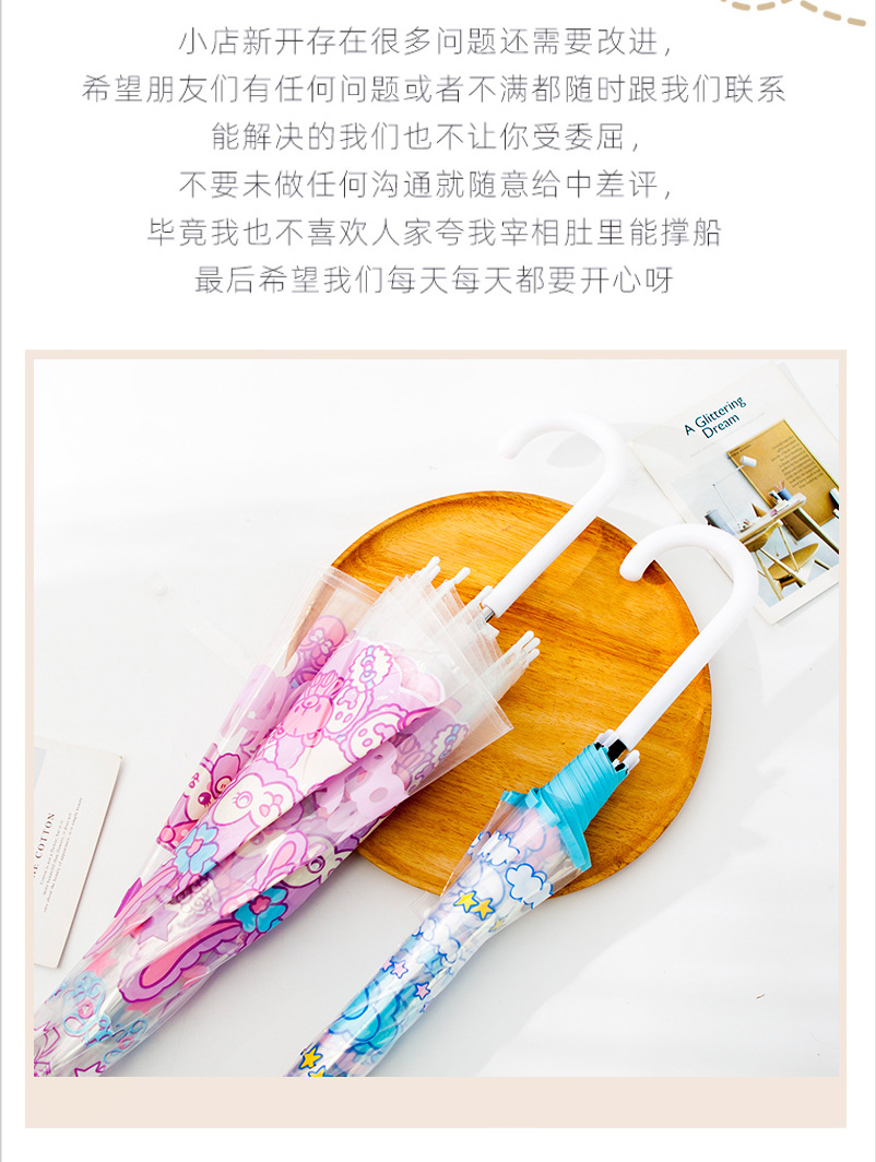 산리오 딸기 곰 Parchia 개 투명 우산 직선 손잡이 우산 스트레이트 바 우산 긴 손잡이 우산 사진 8 뼈 인터넷 빨간 아이들스토어 가기