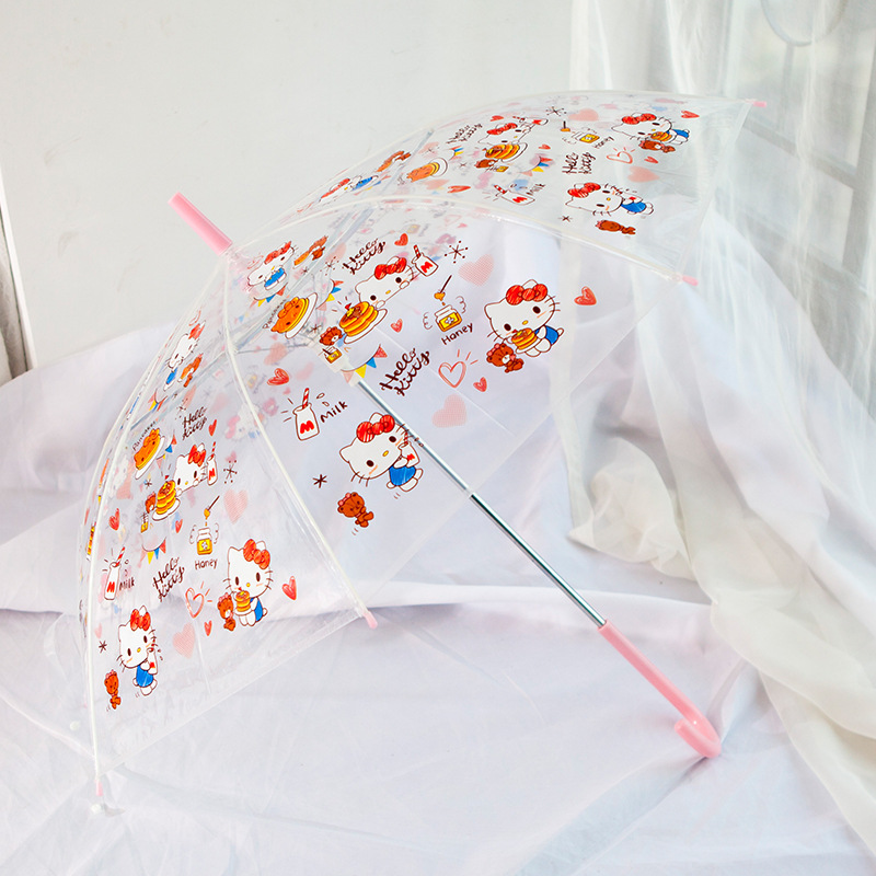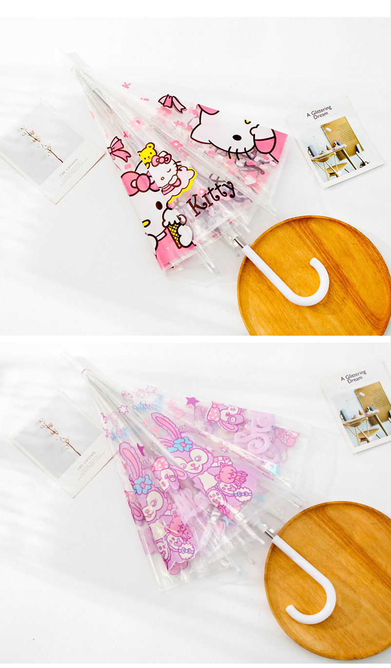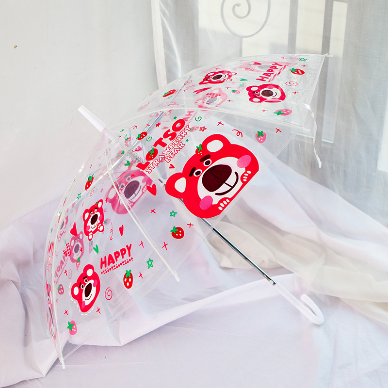 산리오 딸기 곰 Parchia 개 투명 우산 직선 손잡이 우산 스트레이트 바 우산 긴 손잡이 우산 사진 8 뼈 인터넷 빨간 아이들