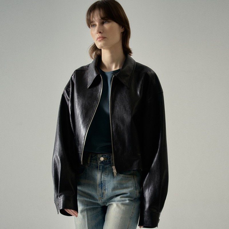 FACA*E PATTE*N 여성용 짧은 가죽 재킷 2025 봄 가을 디자인 감각 있는 틈새 시장 블랙 루즈핏 재킷 상의스토어 가기