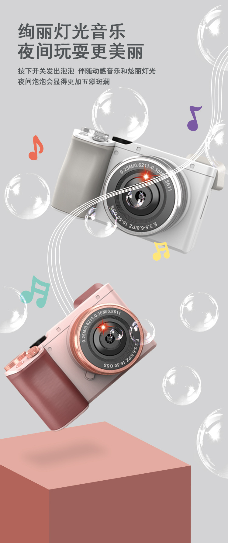 카메라 버블 머신 선물 상자 자동 전기 버블 건 버블 스틱 빛나는 야시장 마구간 어린이 장난감